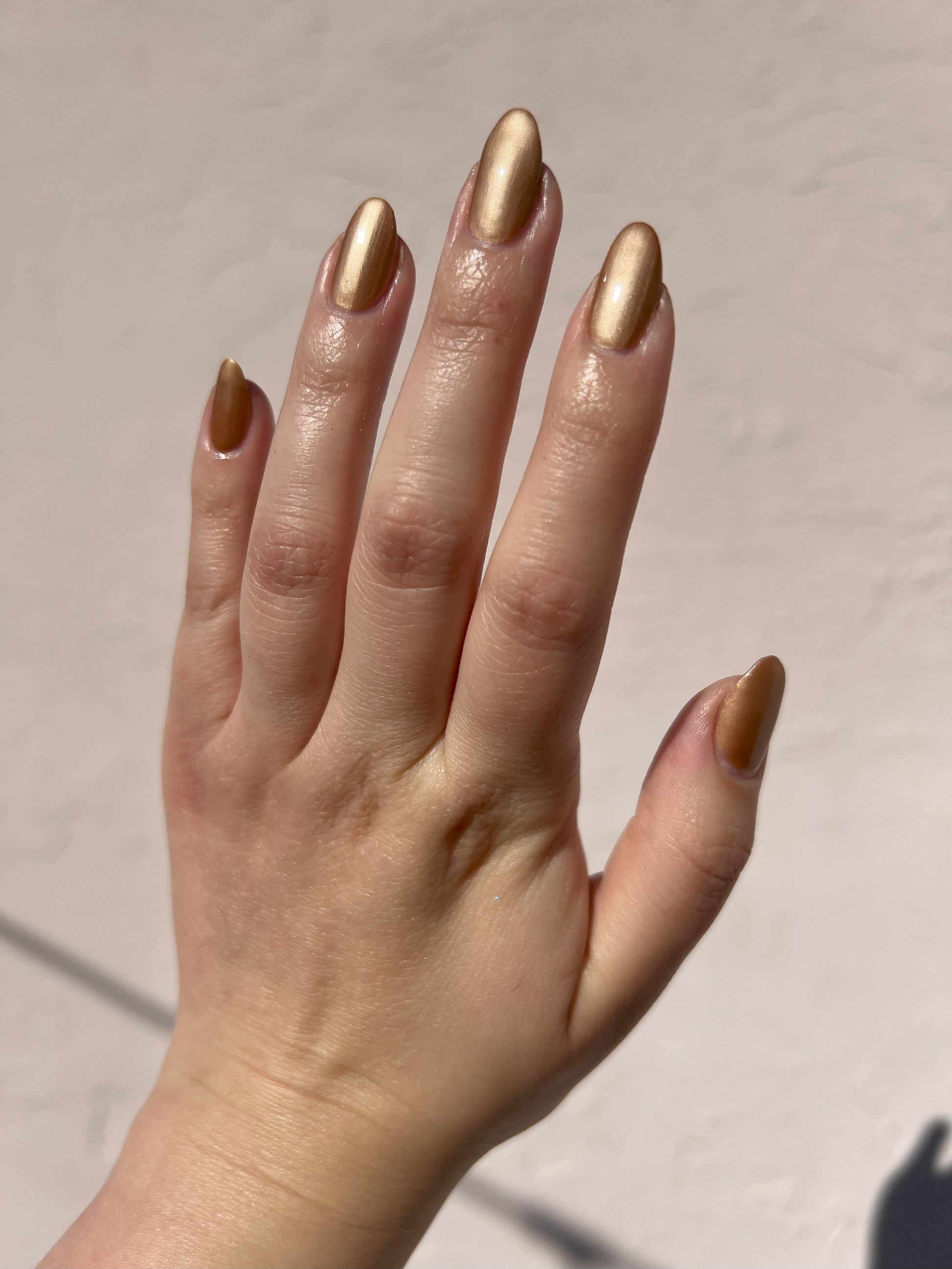 Turn your nails into a chart topping sensation with Beautifully Bold, Gold! This striking burnt gold metallic is a sight to behold, turning heads with nails made of gold.