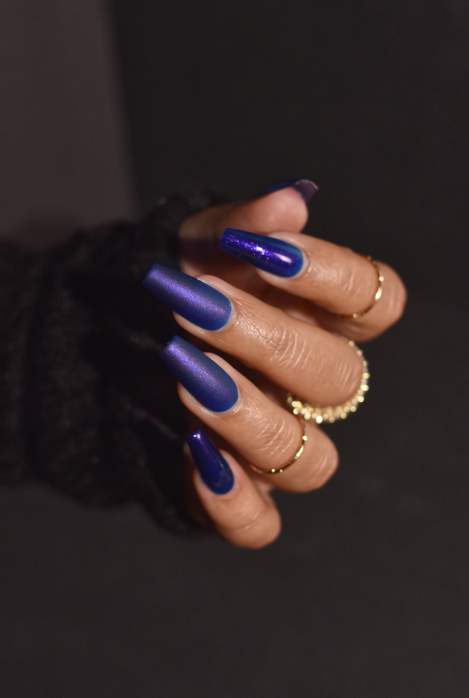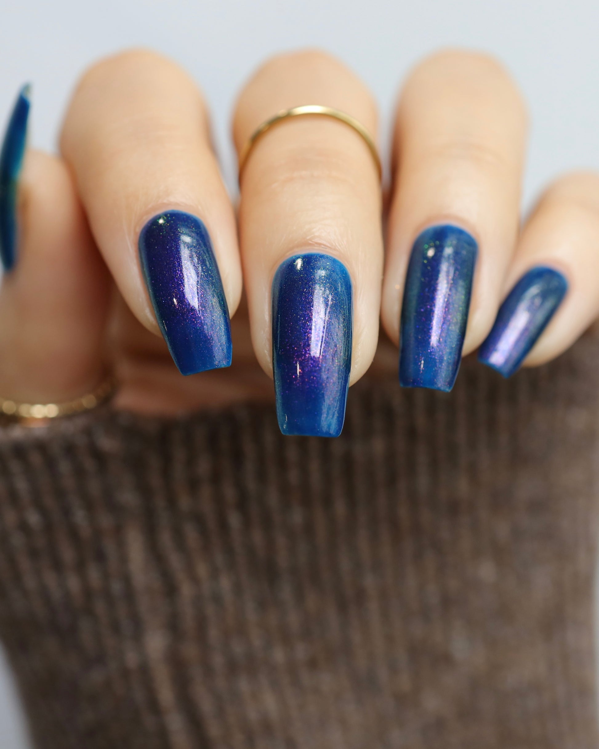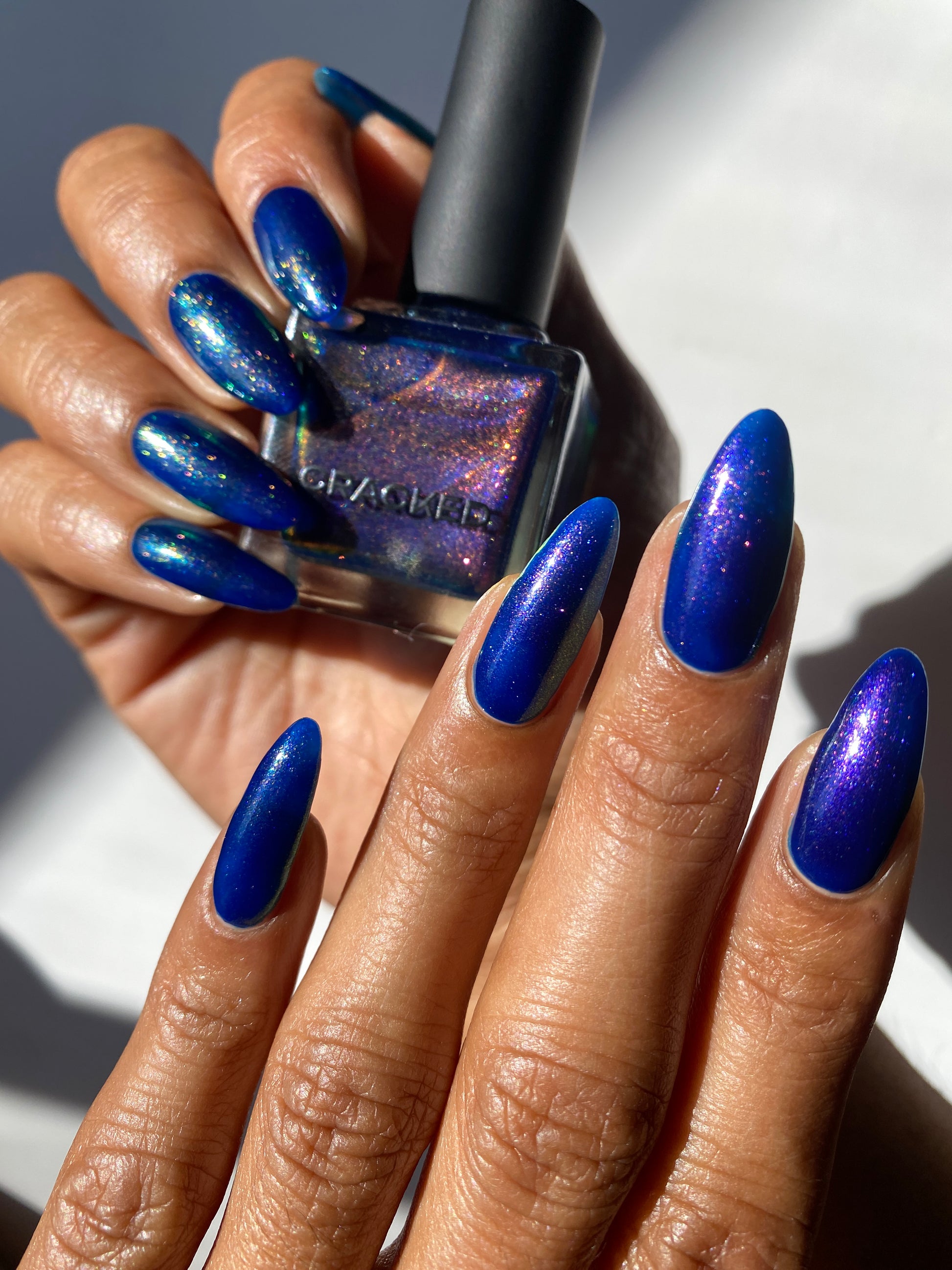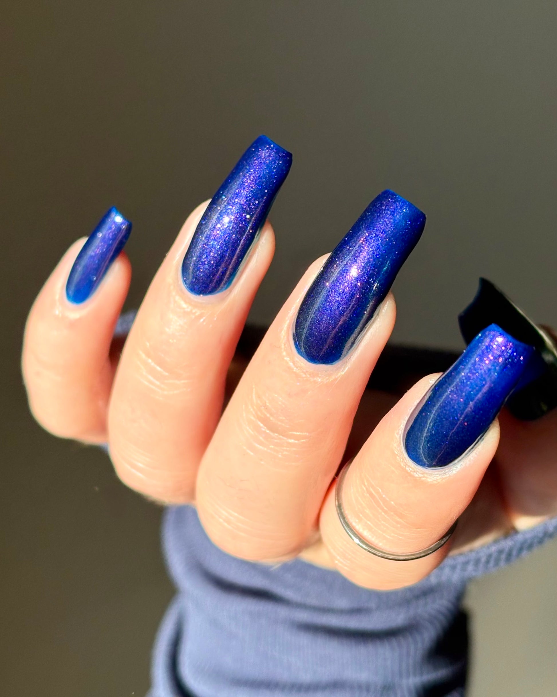Dive into the magic of late fall with this deep blue crelly with purple and orange shimmers. Berry Basket is a moody, mesmerizing polish that feels like it encapsulates the magic of this season. It's the perfect companion for crisp nights and festive days.