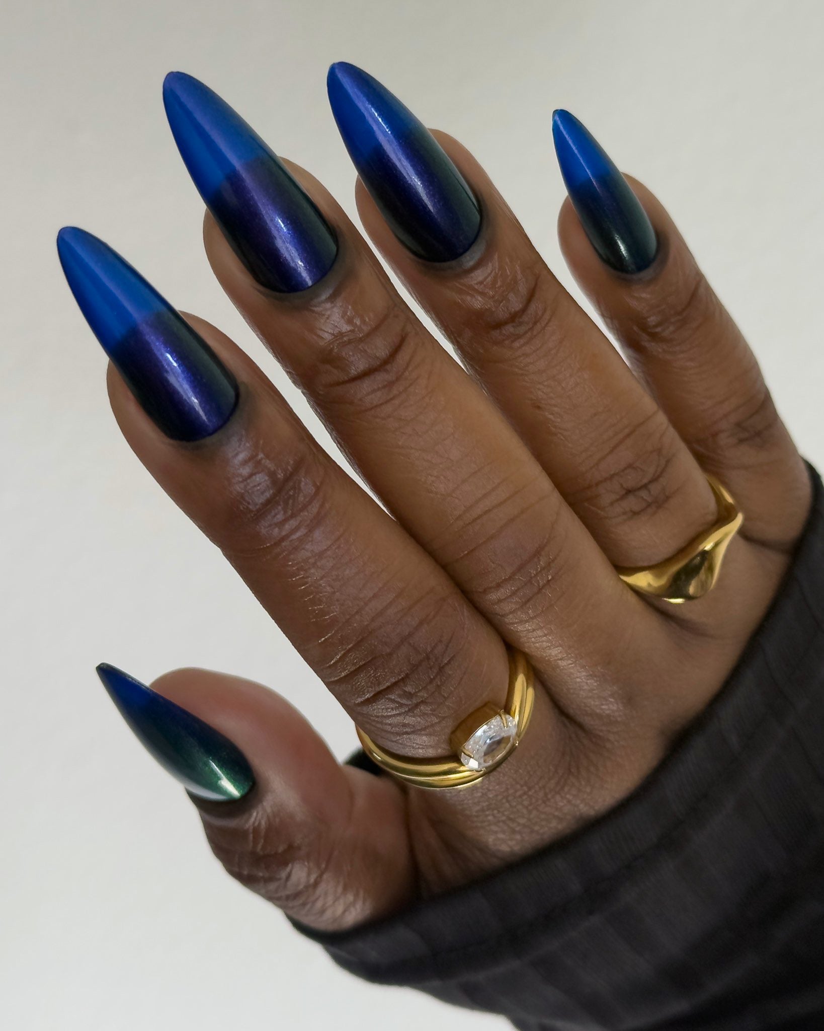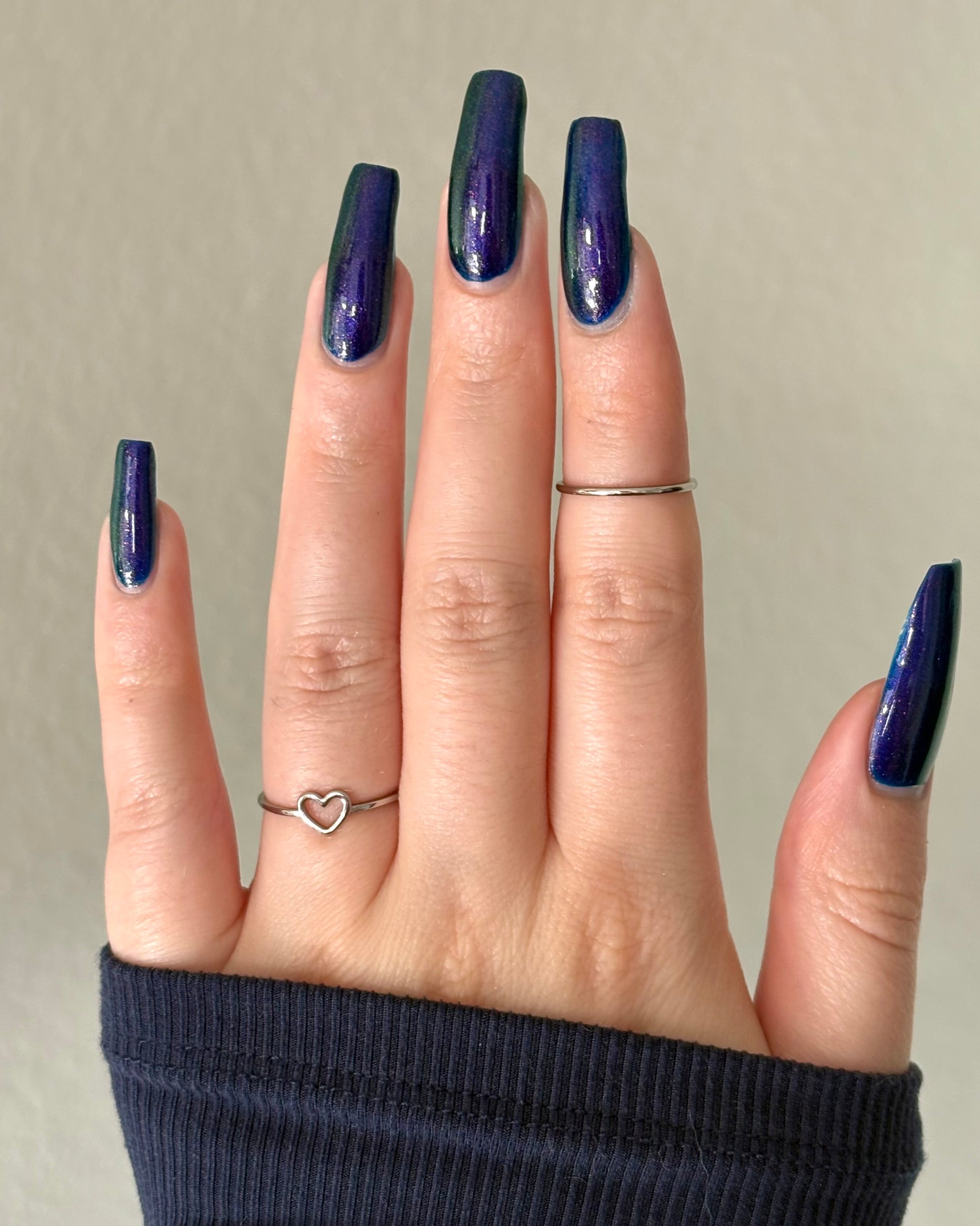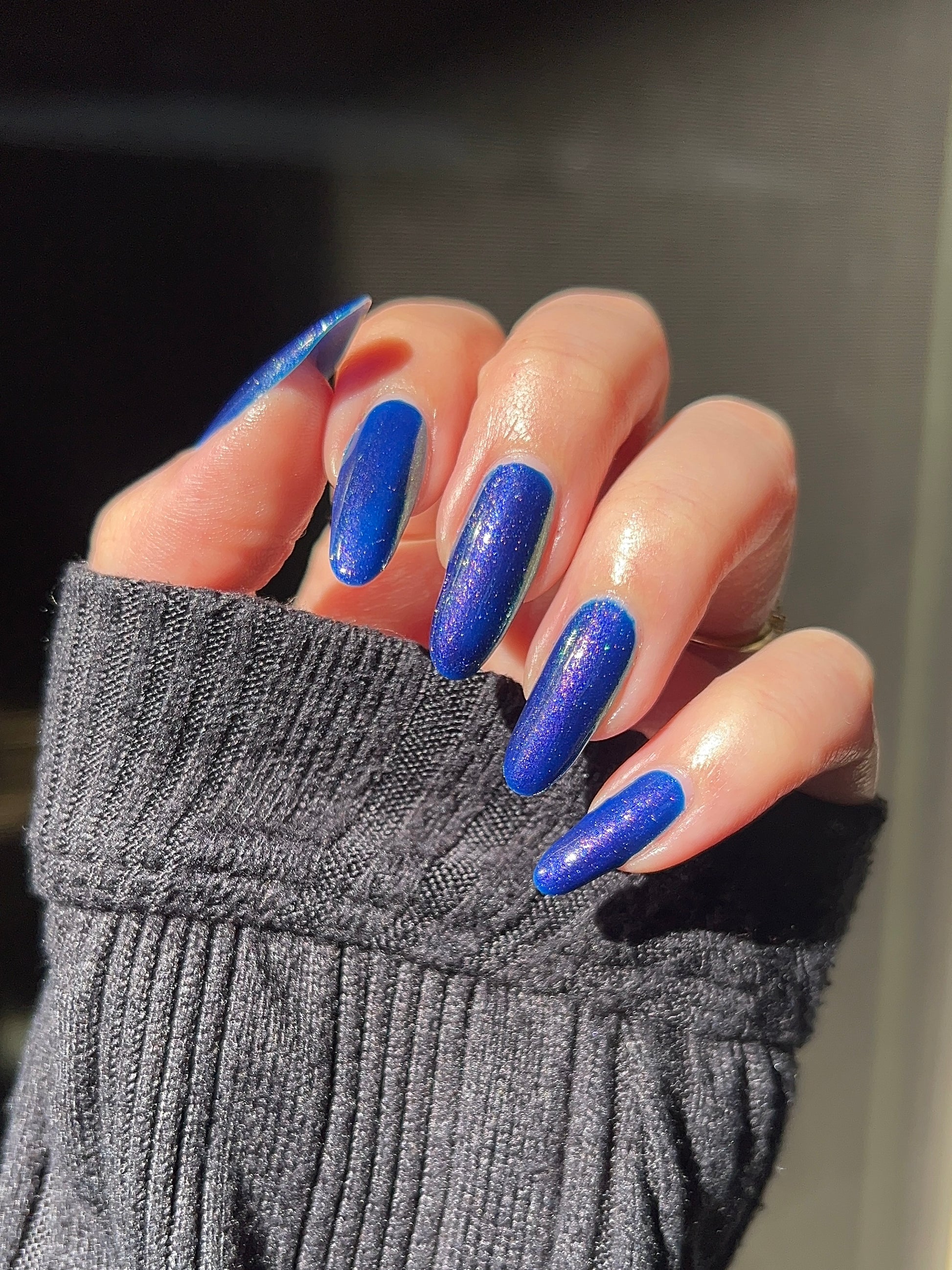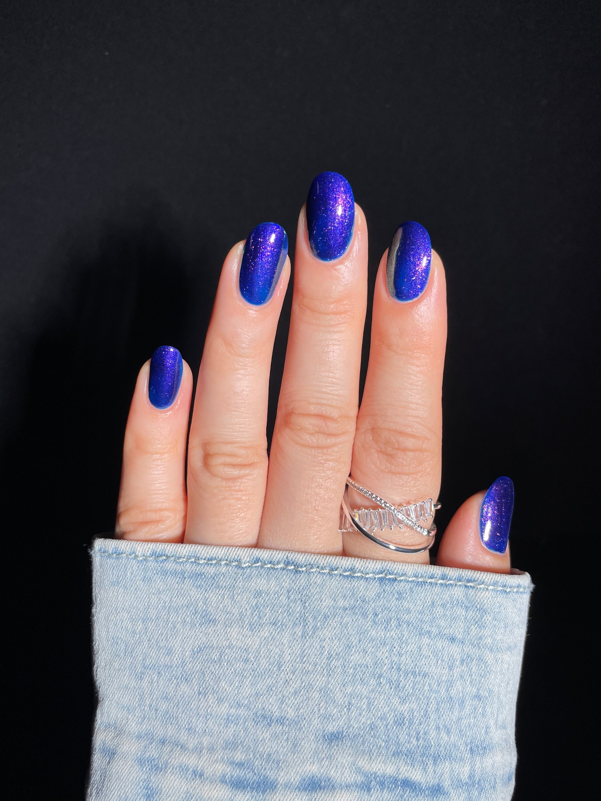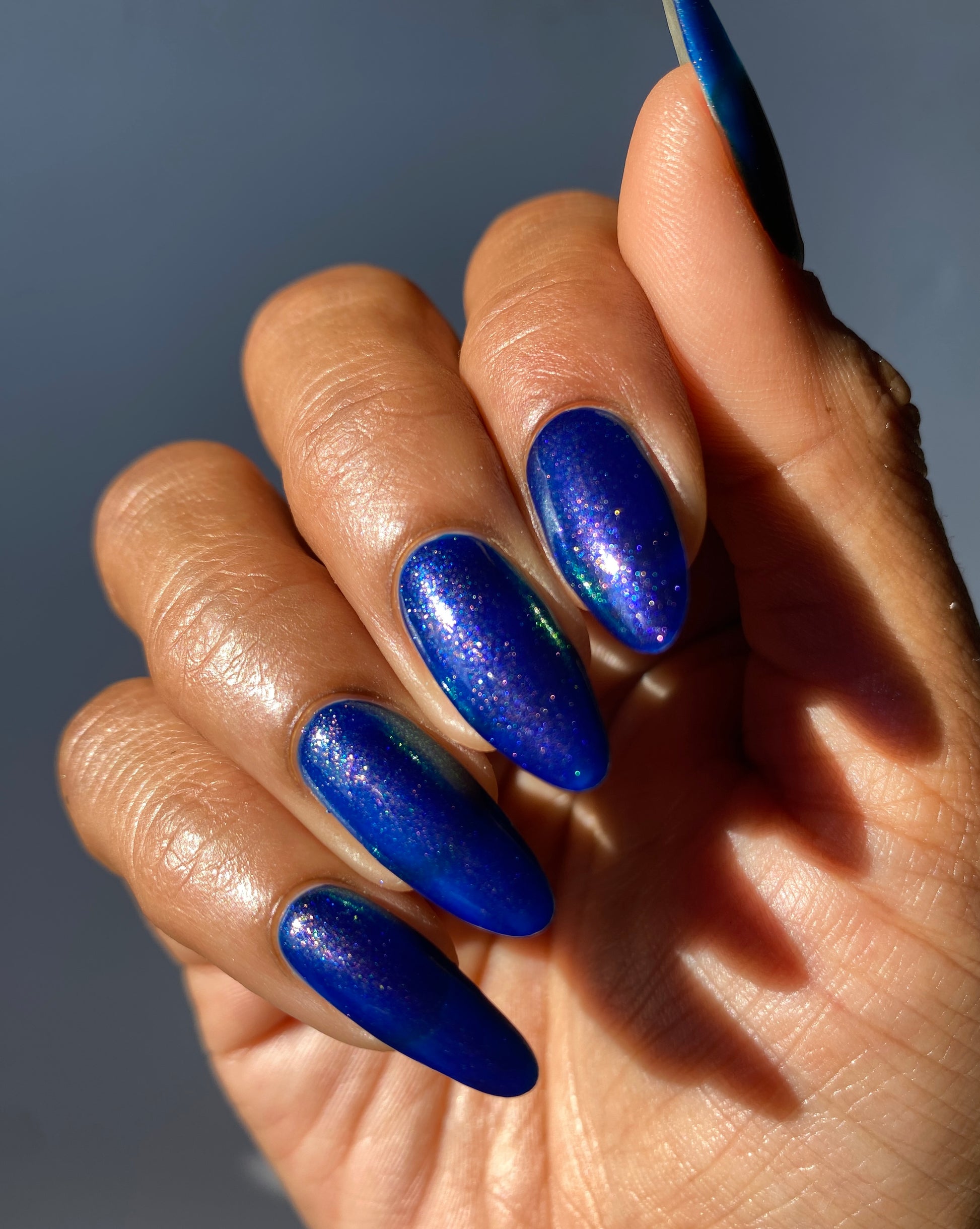 Dive into the magic of late fall with this deep blue crelly with purple and orange shimmers. Berry Basket is a moody, mesmerizing polish that feels like it encapsulates the magic of this season. It's the perfect companion for crisp nights and festive days.
