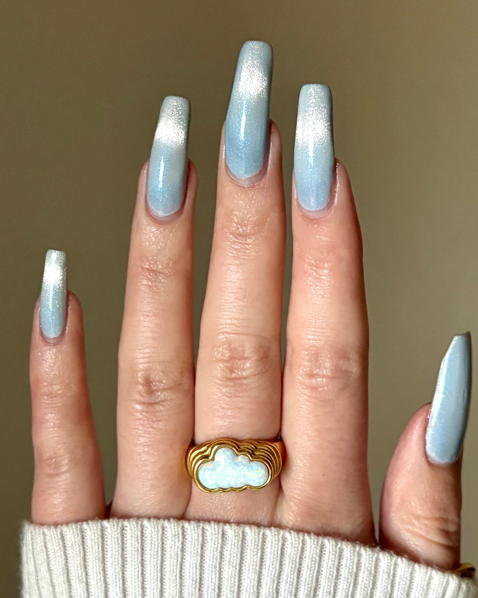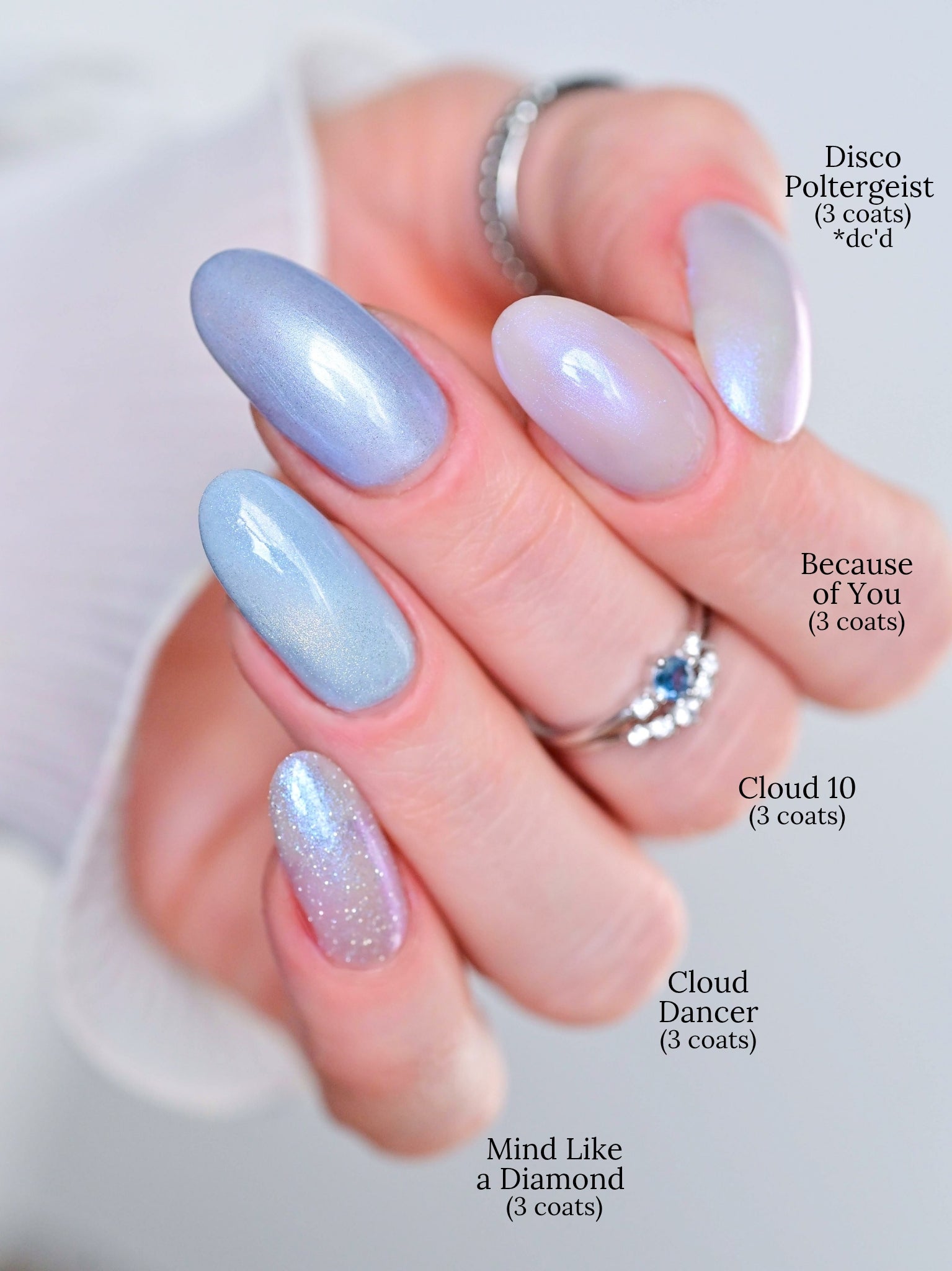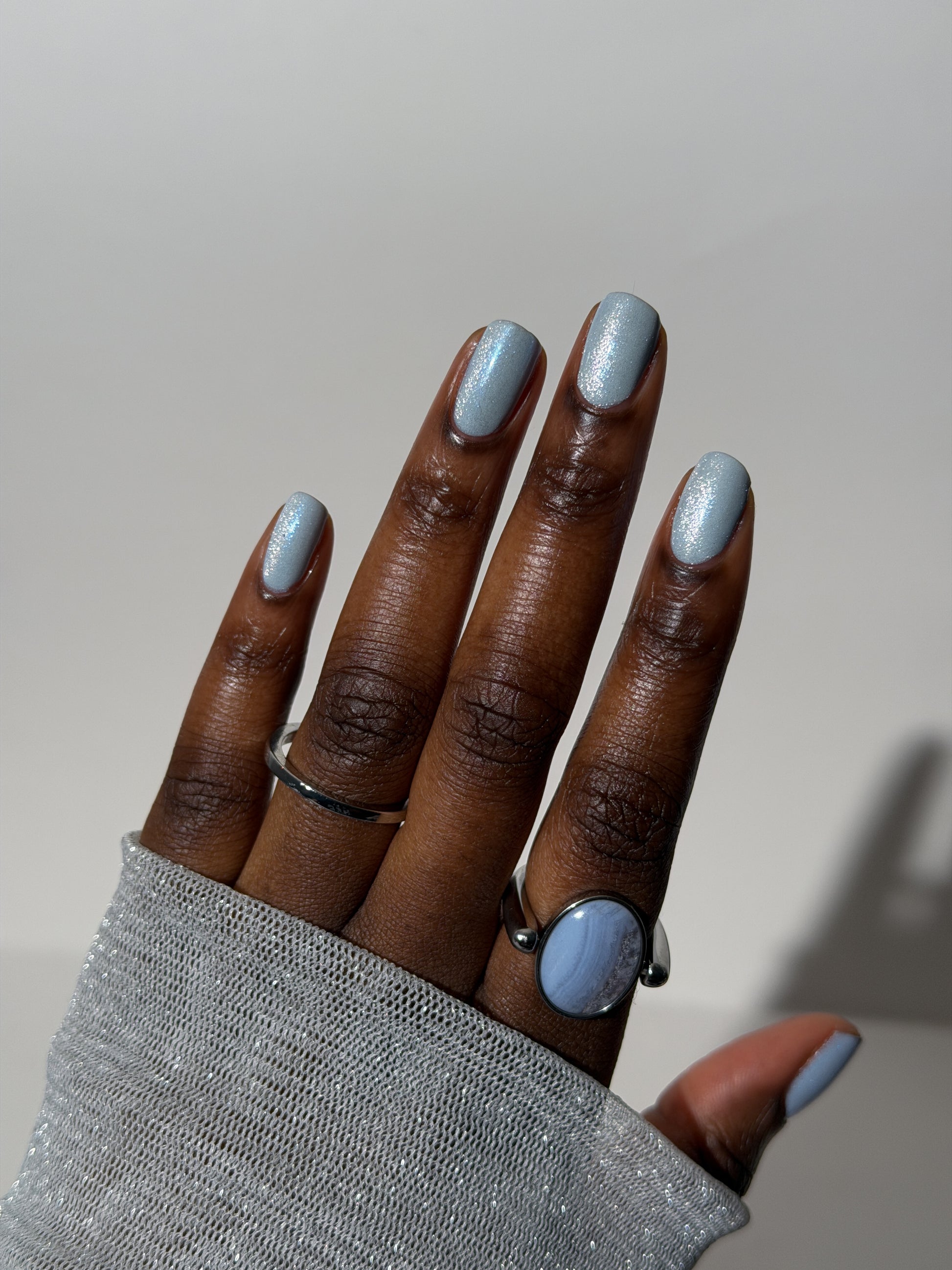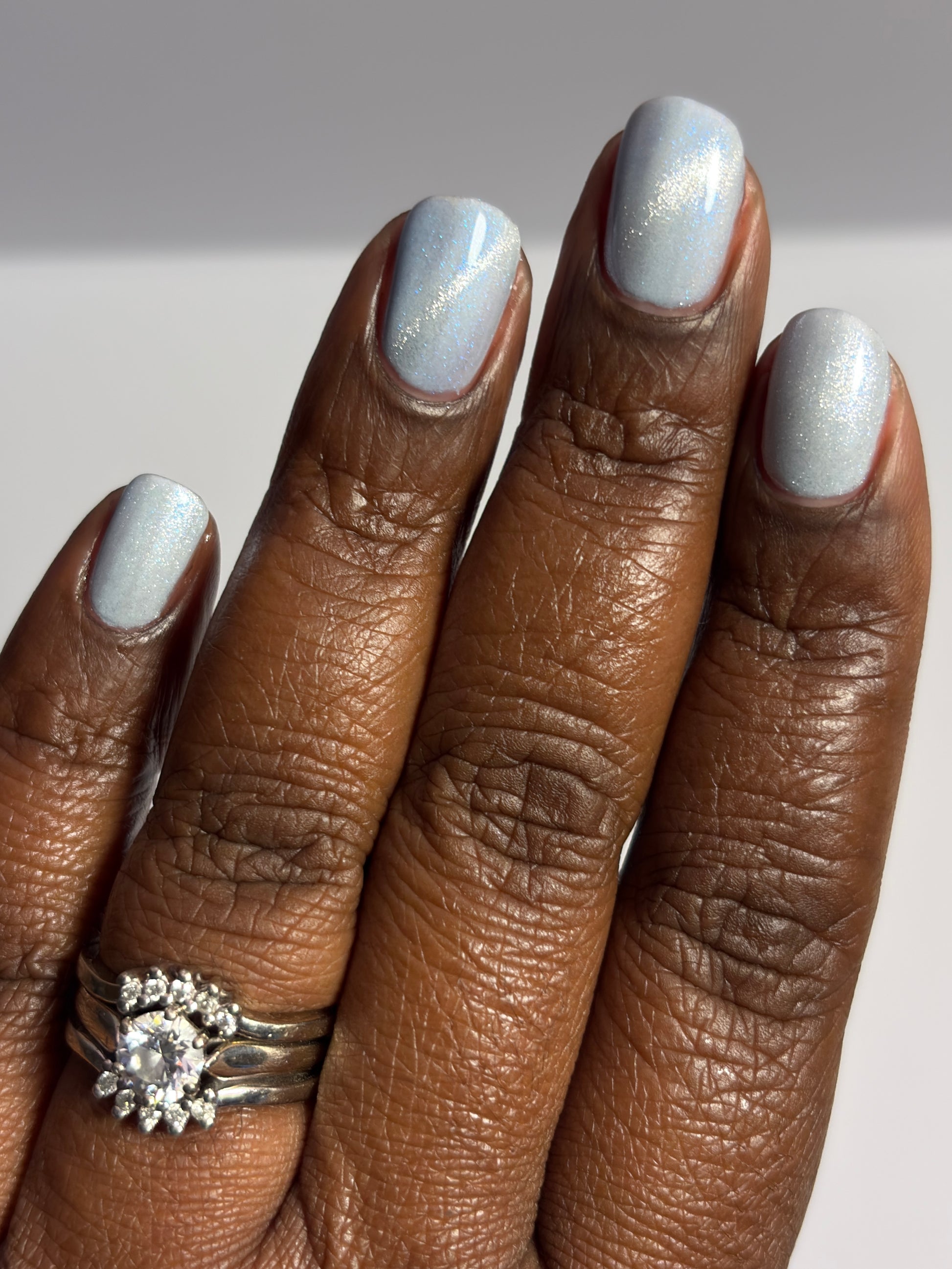 Cloud Dancer is the perfect icy gray white with silver magnetic pigments and a little hint of blue shimmers. As soon as the Pantone 2026 color of the year was announced I thought "how do I make this not BORING" lol. I was inspired to create a icy shade people will wear all year round. We have some gorgeous off white tones in our lineup but I wanted to make this one special. Something that I would imagine a cloud dancer wearing.