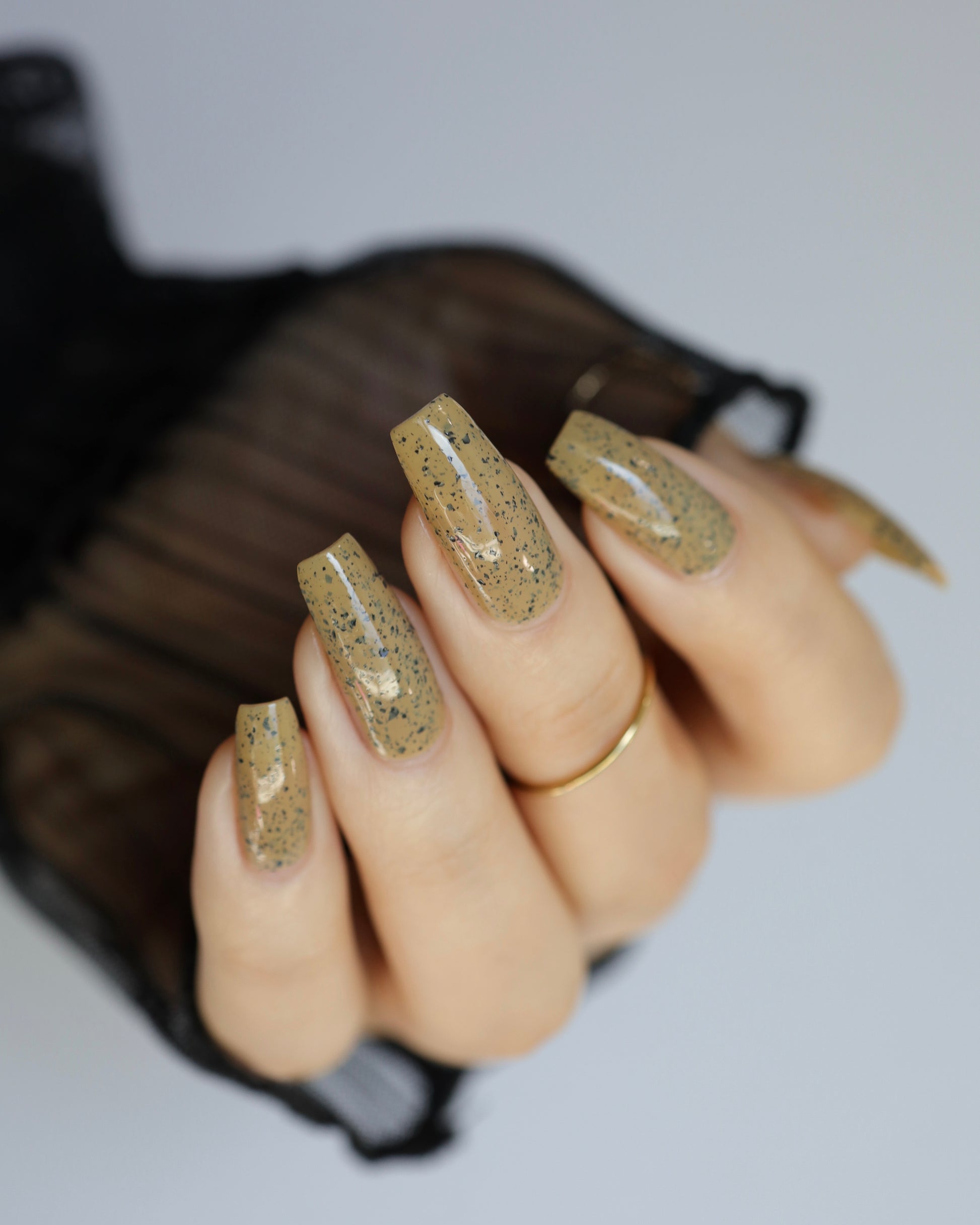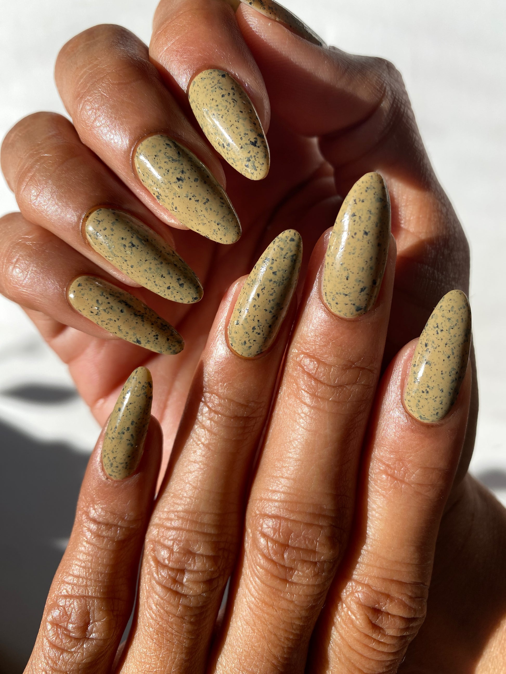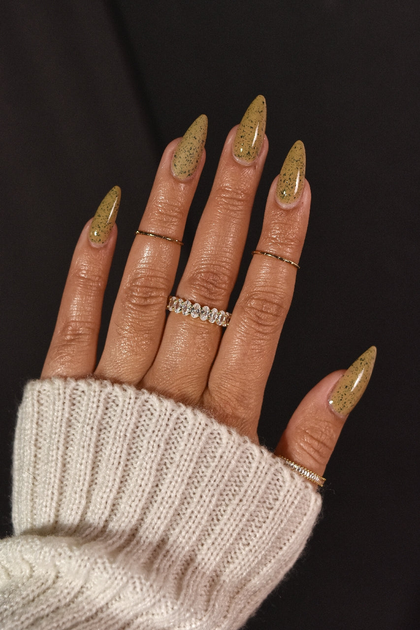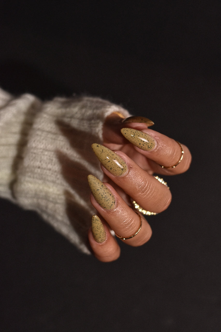One of our founders favs from the collection! Cream Of Mushroom is a dark tan with black flakes. Best if poured on the nails versus a bowl. Daring for something different? Pick up our Matte Top Coat for a cool speckled egg look.