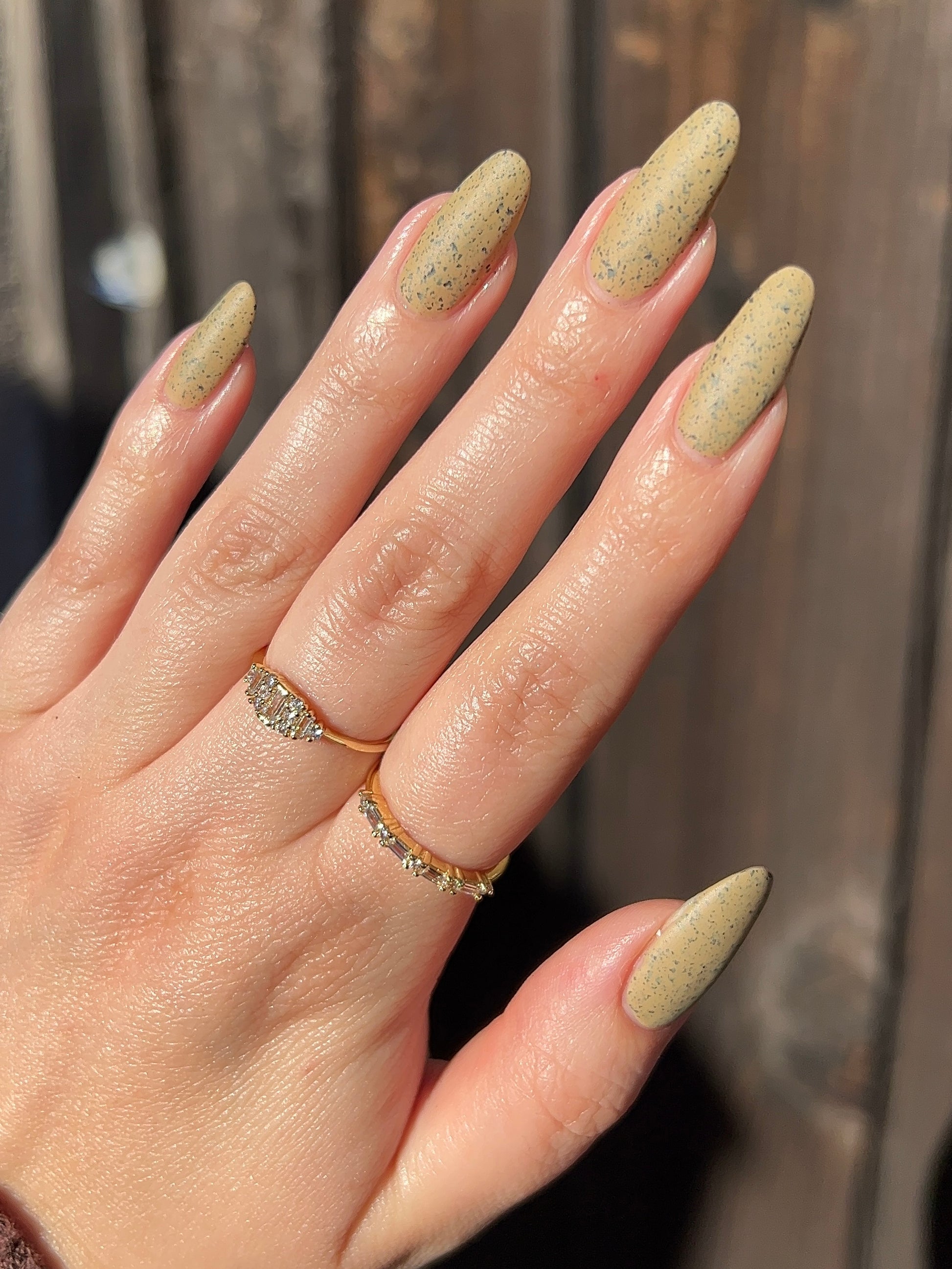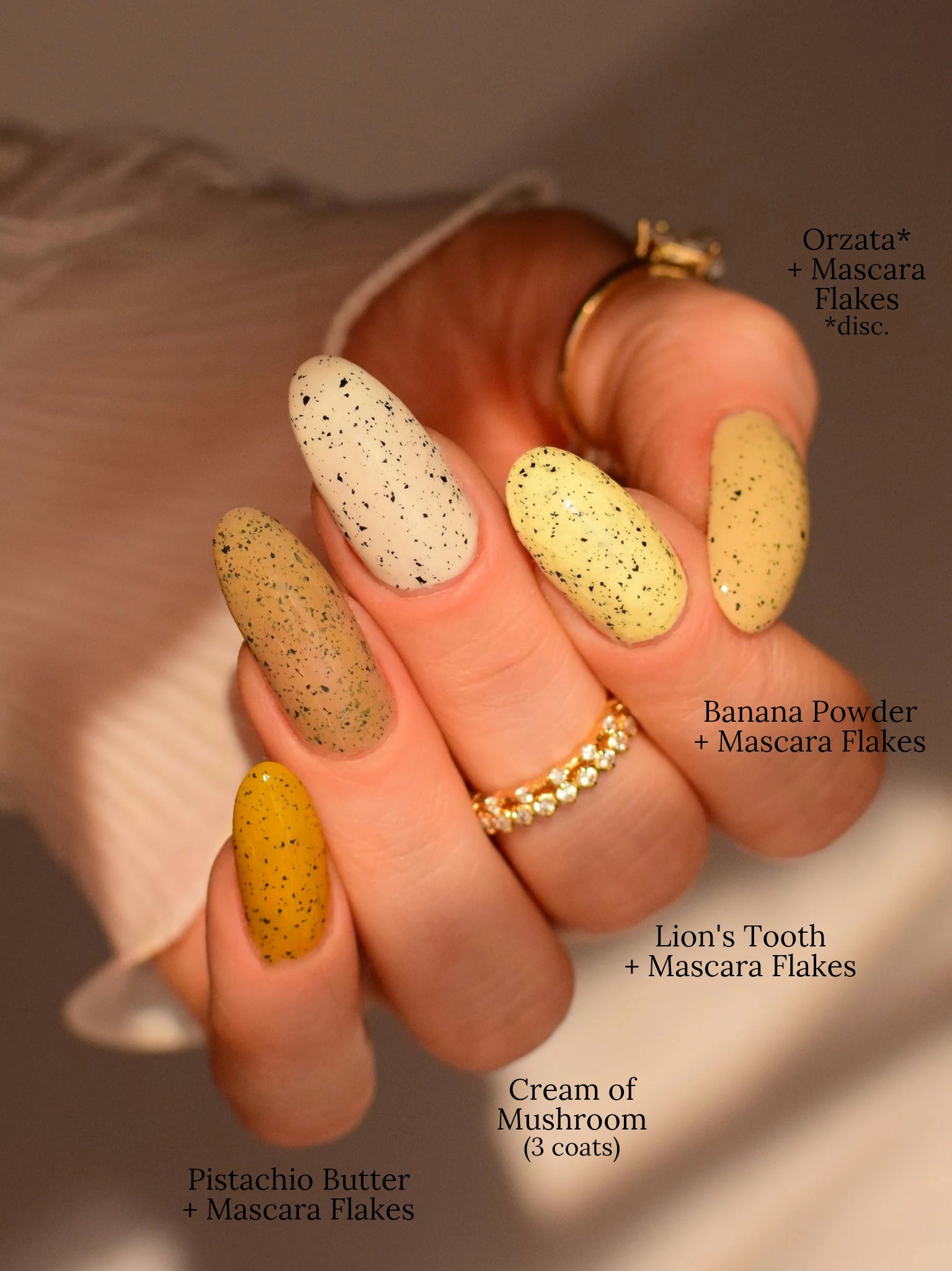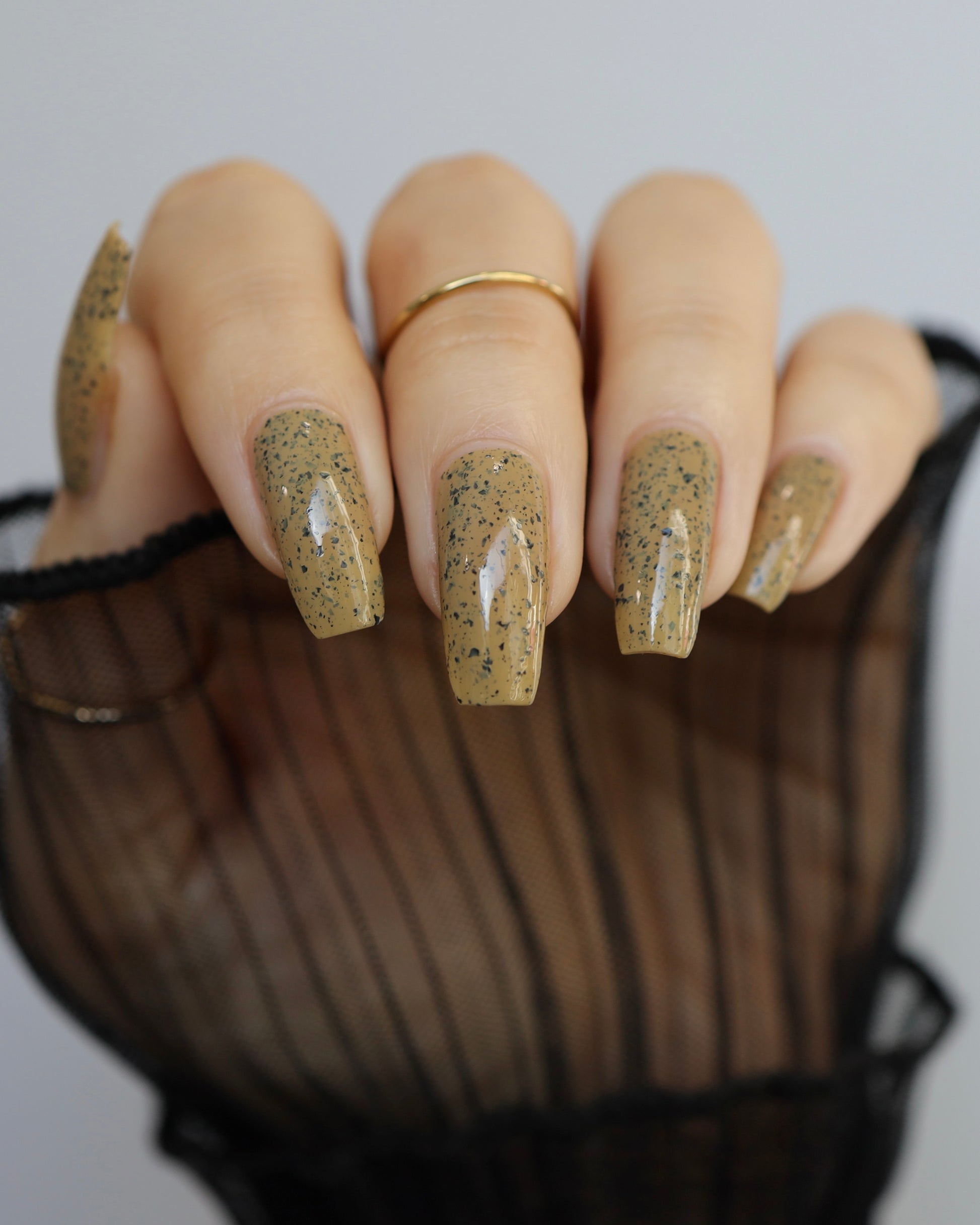 One of our founders favs from the collection! Cream Of Mushroom is a dark tan with black flakes. Best if poured on the nails versus a bowl. Daring for something different? Pick up our Matte Top Coat for a cool speckled egg look.