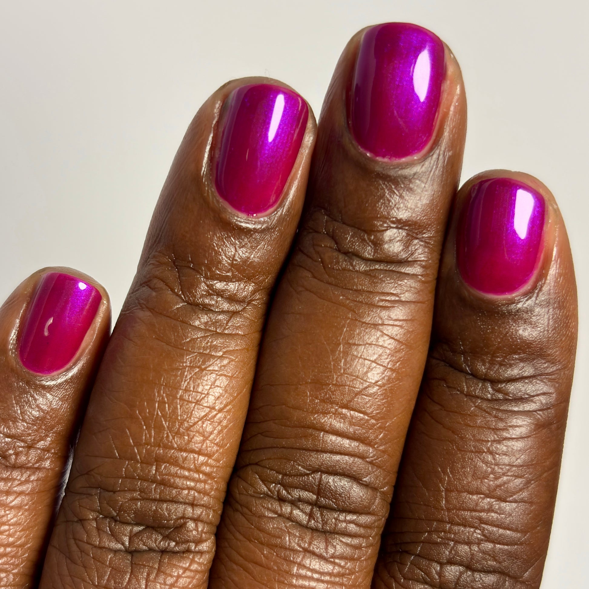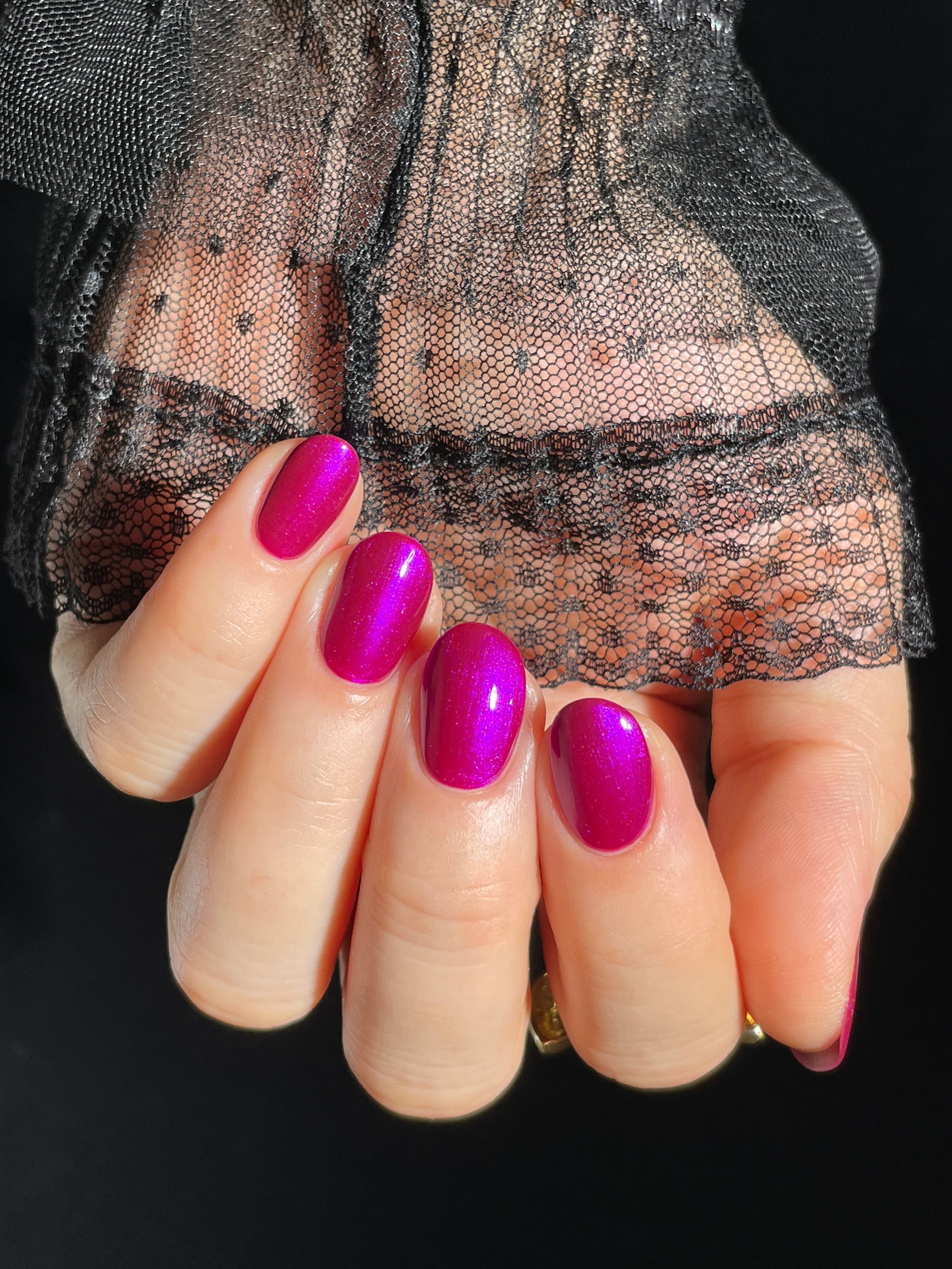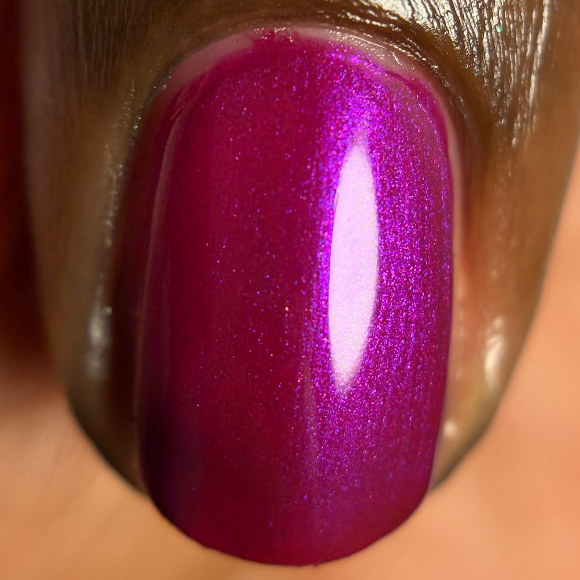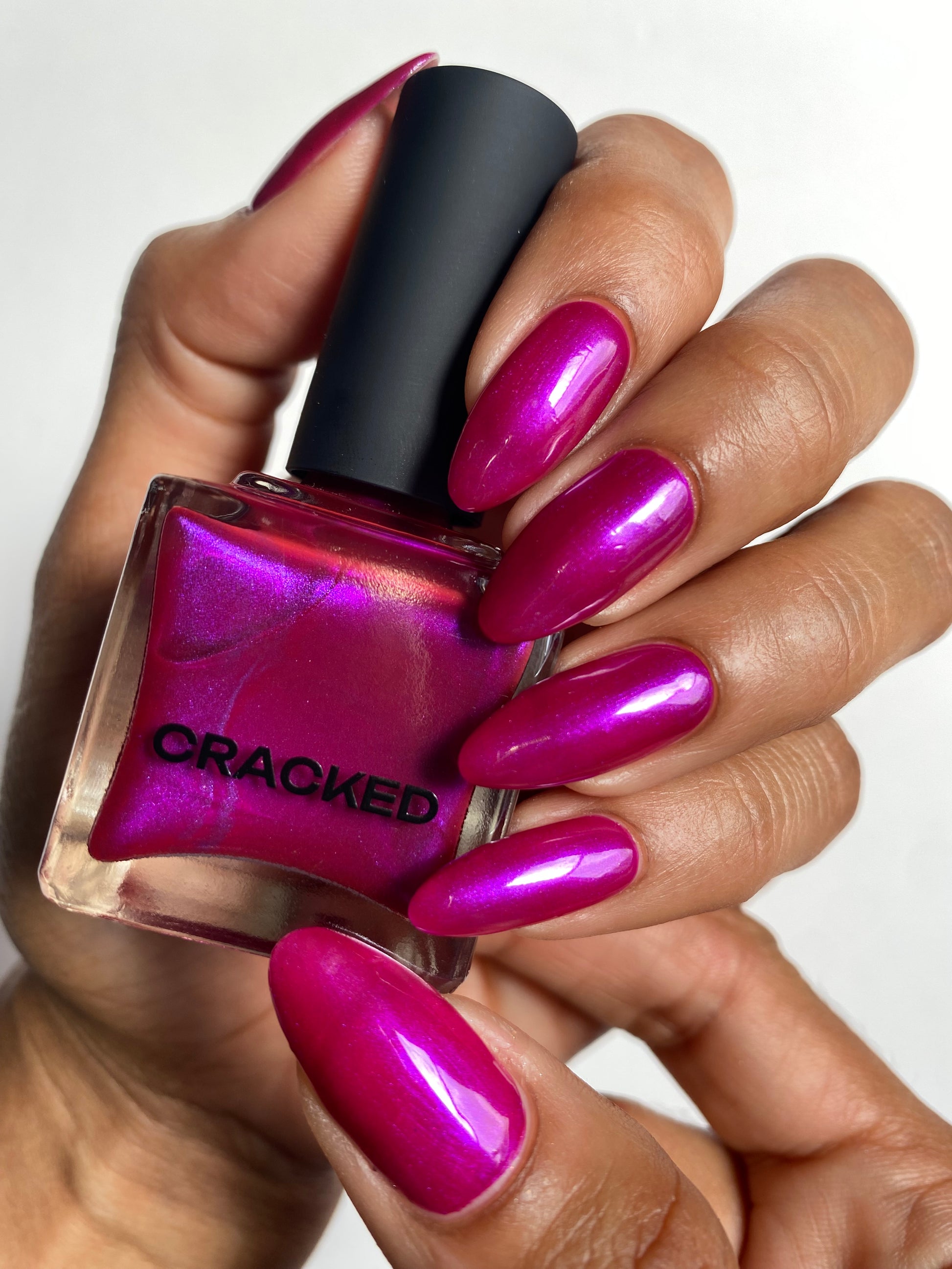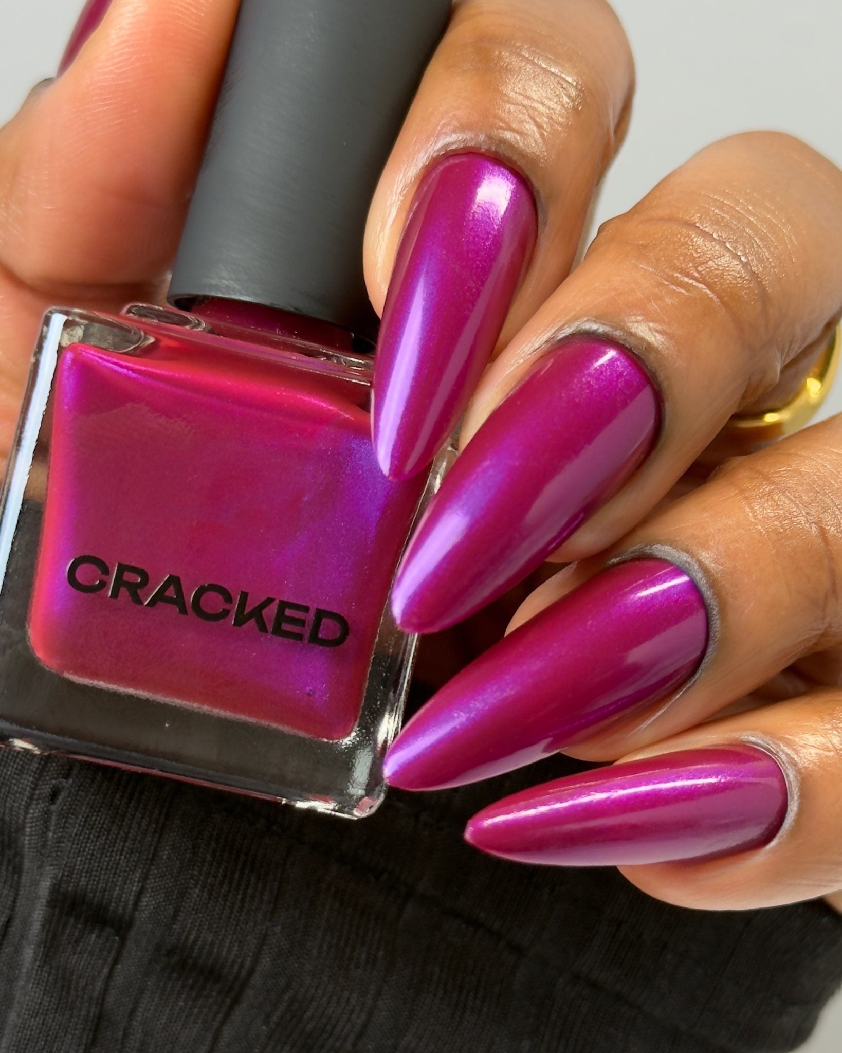 Every holiday table has that one dish the cranberry sauce everyone insists on making, but it barely gets touched. We took that idea and gave it a glow-up. Cursed Cranberry is a rich, buildable magenta cranberry jelly laced with fine purple aurora pigments that catch the light like a secret waiting to be discovered. Deep, juicy, and full of dimension, this shade goes from a sheer kiss of color to a bold, jammy manicure with extra coats. It’s playful, and guaranteed to get more attention than the forgotten bowl at dinner.