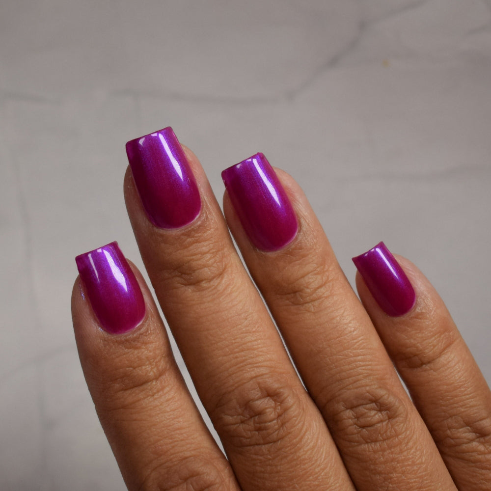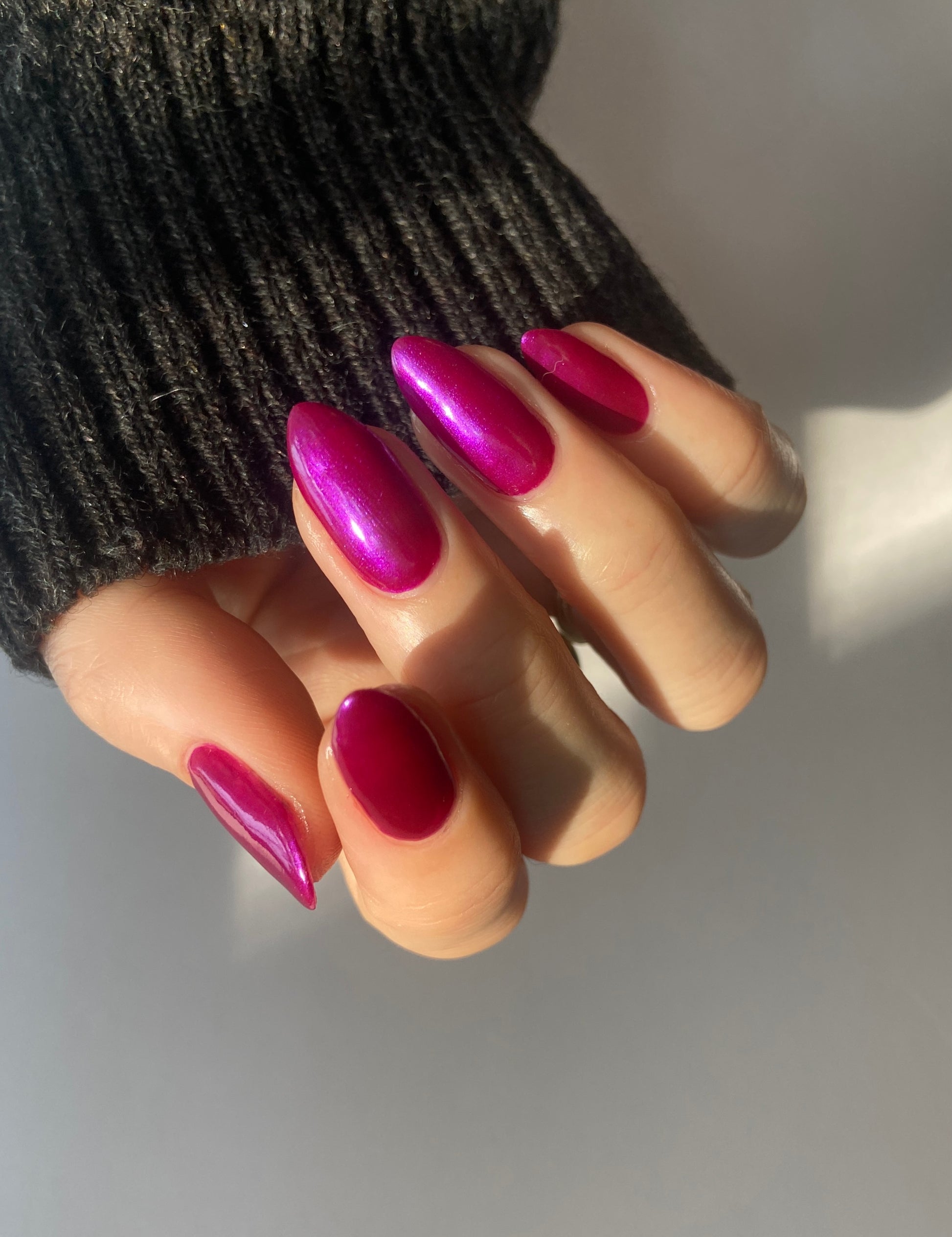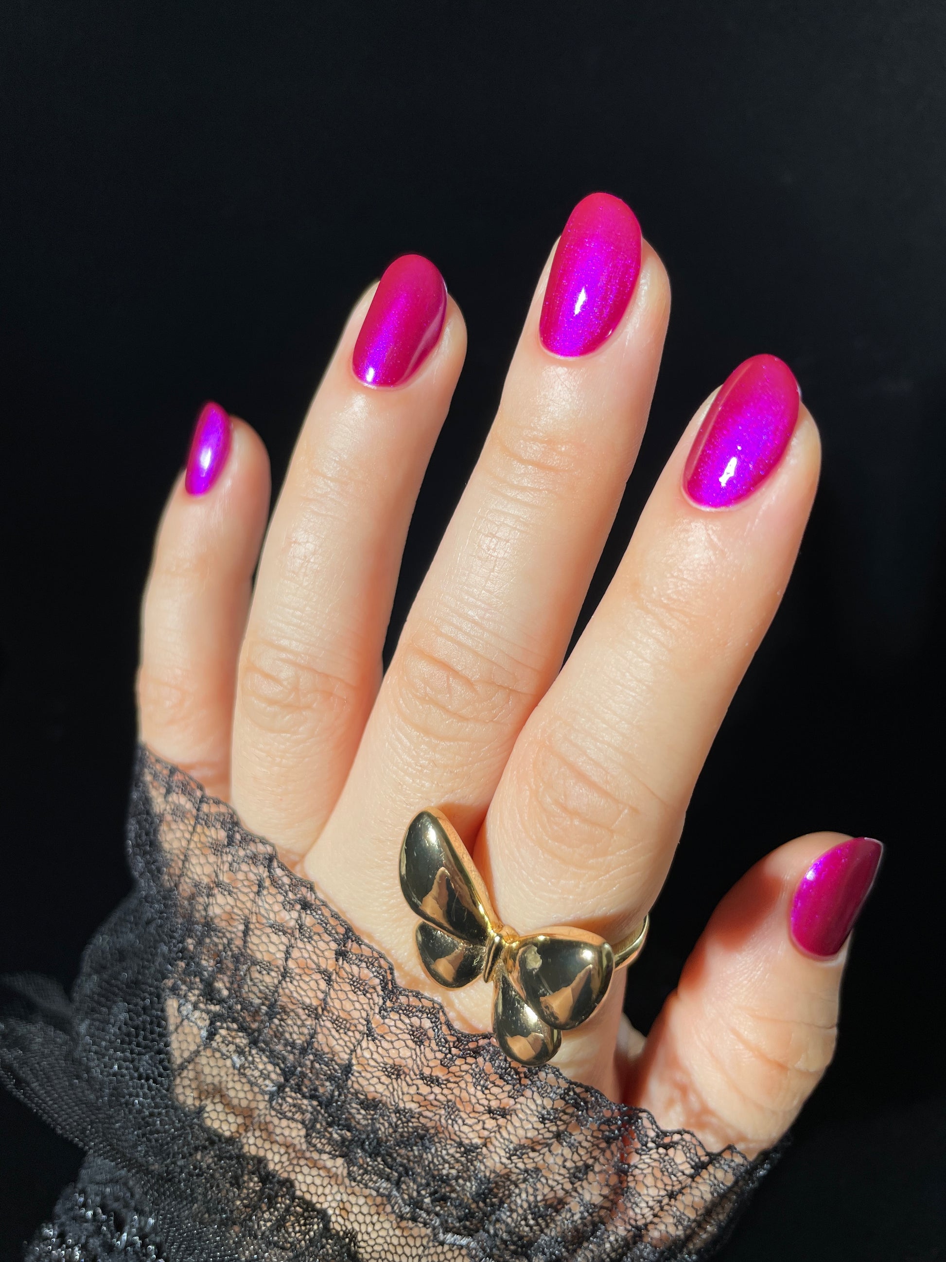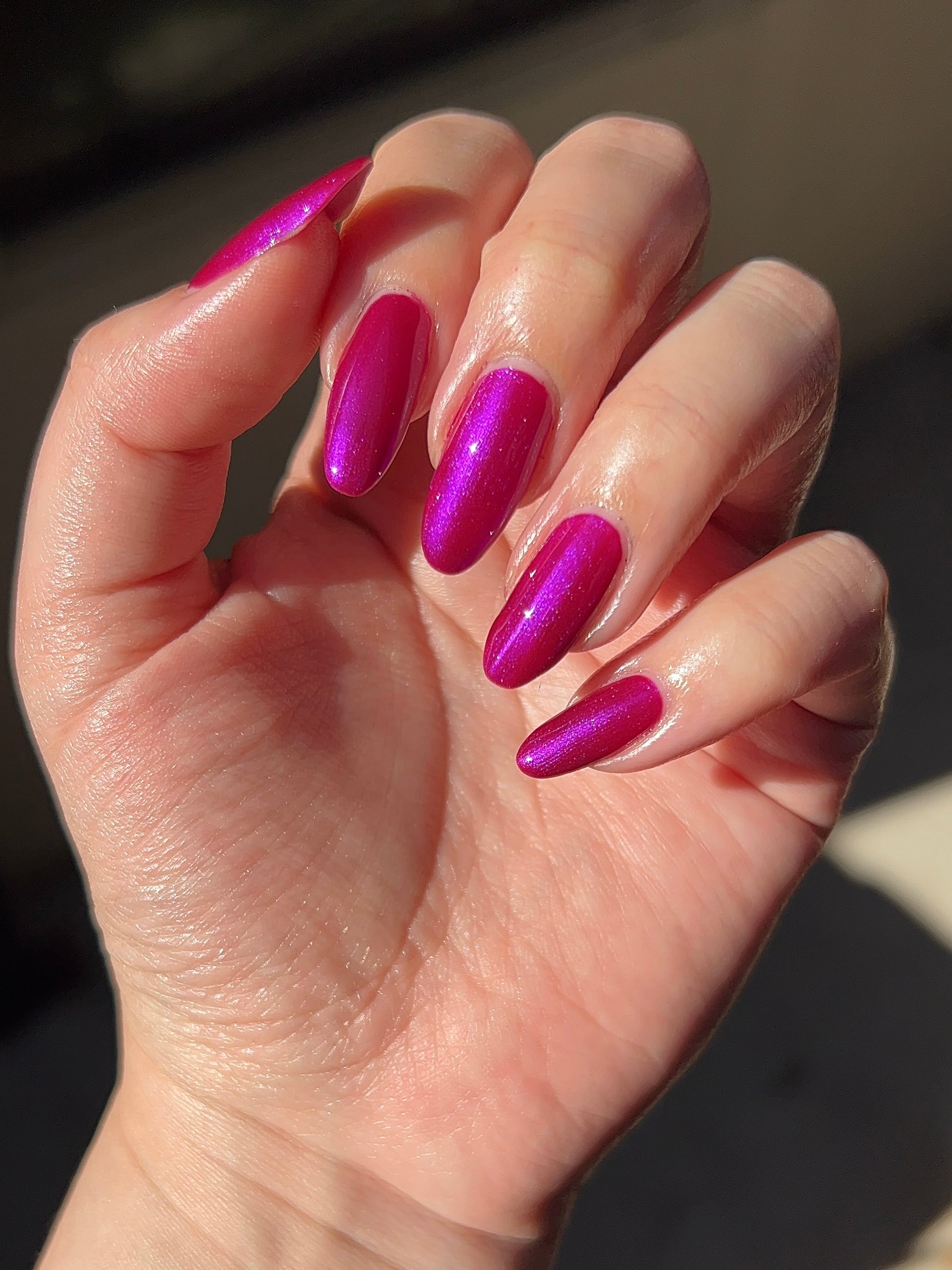 Every holiday table has that one dish the cranberry sauce everyone insists on making, but it barely gets touched. We took that idea and gave it a glow-up. Cursed Cranberry is a rich, buildable magenta cranberry jelly laced with fine purple aurora pigments that catch the light like a secret waiting to be discovered. Deep, juicy, and full of dimension, this shade goes from a sheer kiss of color to a bold, jammy manicure with extra coats. It’s playful, and guaranteed to get more attention than the forgotten bowl at dinner.