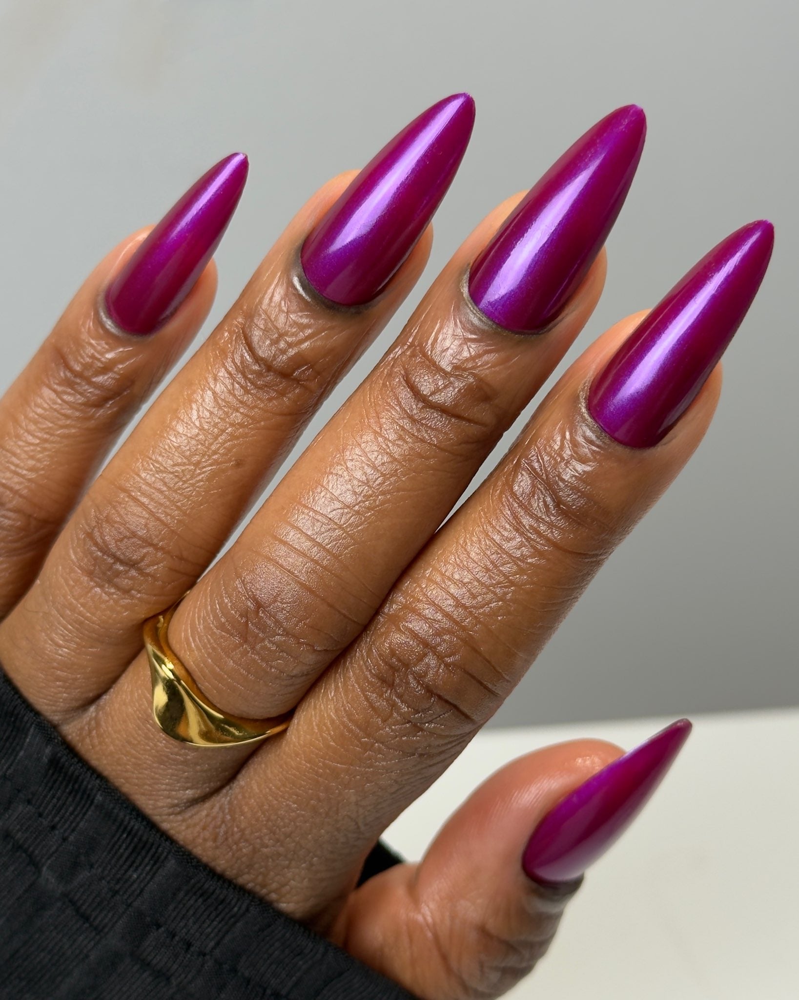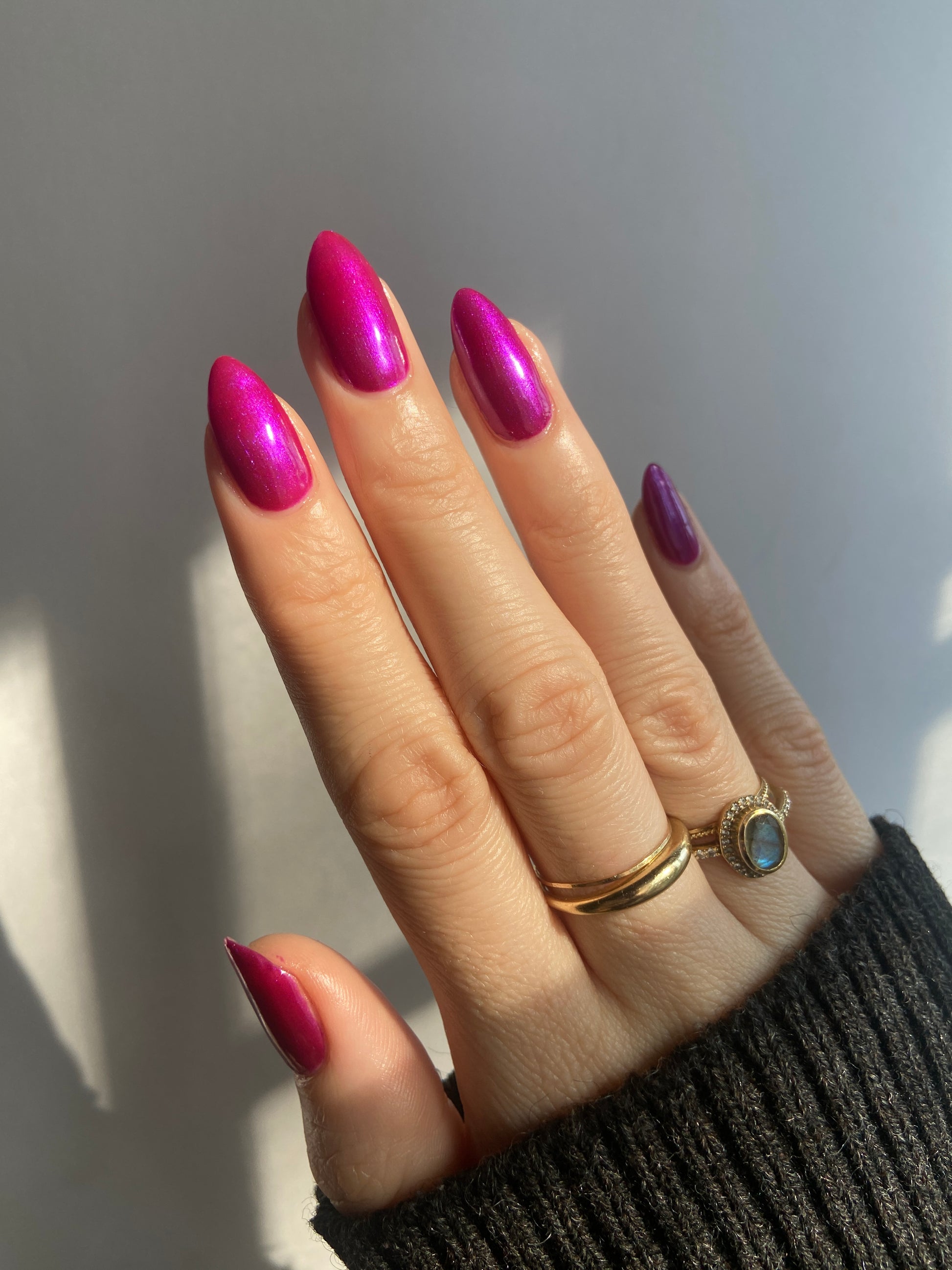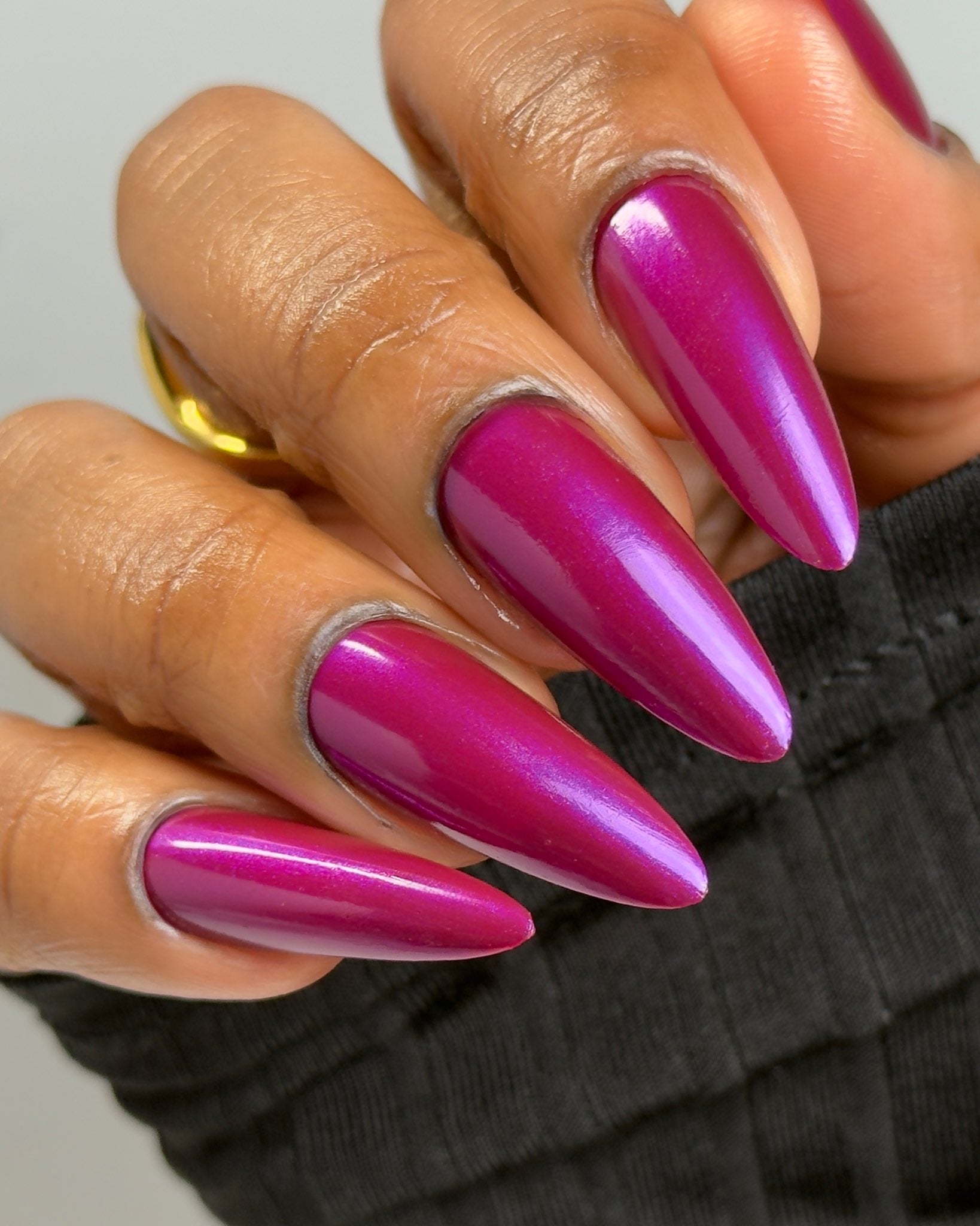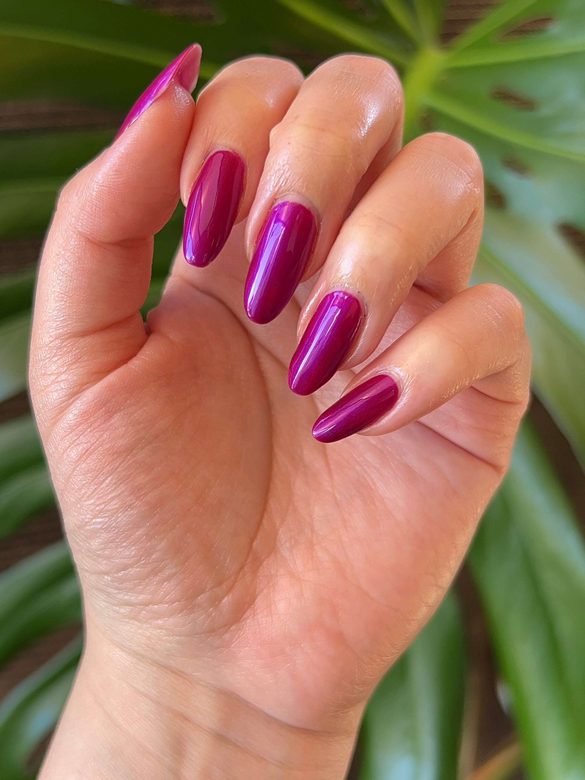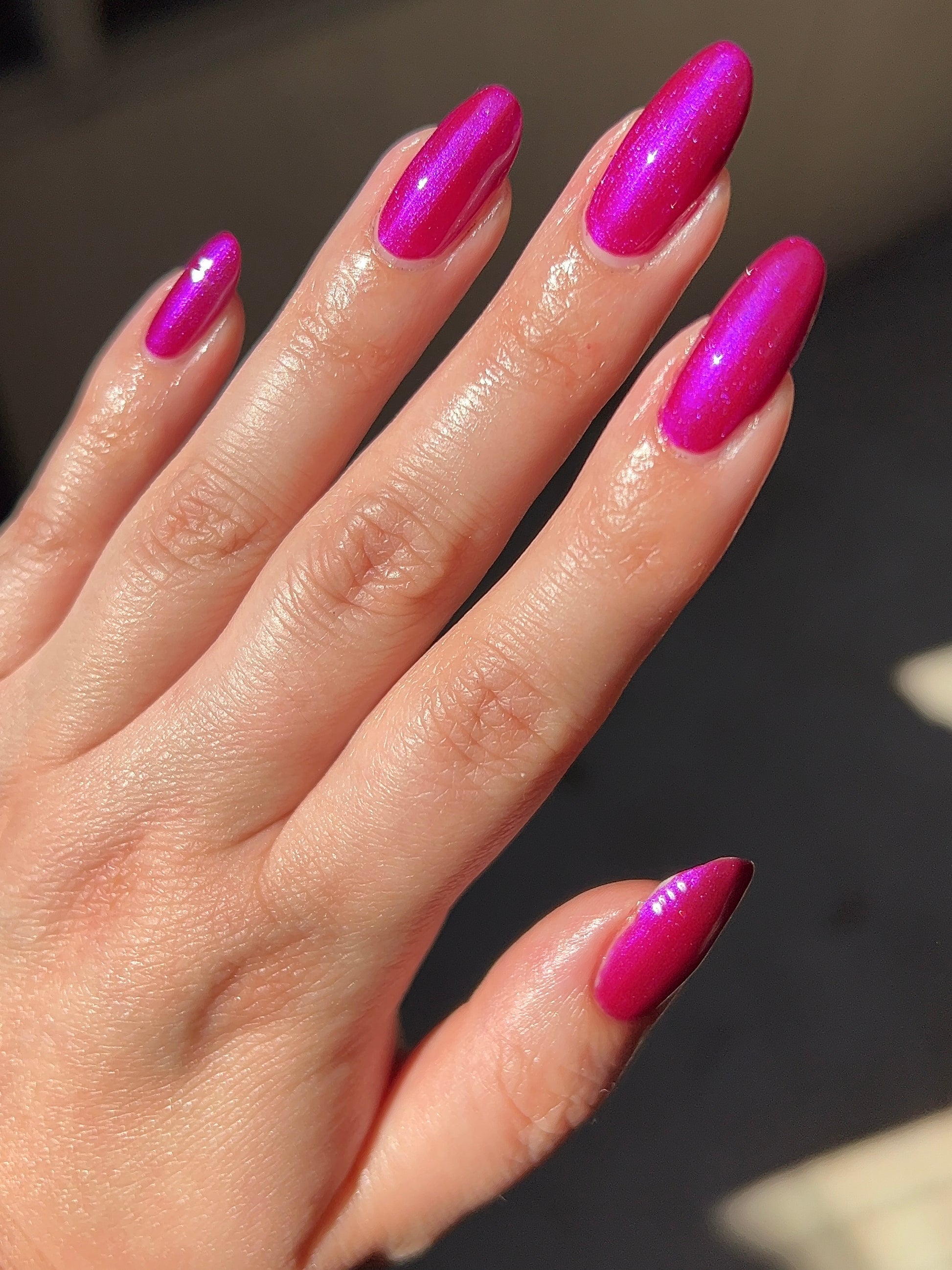 Every holiday table has that one dish the cranberry sauce everyone insists on making, but it barely gets touched. We took that idea and gave it a glow-up. Cursed Cranberry is a rich, buildable magenta cranberry jelly laced with fine purple aurora pigments that catch the light like a secret waiting to be discovered. Deep, juicy, and full of dimension, this shade goes from a sheer kiss of color to a bold, jammy manicure with extra coats. It’s playful, and guaranteed to get more attention than the forgotten bowl at dinner.