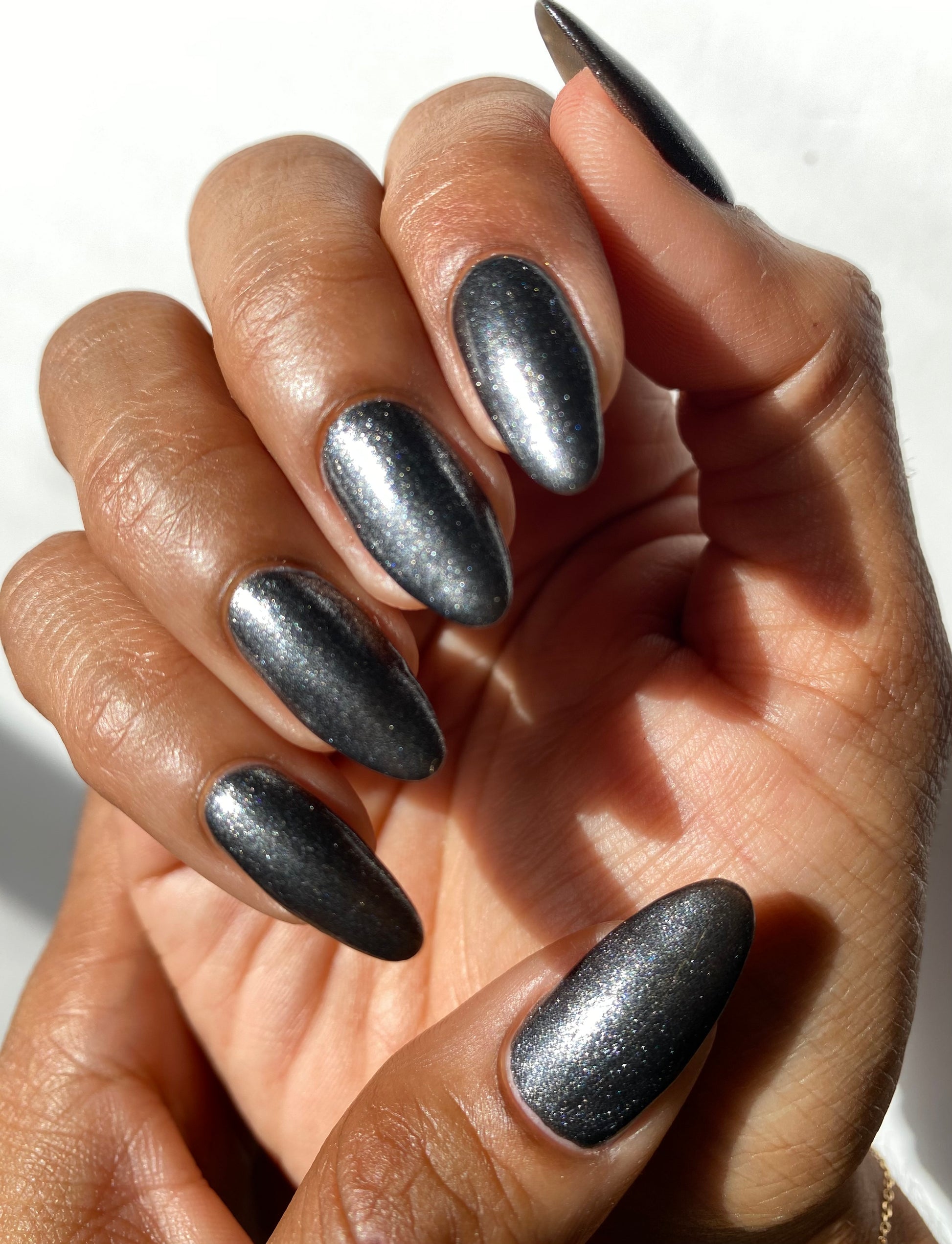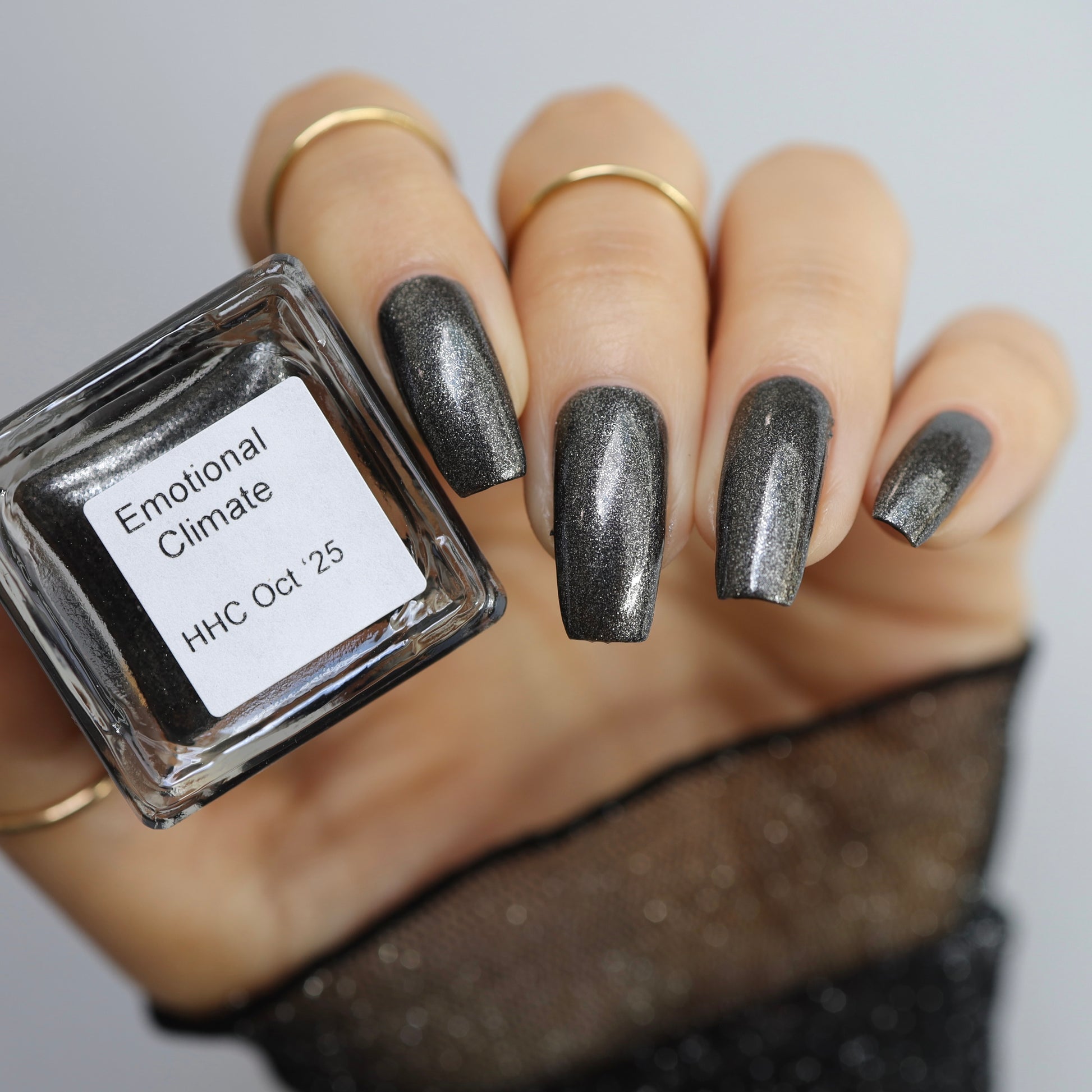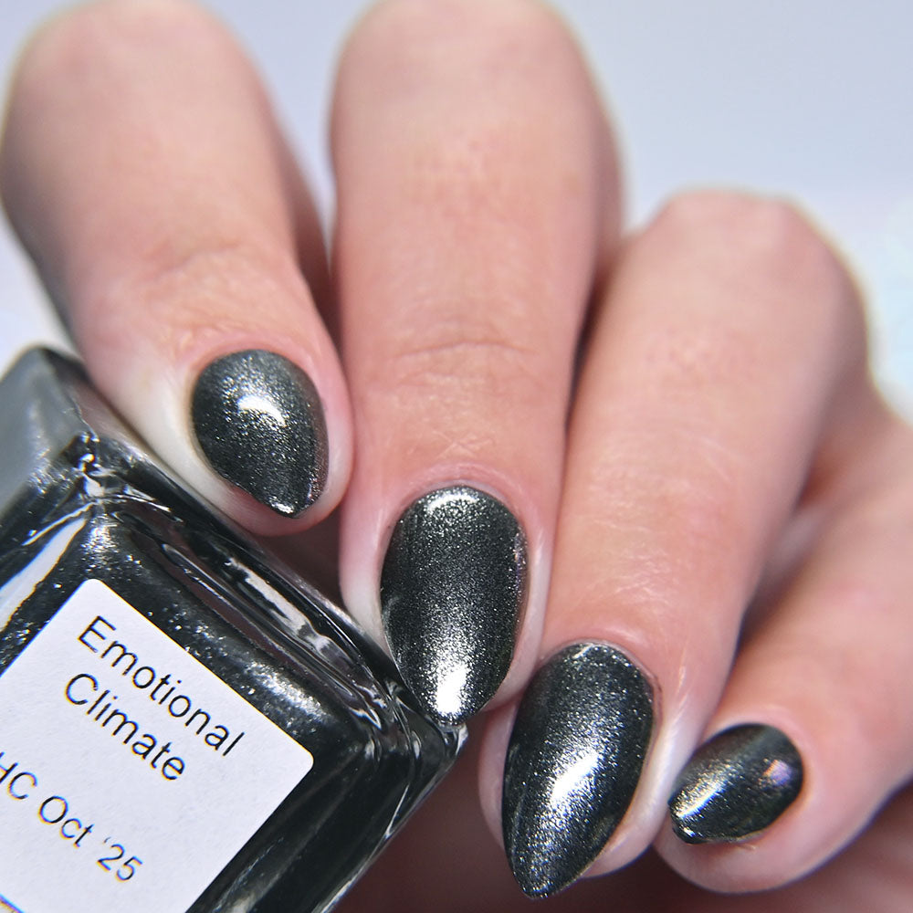 Emotional Climate is when the skies turn moody, and your nails can match the vibe. Emotional Climate is a smokey gray kissed with silver shimmers, capturing the stormy beauty of shifting PNW weather. Part of our ongoing theme “It’s Not You, It’s The Weather” , this shade is equal parts mysterious and cool. Perfect for days when the atmosphere sets the tone.
