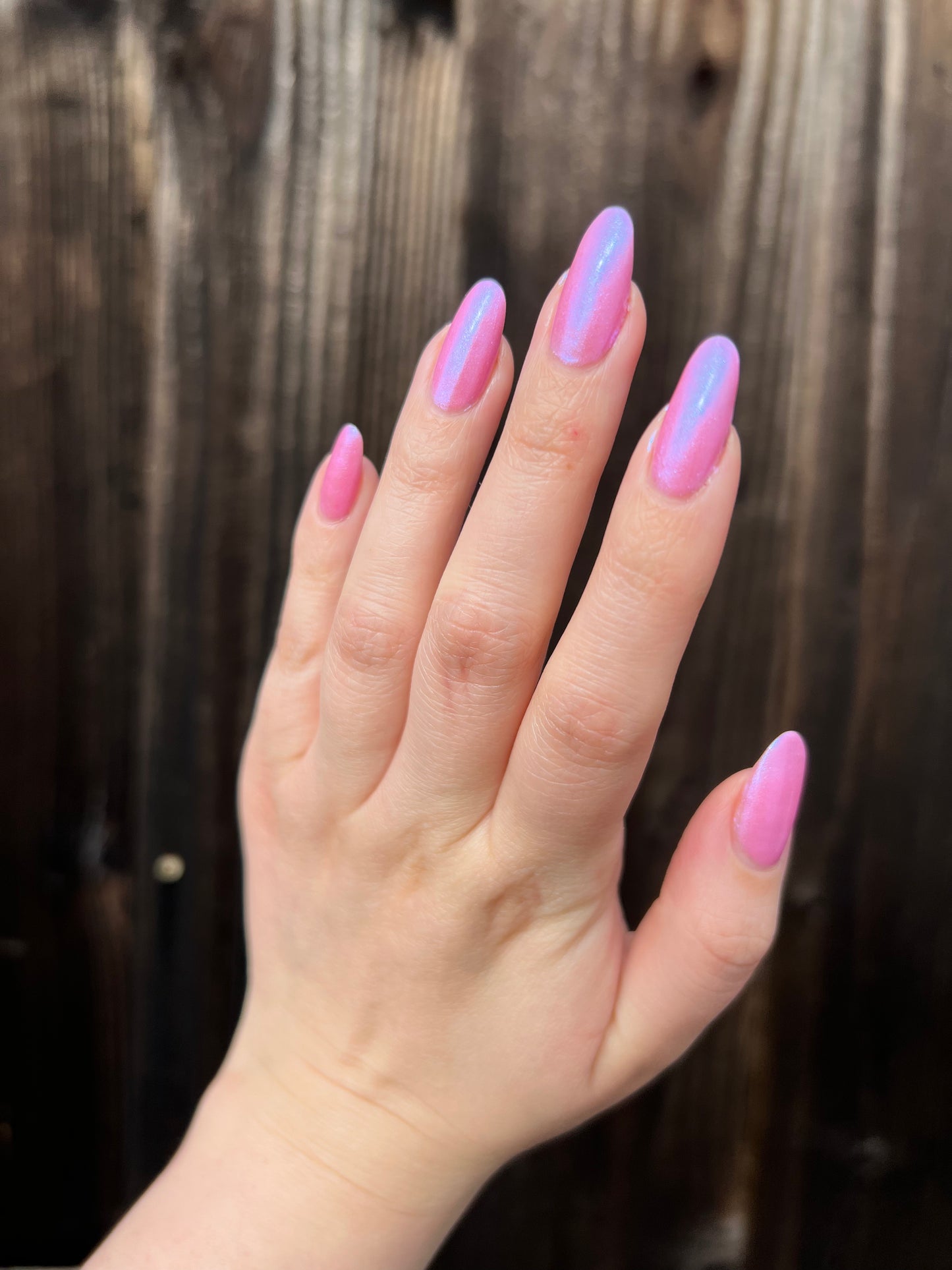 There are many baby pinks with blue shimmer, but this one is SO well done. Absolutely stunning shimmer in this one. So delicate and princess-y.