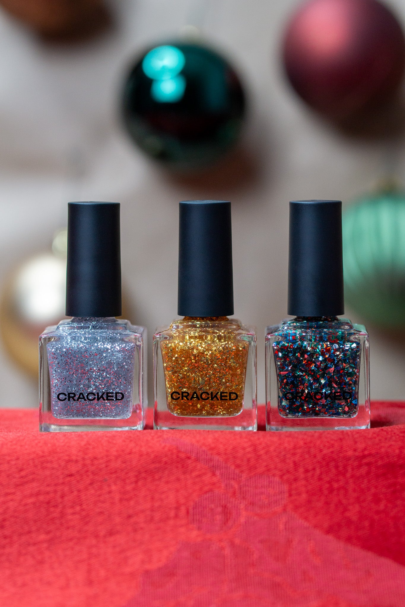 Complete your holiday look with Finishing Touches, a flake nail polish trio that adds the perfect sparkle to any manicure. This festive set features Broken Ornaments, a multicolored topper that scatters playful holiday hues like shattered glass baubles; With a Bow on Top, a luxe gold topper that wraps your nails in elegant, shimmering flecks; and A Sprinkle of Twinkle, a silver topper that dusts your tips with a frosty sparkle. Each topper brings its own unique magic, perfect for layering over your favorite polish. Add these dazzling finishing touches to your holiday nails for a show-stopping, festive glow!
