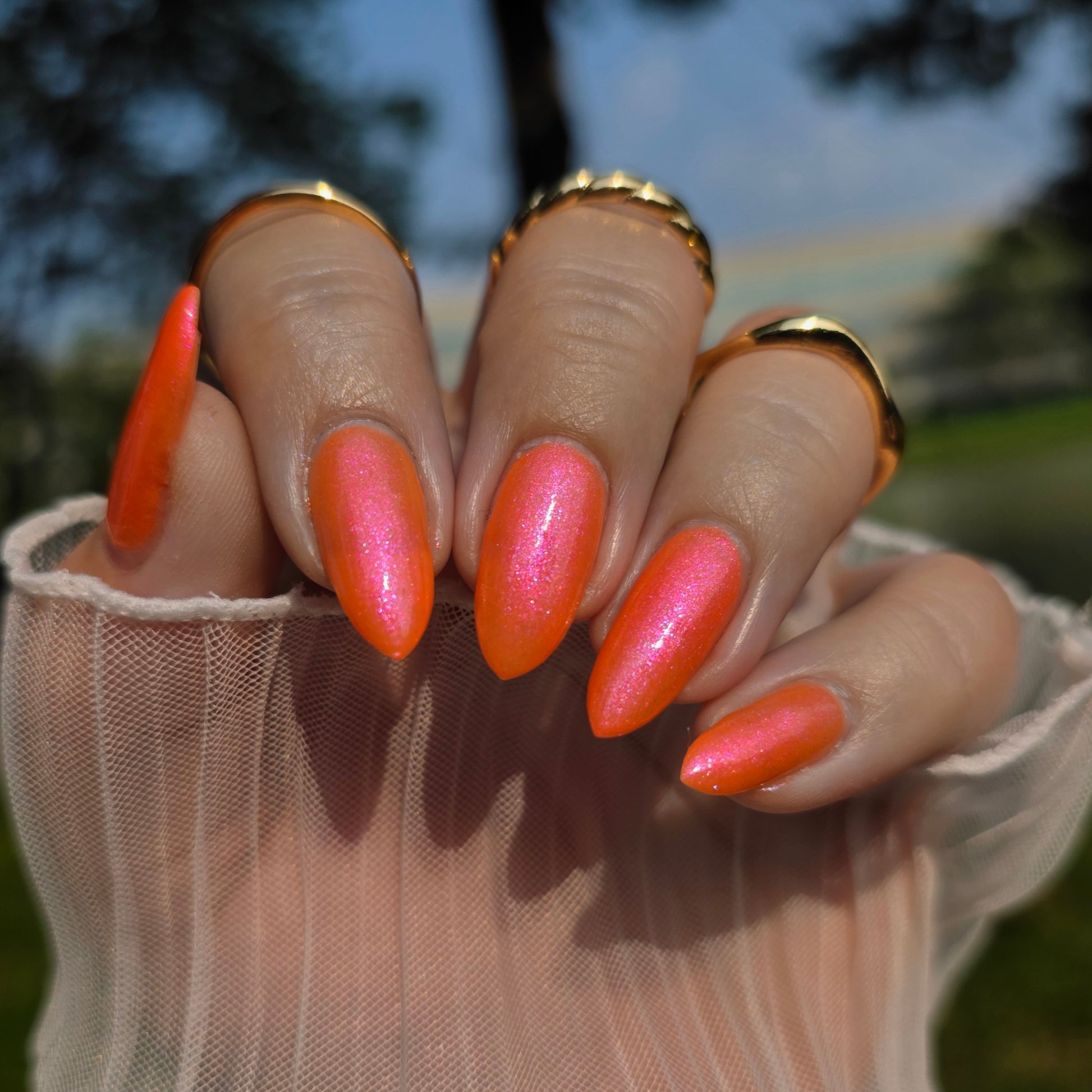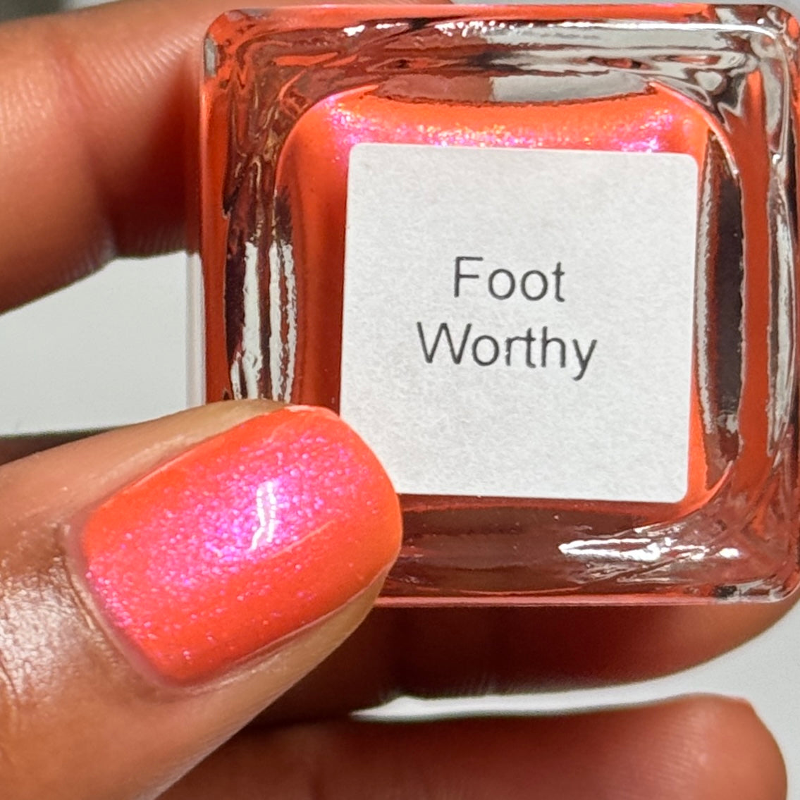 Foot Worthy is a bright, warm orange beaming with purple aurora pigments because orange deserves its moment. Underrated? Absolutely. Stunning? Without question. Even if you’re not ready to flaunt it on your fingertips, this bold beauty is more than foot worthy. Go on, give your toes the attention they’ve earned.