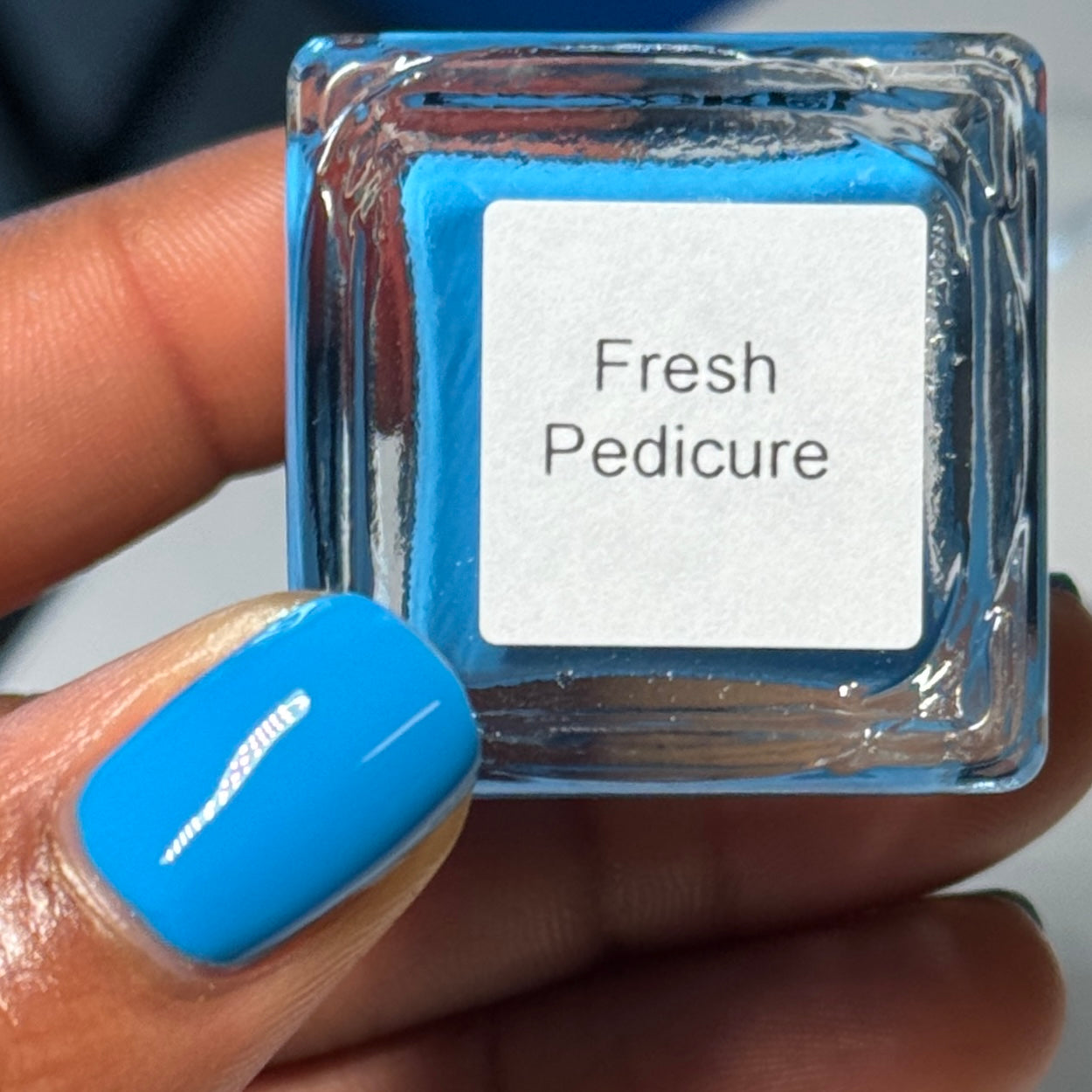 Fresh Pedicure is a bright blue cream that feels like a deep breath and a moment to yourself. Think spa day serenity, cool towels, and cucumber water vibes. Fresh Pedicure is your inner peace in polish form. Clean, calming, and the ultimate act of self-care for your toes (and maybe your soul too).
