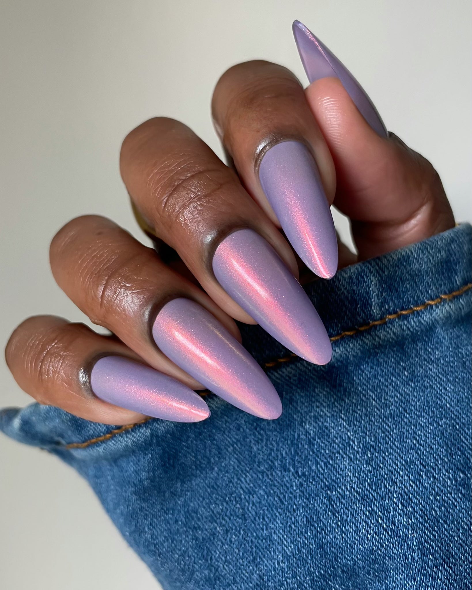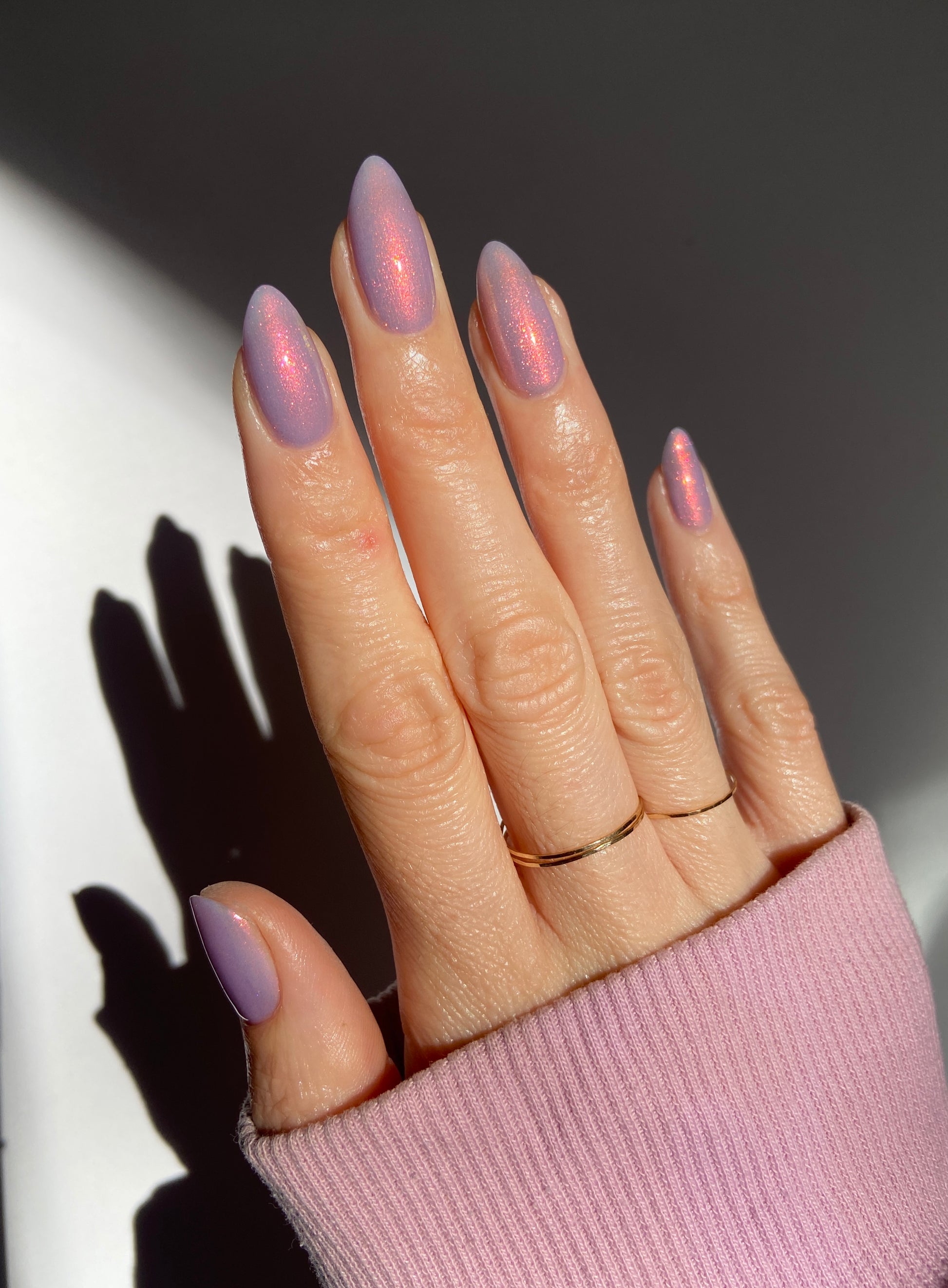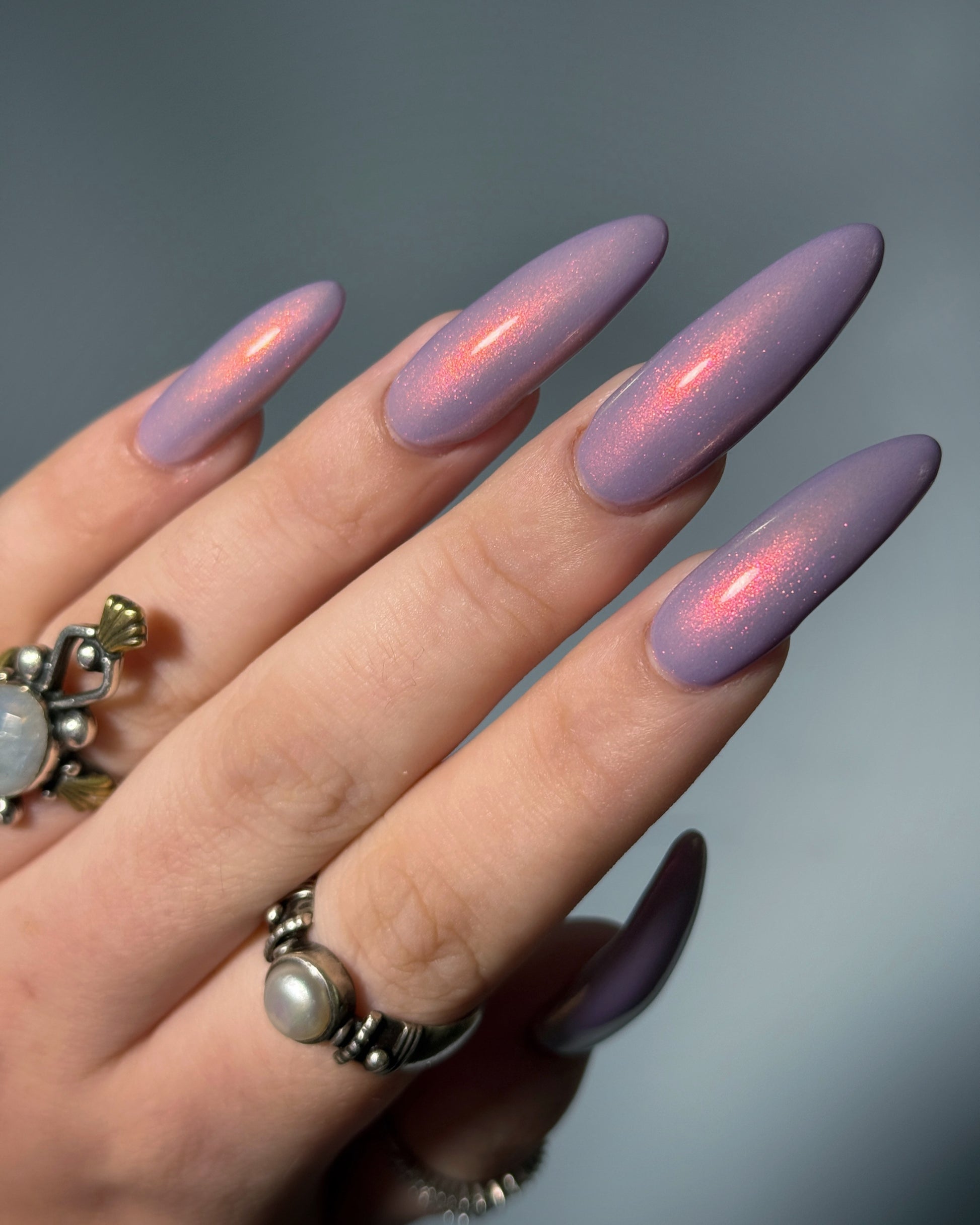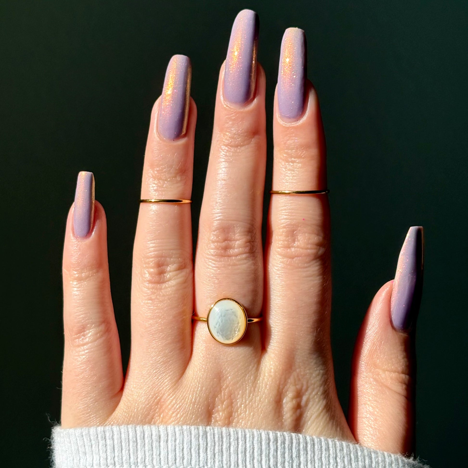 Frolicking In The Fields is a soft daydream come to life. This delicate lavender shade is lit up with pink and orange aurora pigments, while gold to green shifting shimmers dance like sunlight through wildflowers. Inspired by wandering minds, slow moments, and the magic of stopping to smell the blooms, this polish is your invitation to pause, play, and get lost in the beauty around you
