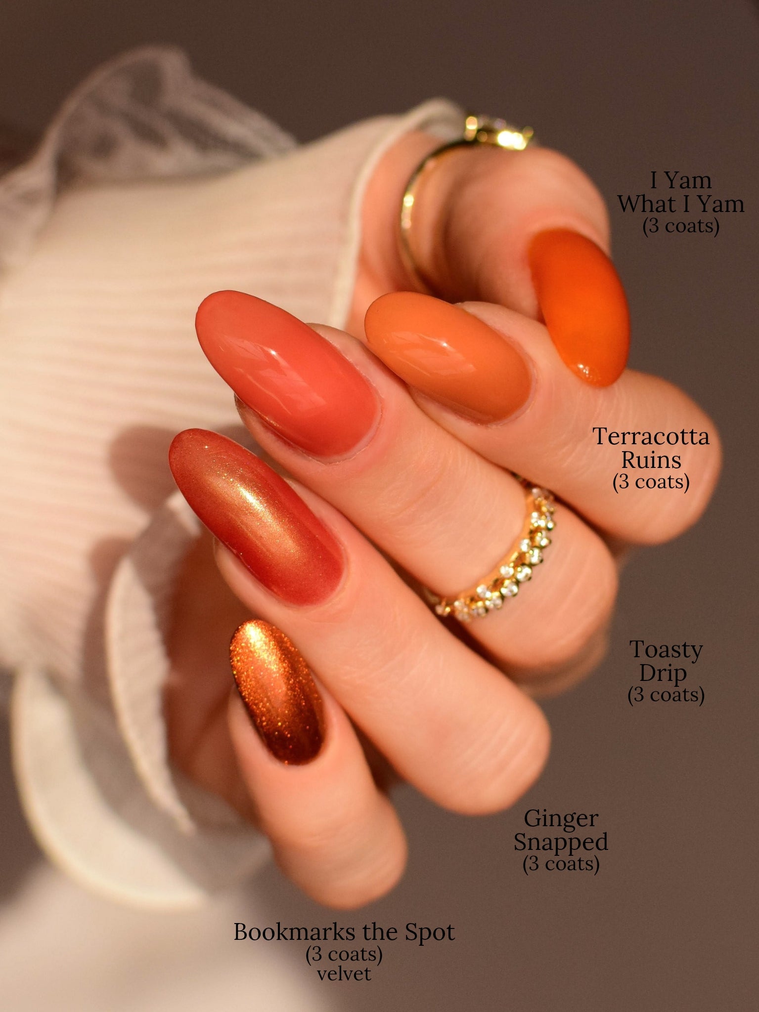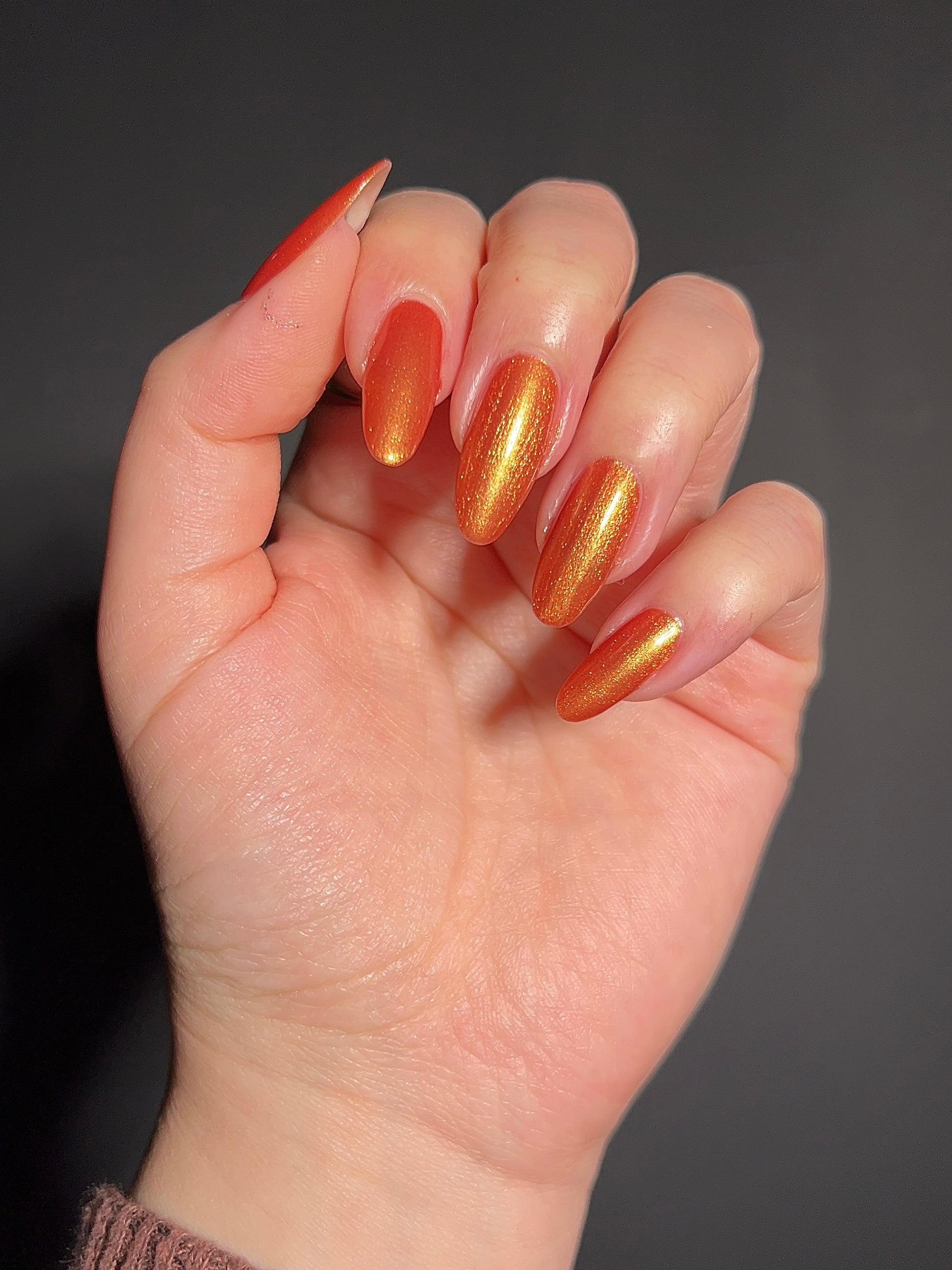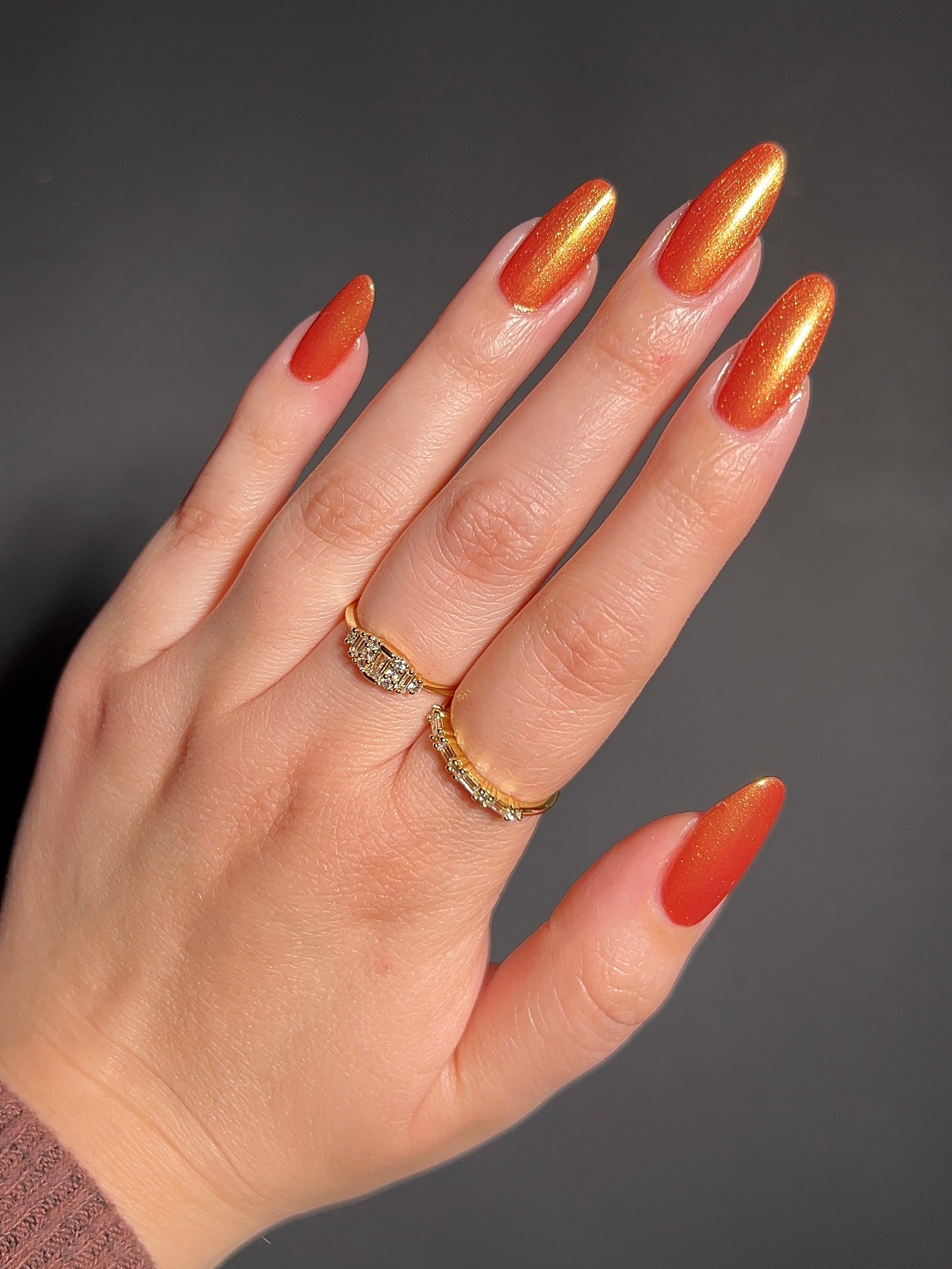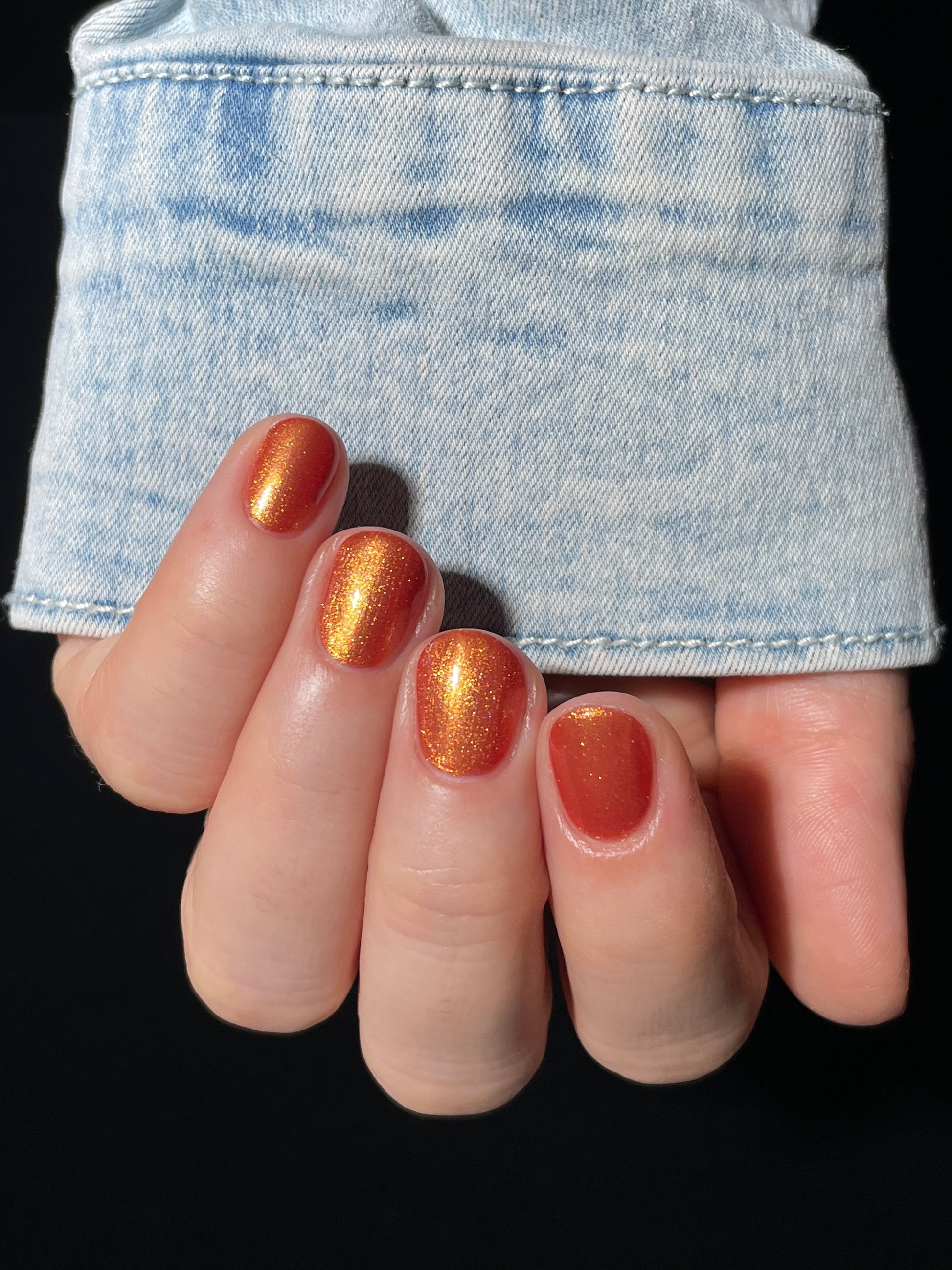 Ginger Snapped is the cutest little orange you've ever done seen. It's a burnt orange packed with a golden glow!
