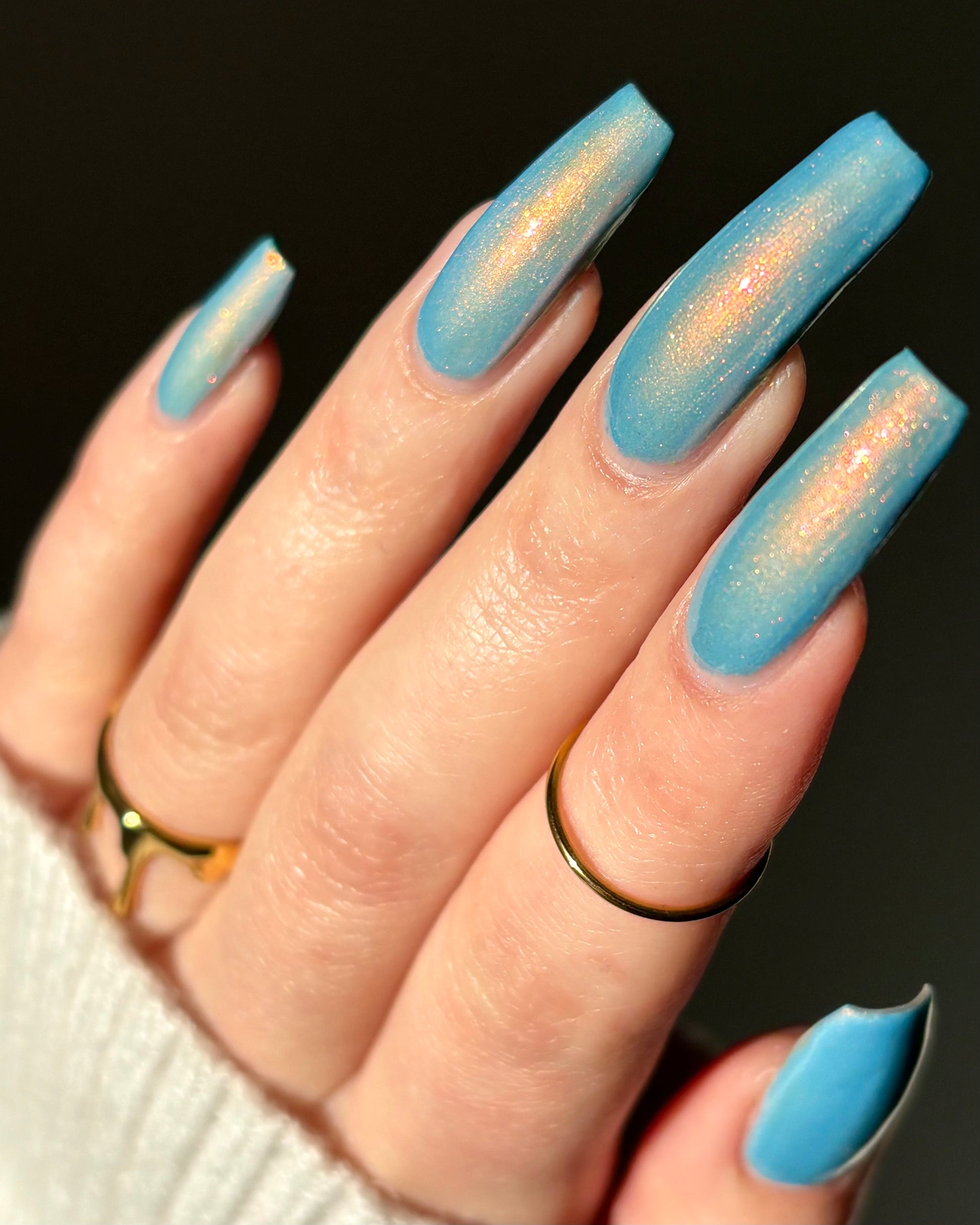 Silence protects injustice. GTFO ICE exists because standing up matters. This dusky, icy blue is packed with pink, gold, and orange shimmers, and a portion of proceeds supports efforts to abolish ICE and protect the rights of immigrants through direct legal services, systemic advocacy, and community education. This charity polish is only here for a limited time.