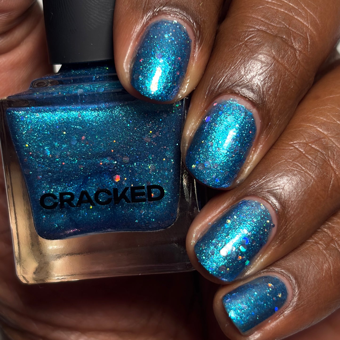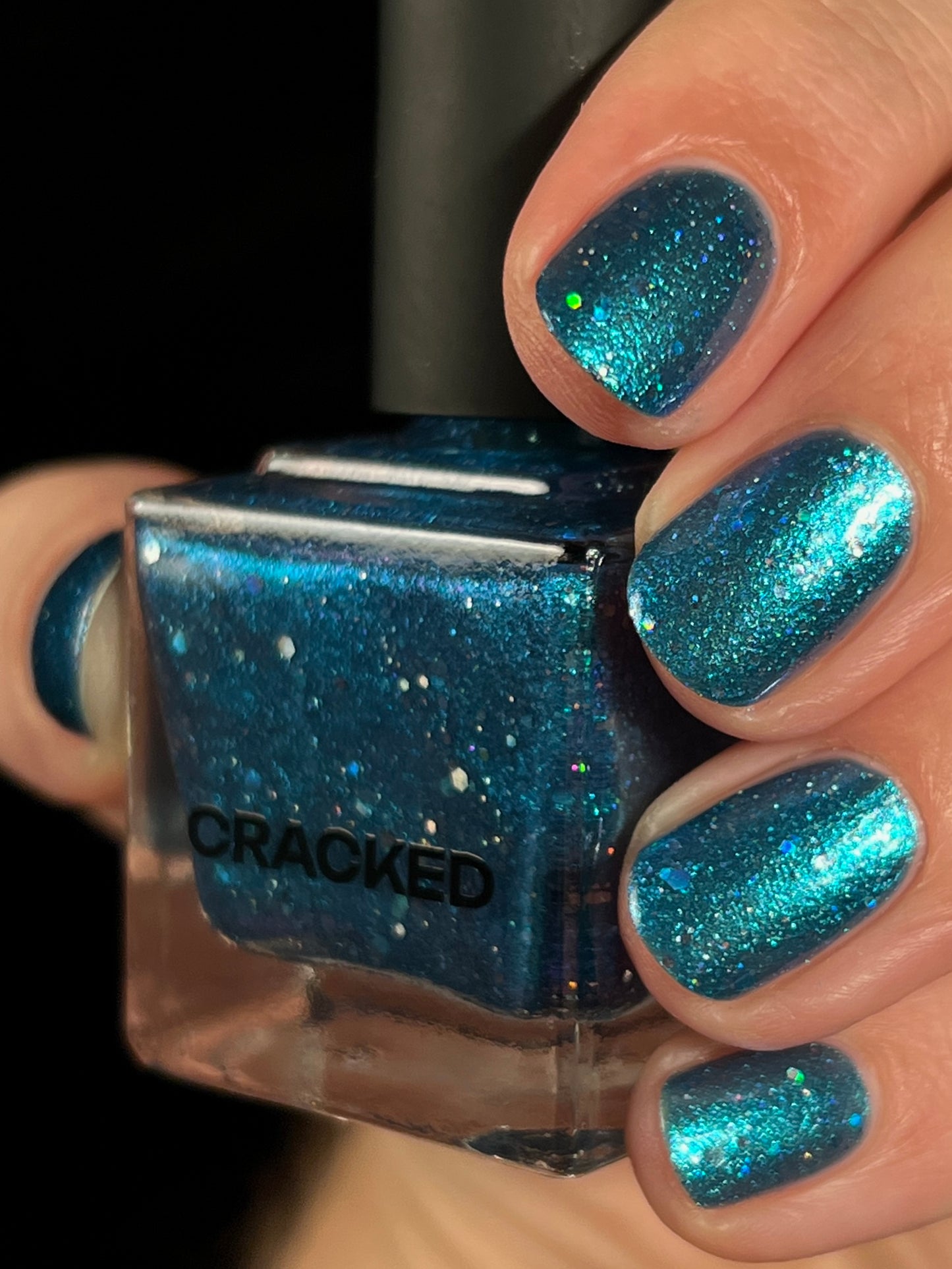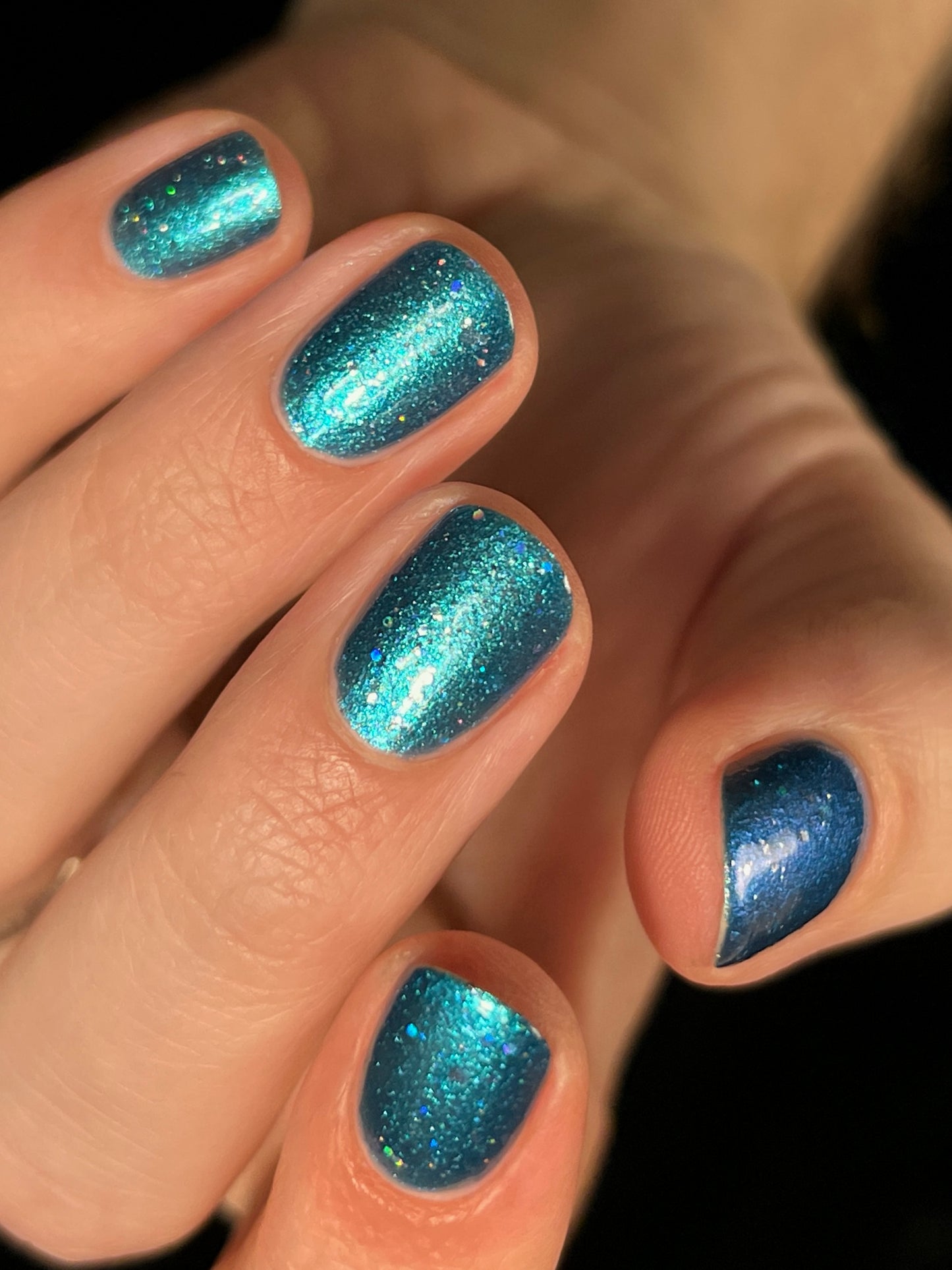 Continuing our journey down the indie rabbit hole, Guided Light is your shimmering compass through the dark and wondrous unknown. This deep teal stunner is lit from within by silver holographic glitters, catching the light like stars on the path ahead.