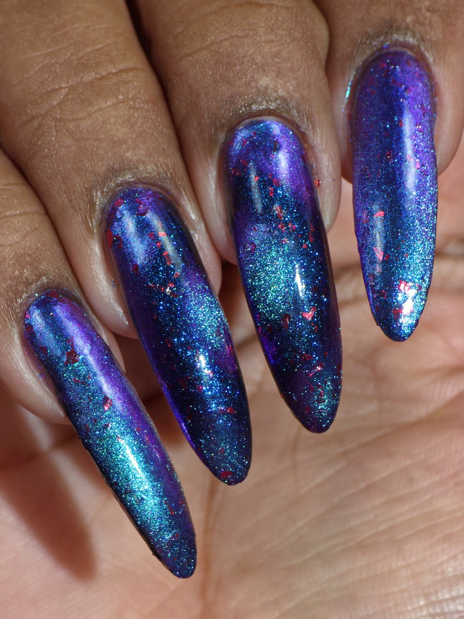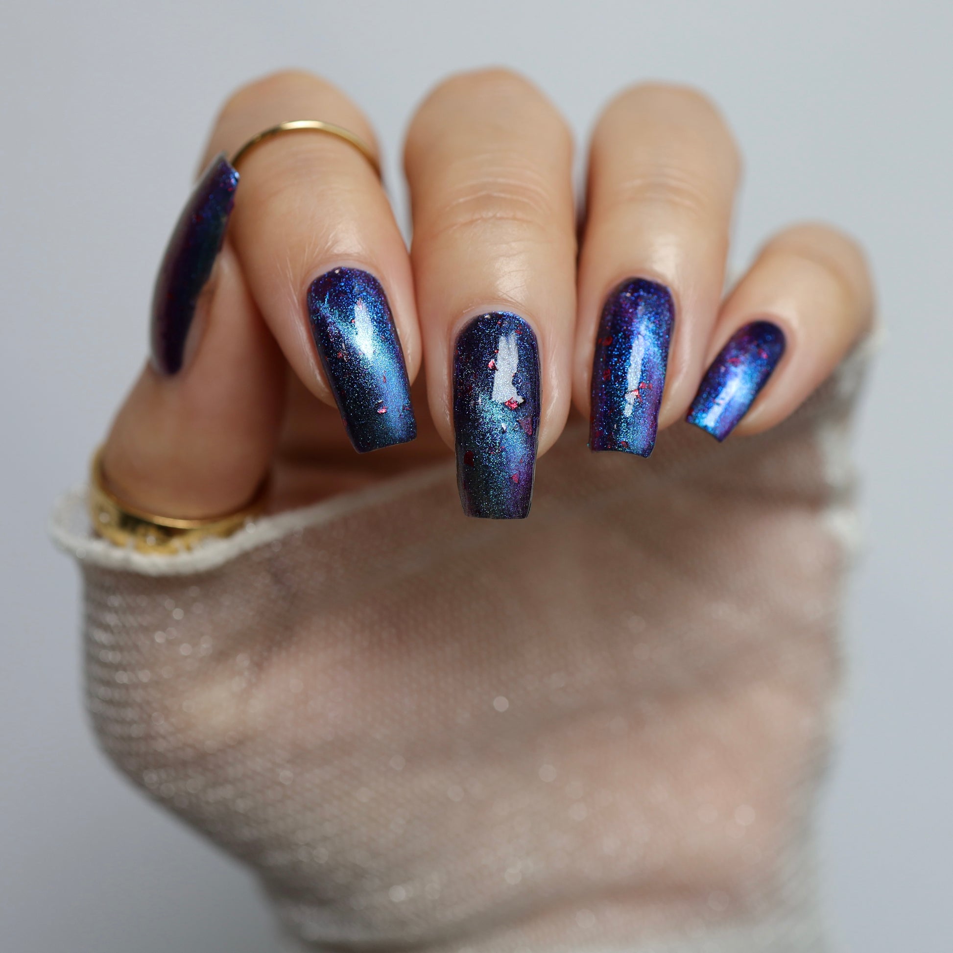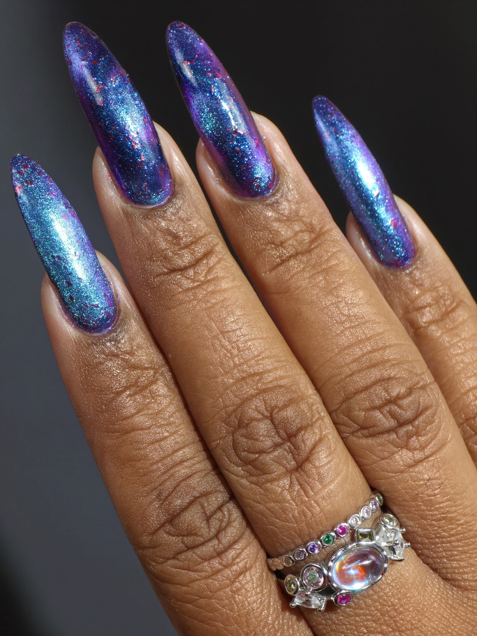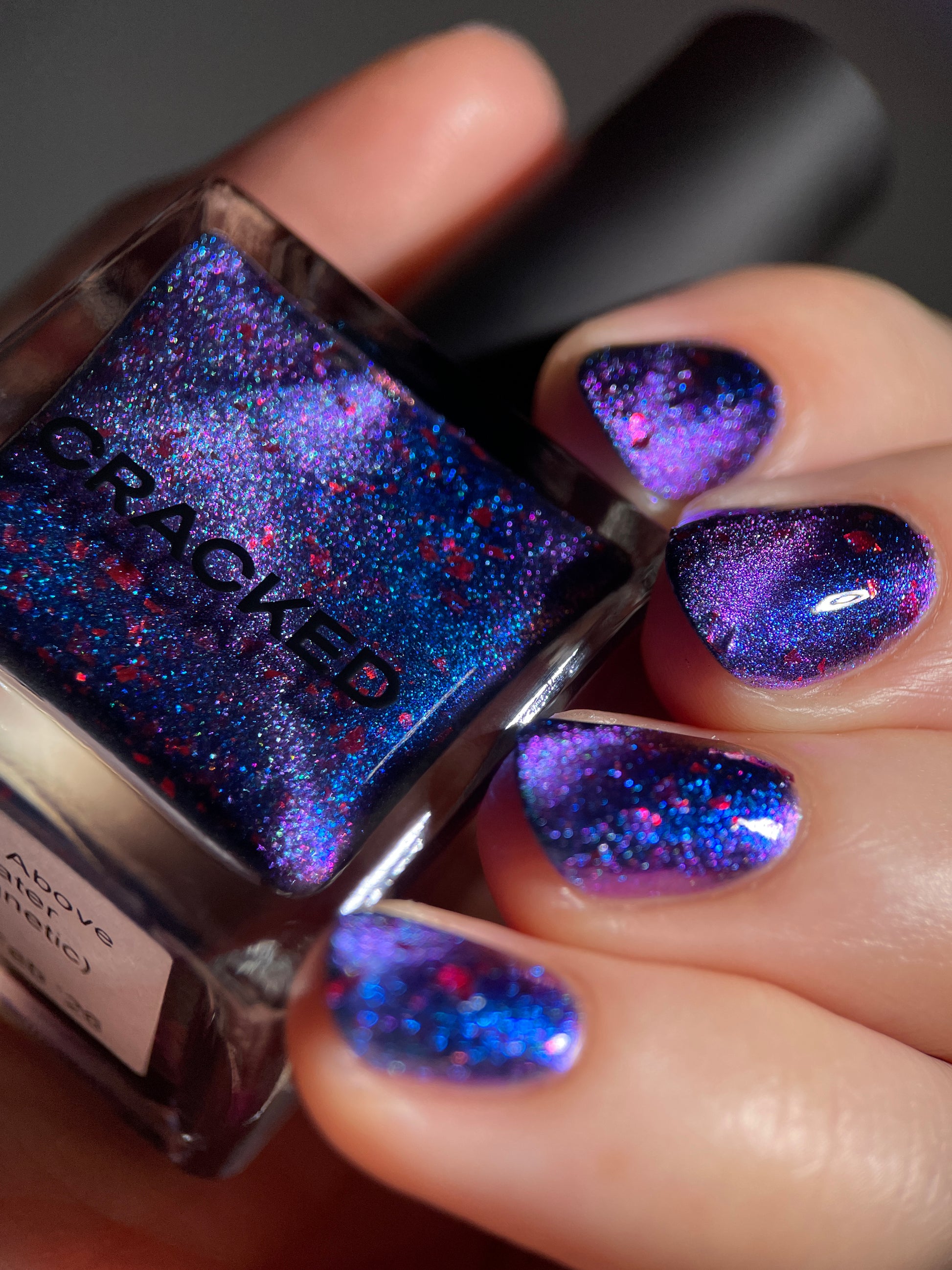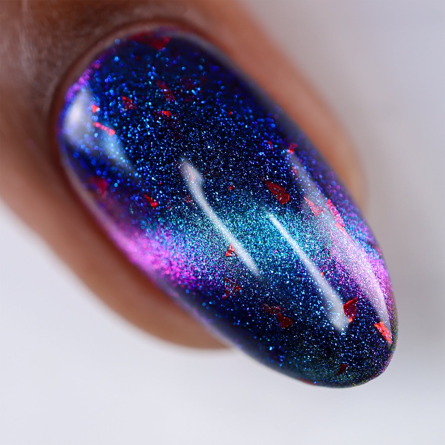 Head Above Water is a blue jelly that captures the quiet tension of relationships that never quite warm up. Inspired by the feeling of trying to stay afloat when it’s not you, it’s the weather. When your emotions are overwhelmed and your brain is flooded with thoughts. Cool blue magnetic pigments drift beneath the surface while sharp red shard glitters flash like warning signs you almost ignored. This shade mirrors the emotional chill of the isolation we sometimes find ourselves in and the strength it takes to keep your head above water anyway.