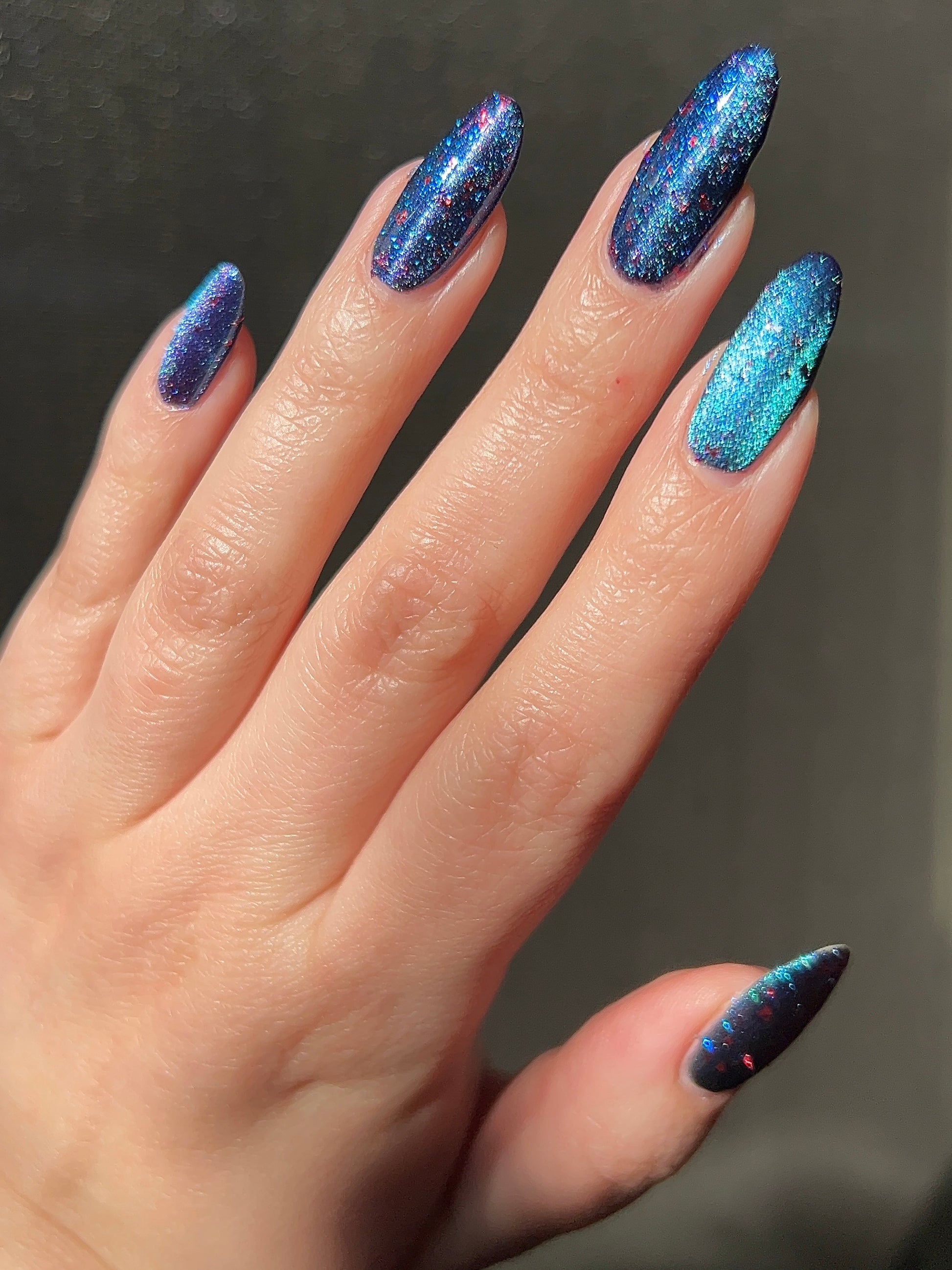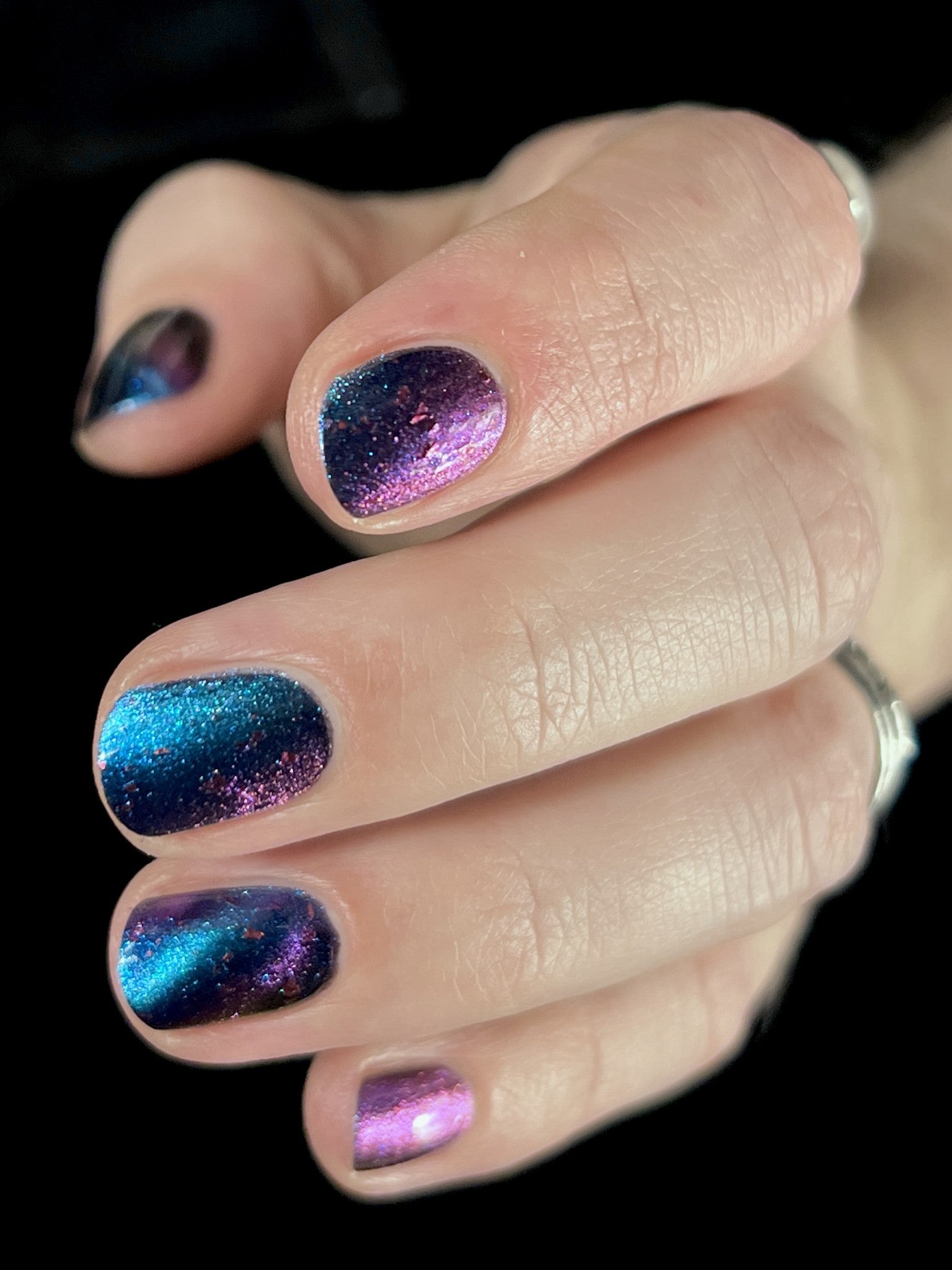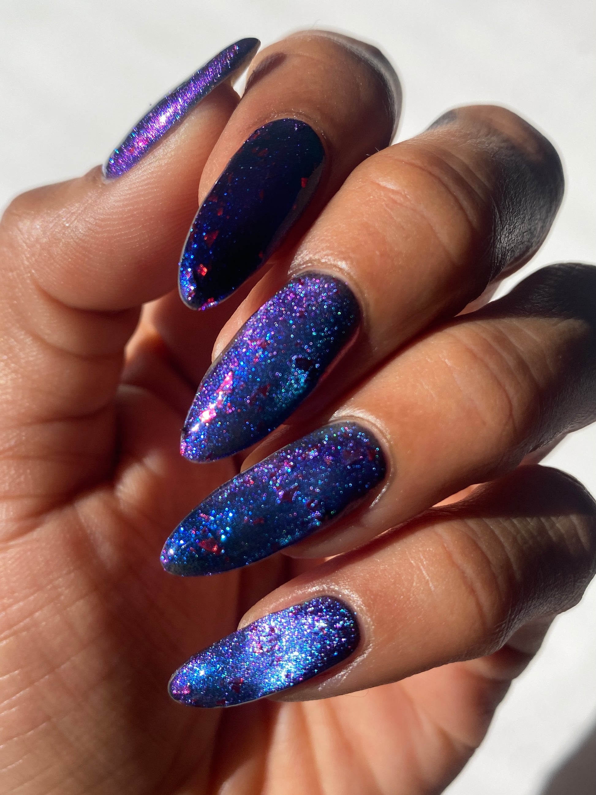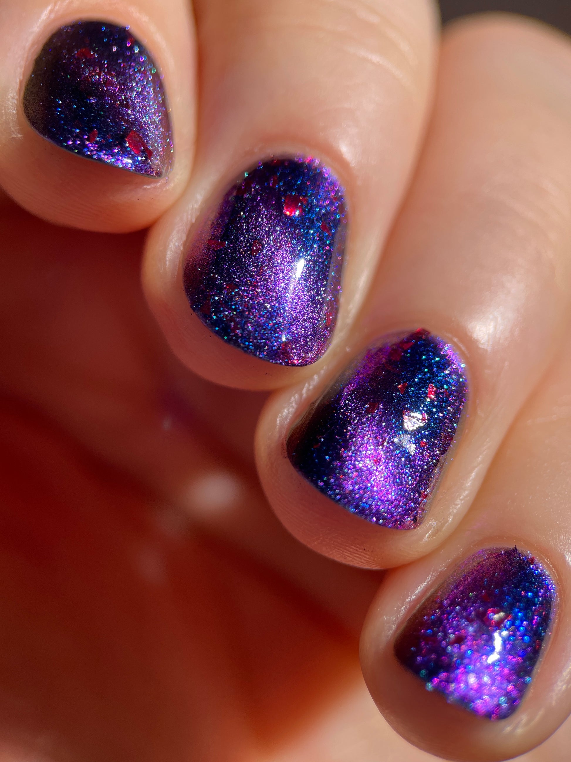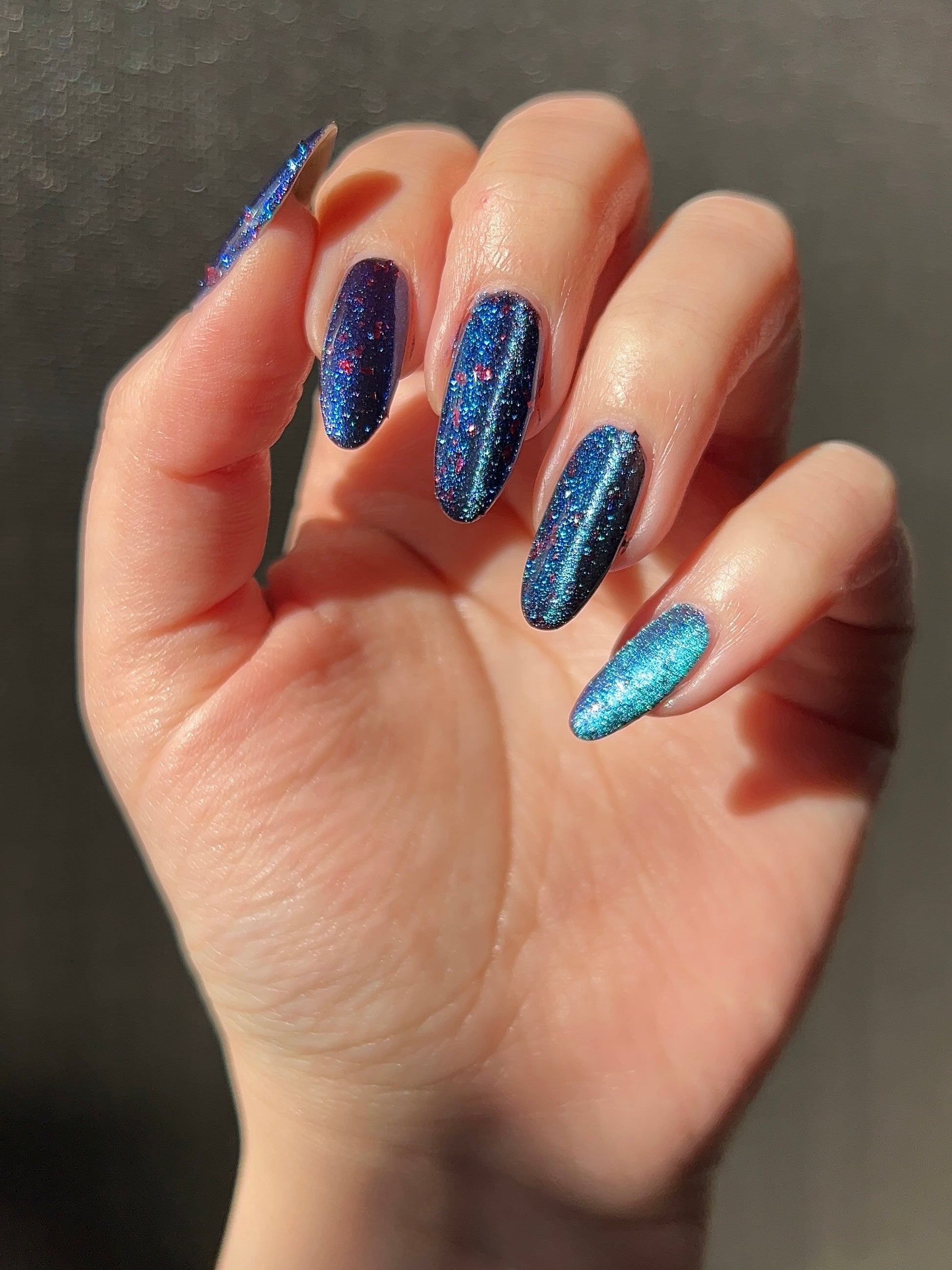 Head Above Water is a blue jelly that captures the quiet tension of relationships that never quite warm up. Inspired by the feeling of trying to stay afloat when it’s not you, it’s the weather. When your emotions are overwhelmed and your brain is flooded with thoughts. Cool blue magnetic pigments drift beneath the surface while sharp red shard glitters flash like warning signs you almost ignored. This shade mirrors the emotional chill of the isolation we sometimes find ourselves in and the strength it takes to keep your head above water anyway.