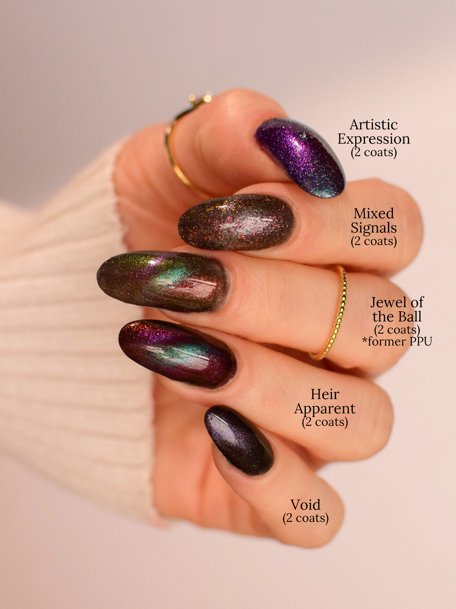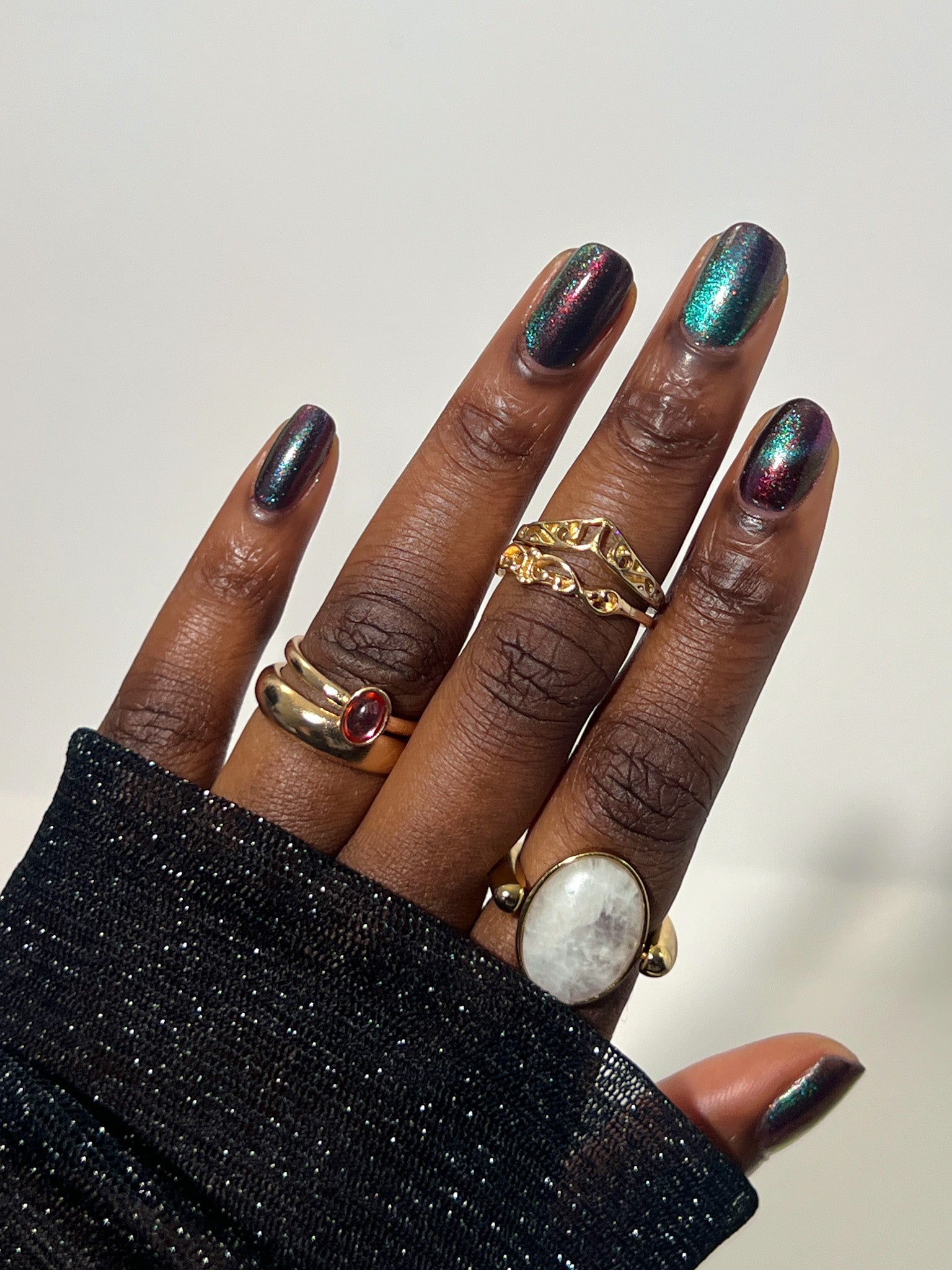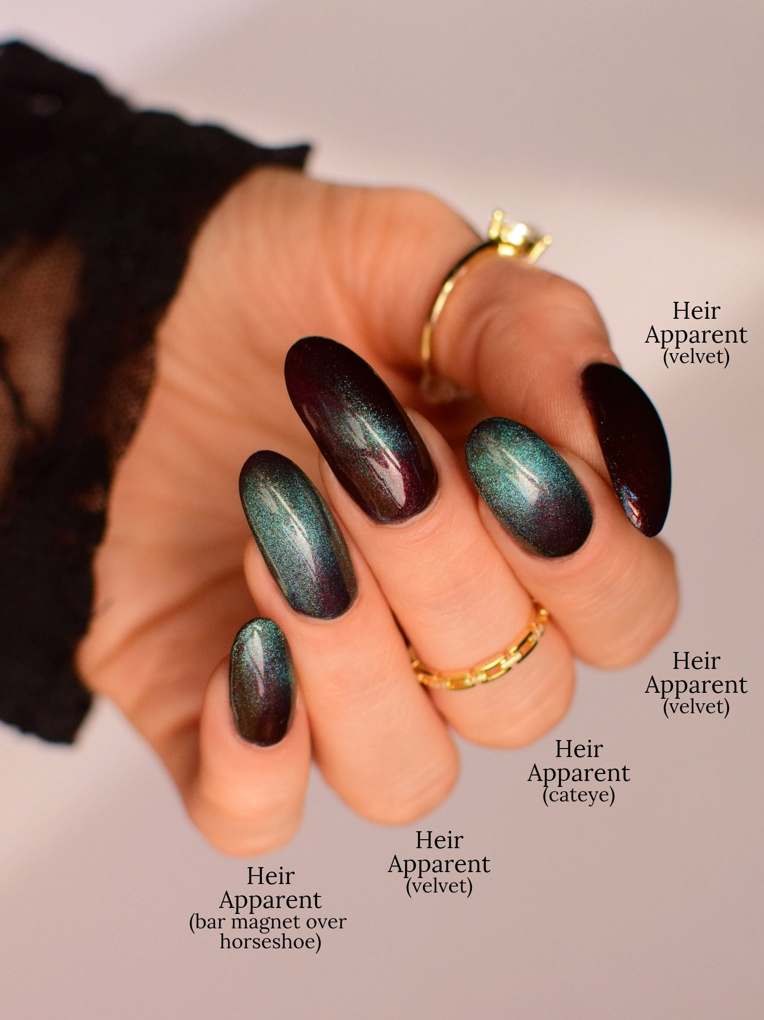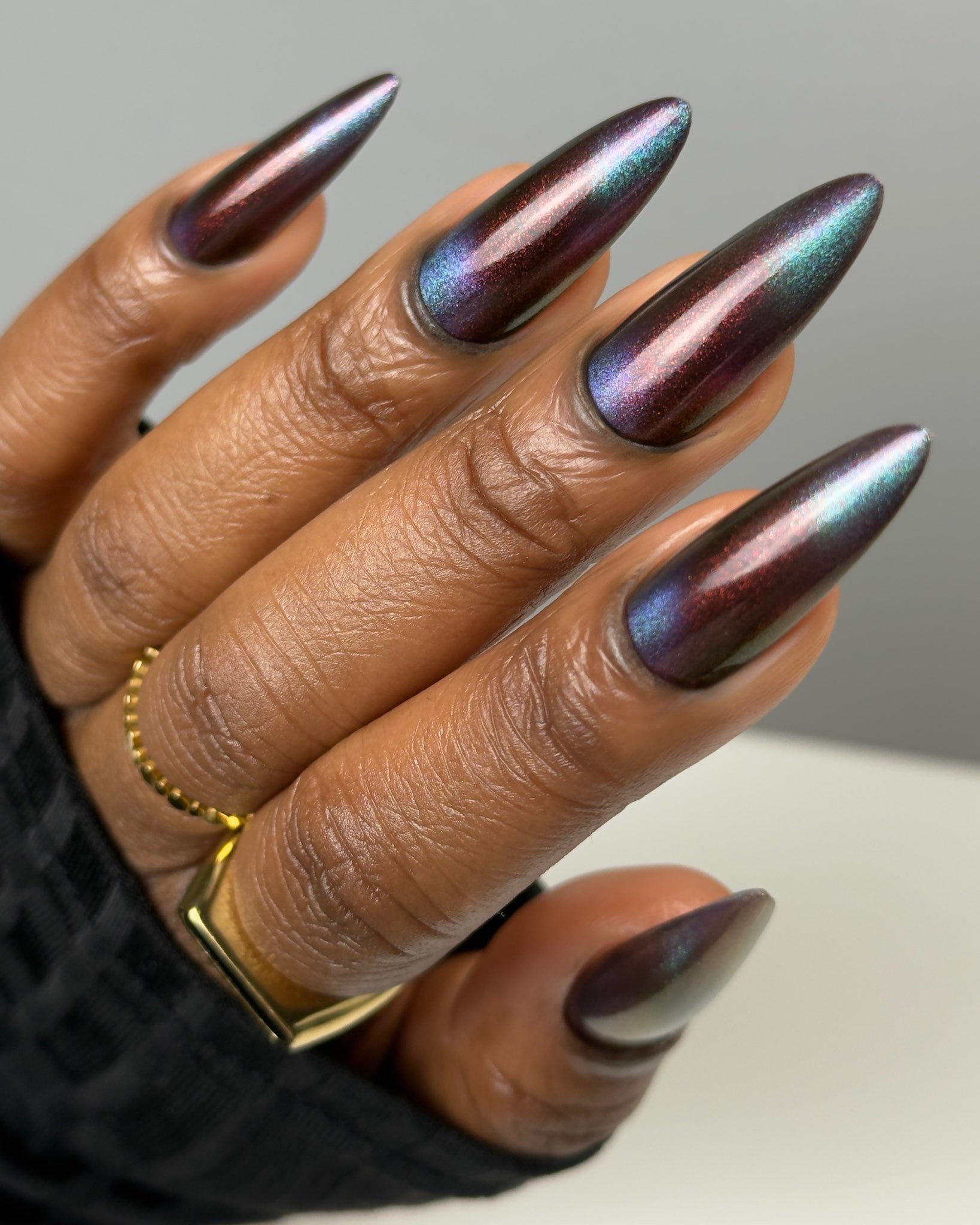 Our limited edition Jewel of the Ball turned heads. Heir Apparent is here to steal the spotlight. This rich red base glows with a regal shimmer, igniting under teal-to-purple magnetic pigments that shift like velvet curtains on a grand stage. A true showstopper, Heir Apparent is our crown jewel for Cracked Polish’s 2nd anniversary because we had to go all out for this milestone. Drenched in luxury, dripping in drama, and designed to reign supreme in your collection, this is the shade you’ll reach for when only the most powerful polish will do.