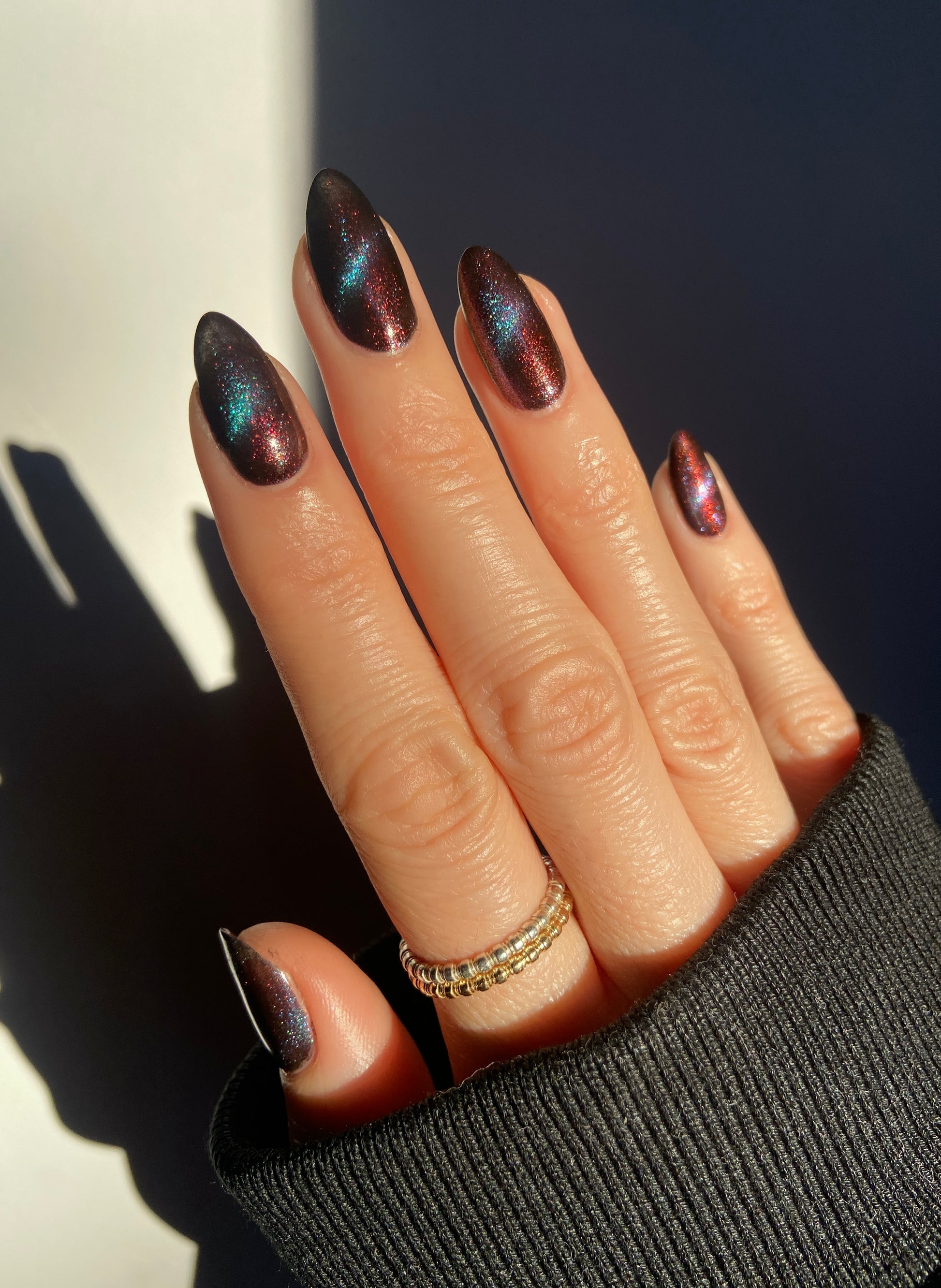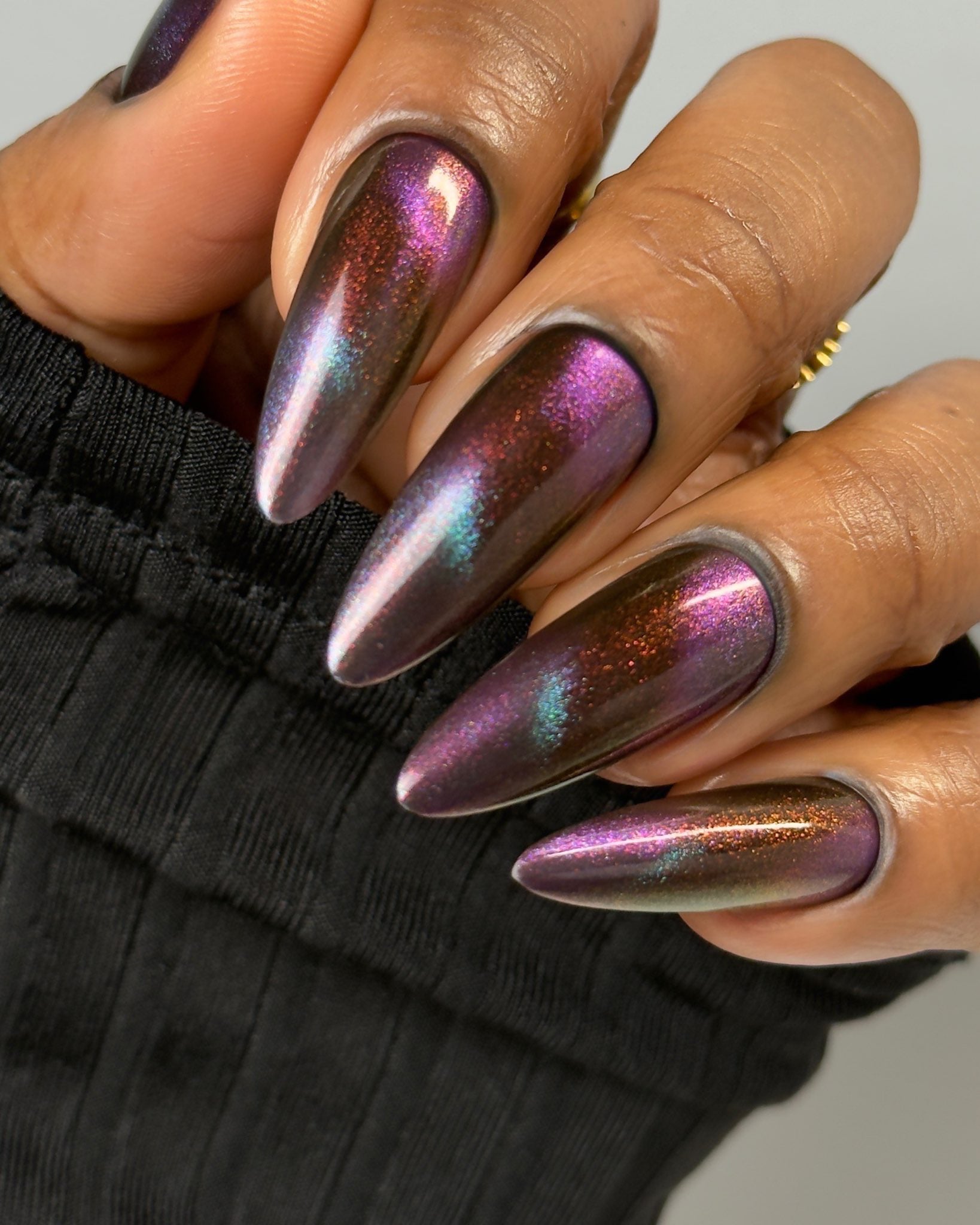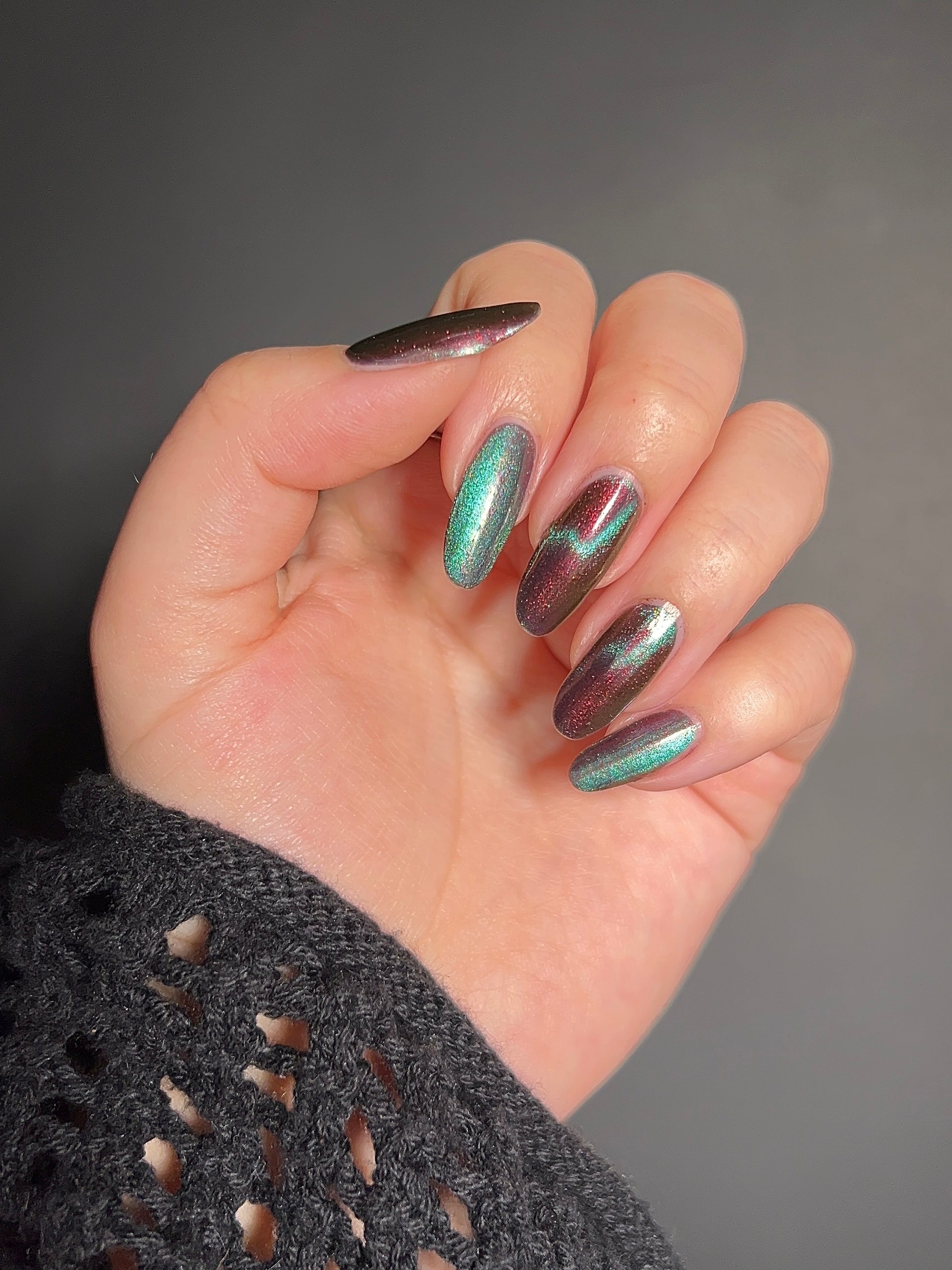 A beautiful multichrome magnetic! Lovely contrast. I will have to try this shade again in a cat eye style.