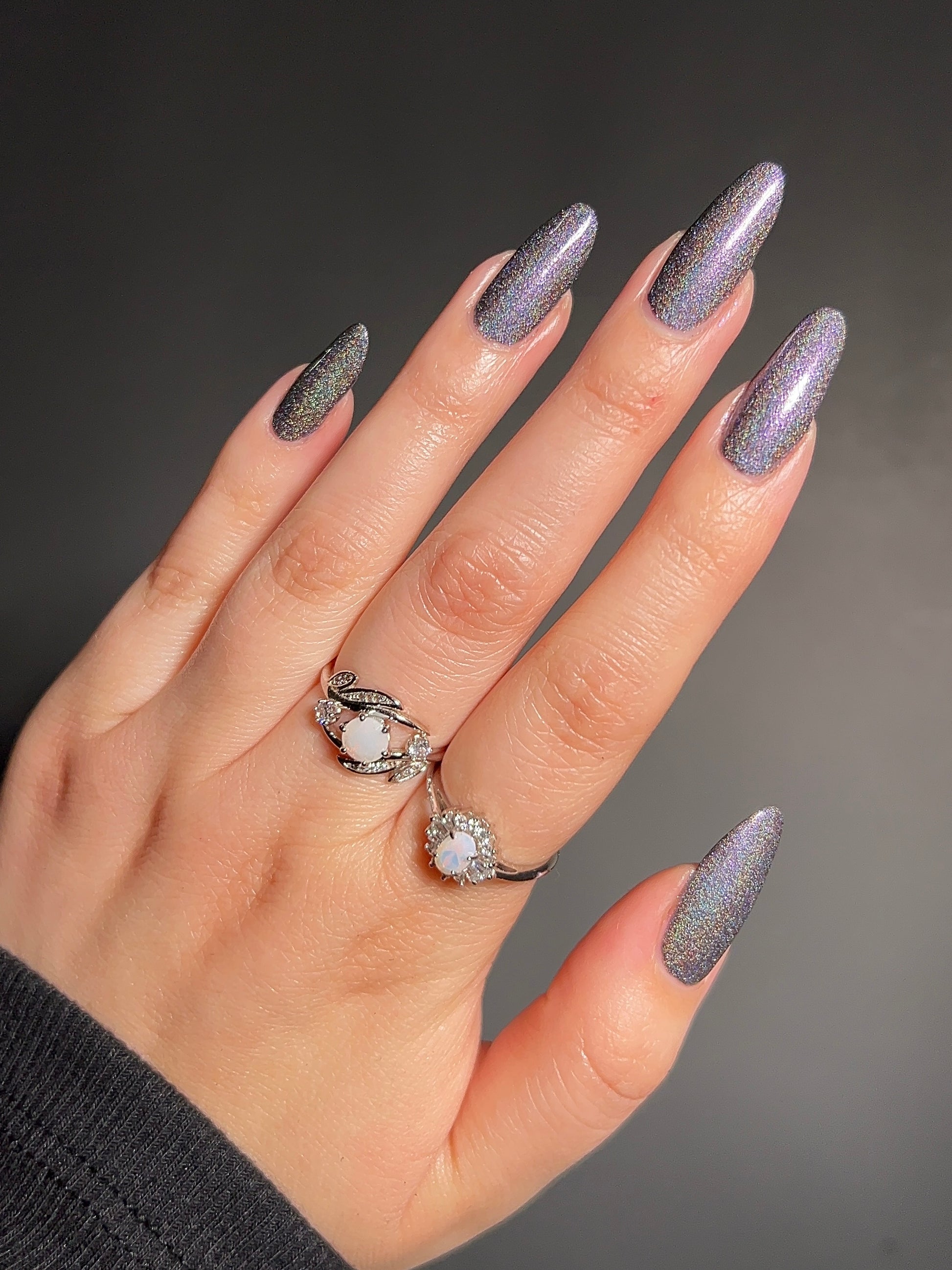 It Must Be Magic is a gorgeous deep purple/gray with a special hint of holographic pigments flaring throughout. Sometimes the affirmations we put out there fall perfectly into place. Believing is half the magic. A feeling so strong it feels supernatural.