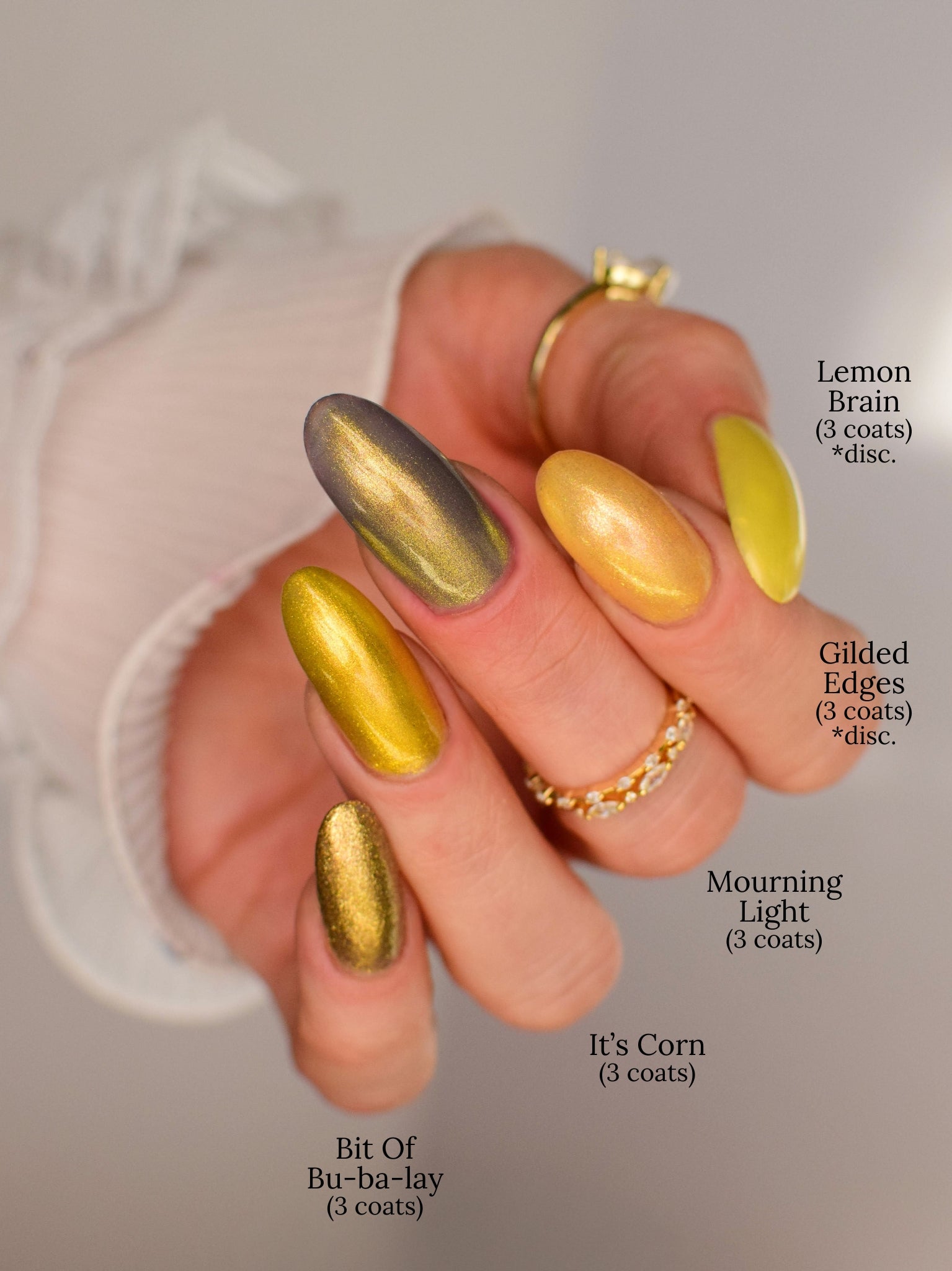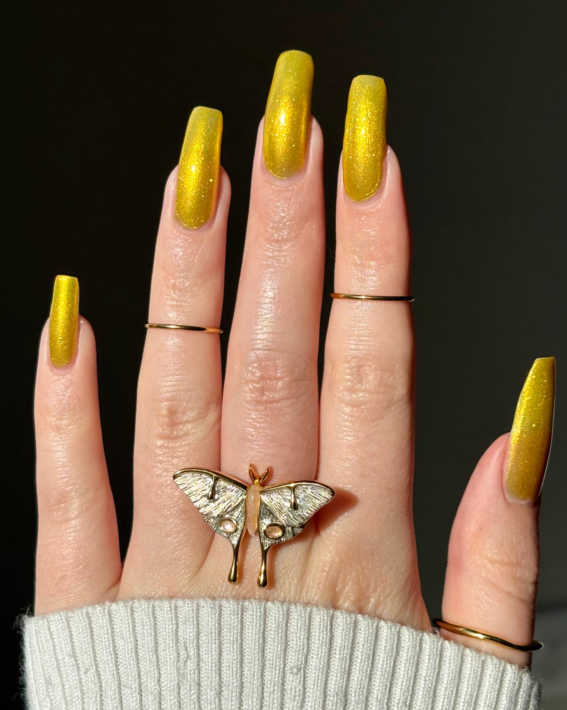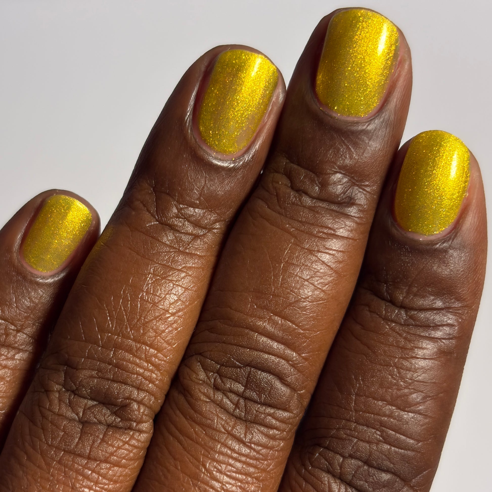 It’s Corn! is a sunshiney yellow jelly overflowing with golden shimmer and radiant warmth. It’s my love letter to the often underrated color in polish. Bold, joyful, and an impossible to ignore glow. You can't deny there is something so joyful about this color. It just makes you smile.