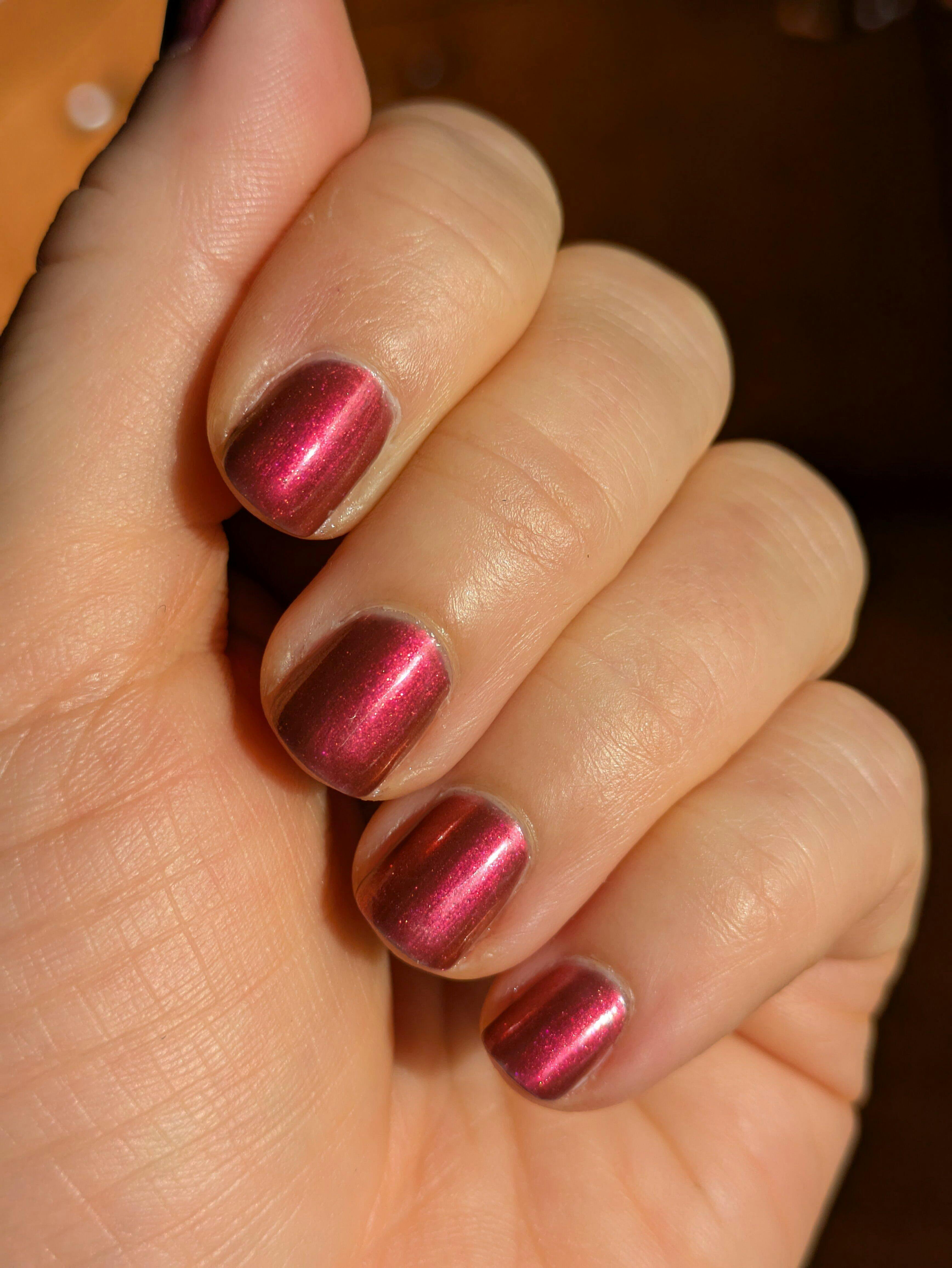This is a really lovely and unique shade of red. Has a bit of a coppery undertone in low light. Can’t wait to see it in the sun if it clears up here in time. Applied very smoothly and dried quickly. It was pretty good coverage in two coats on short nails but I went with a third to get the full effect. So glad I picked this one up and I love that it supports a good cause.