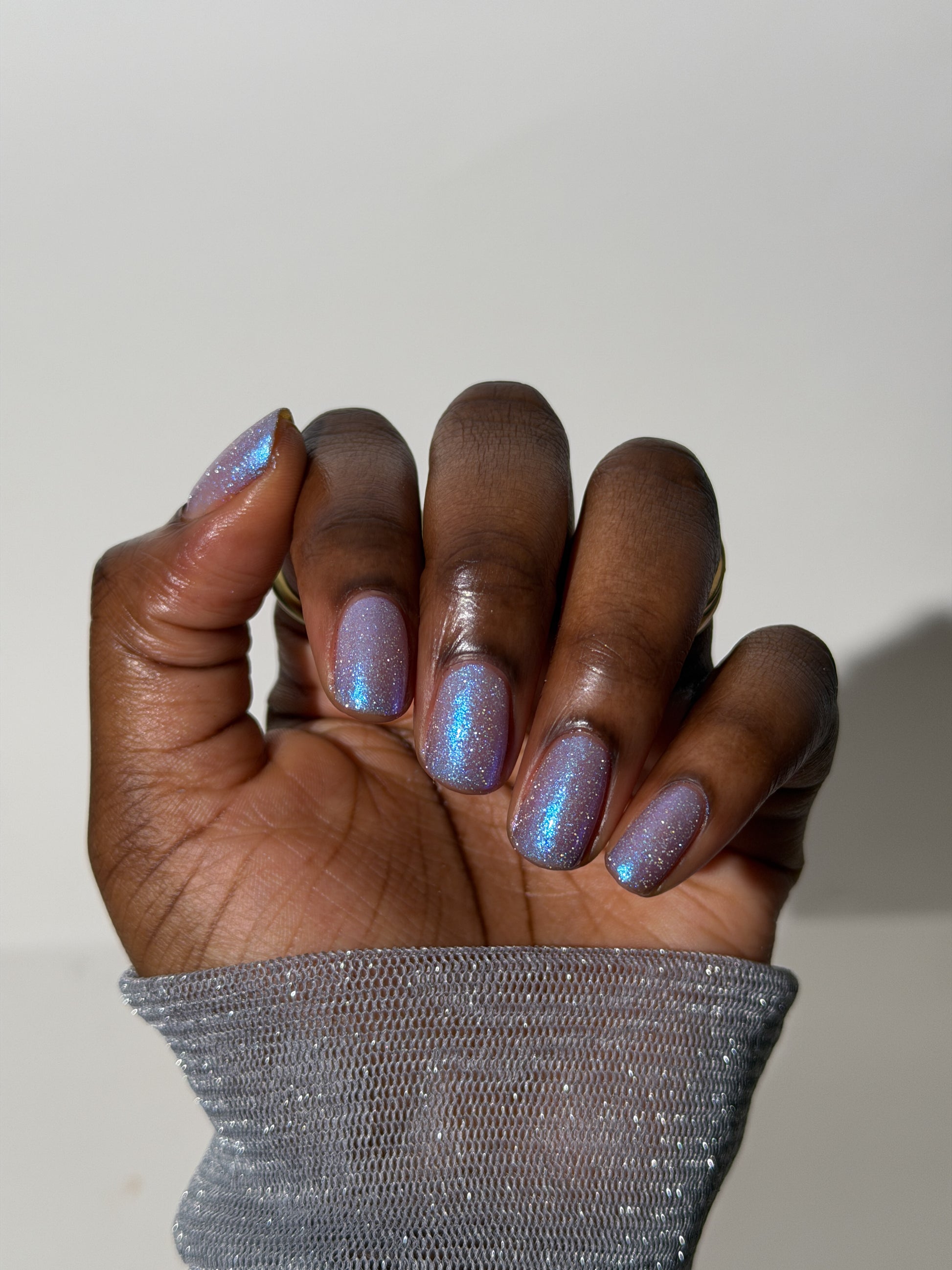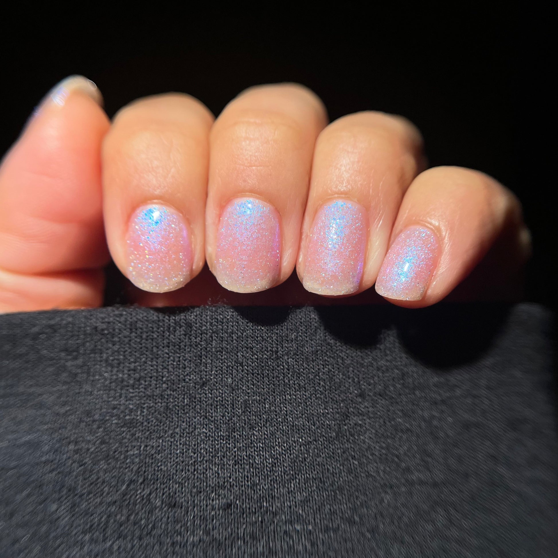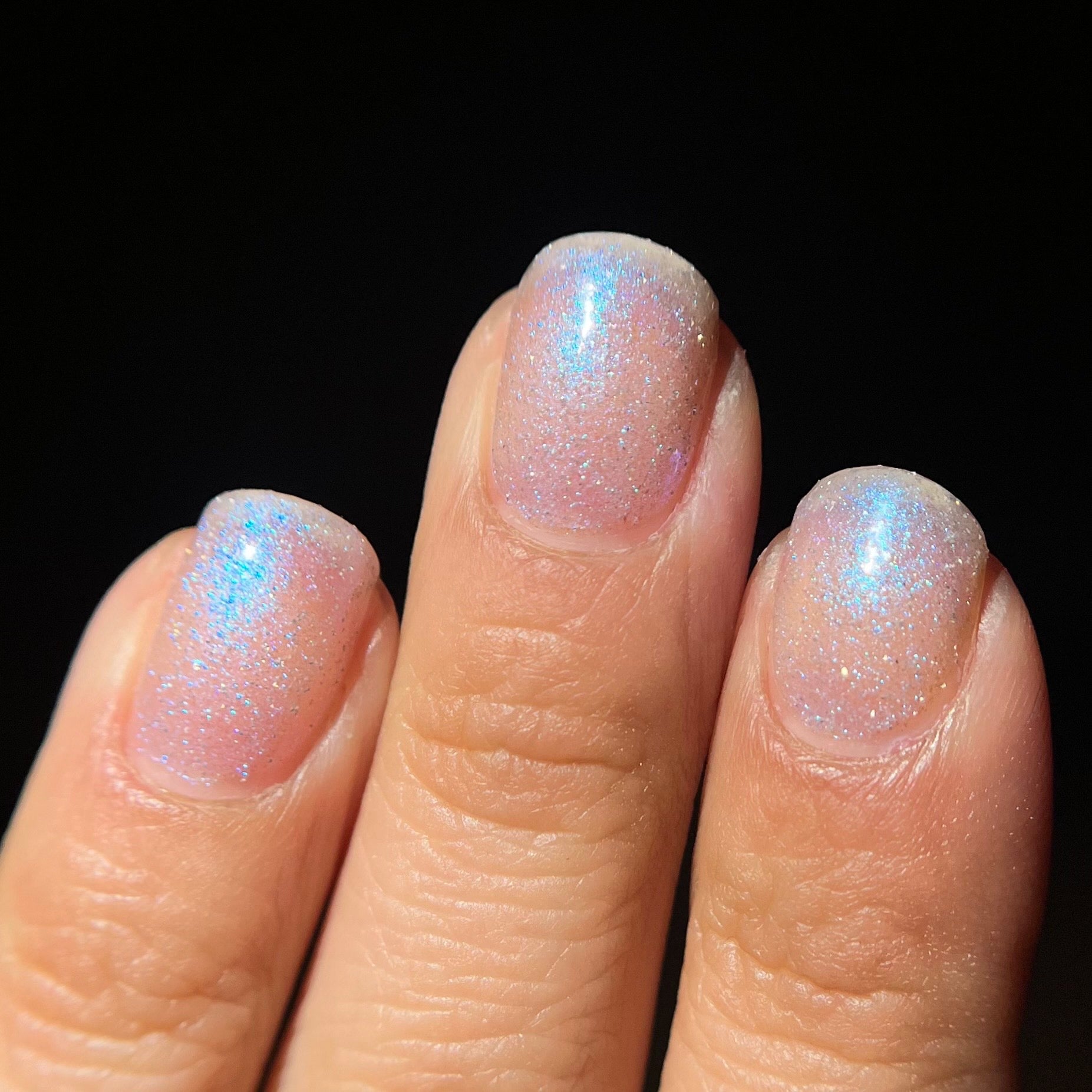 Mind Like A Diamond is going to be a fan favorite. Something about a blue shimmer, the cronies just love! It is a sheer blue with blue shimmers with silver reflective glitters. A mind like a diamond is sharp, resilient, and strong. Unbreakable in strength.