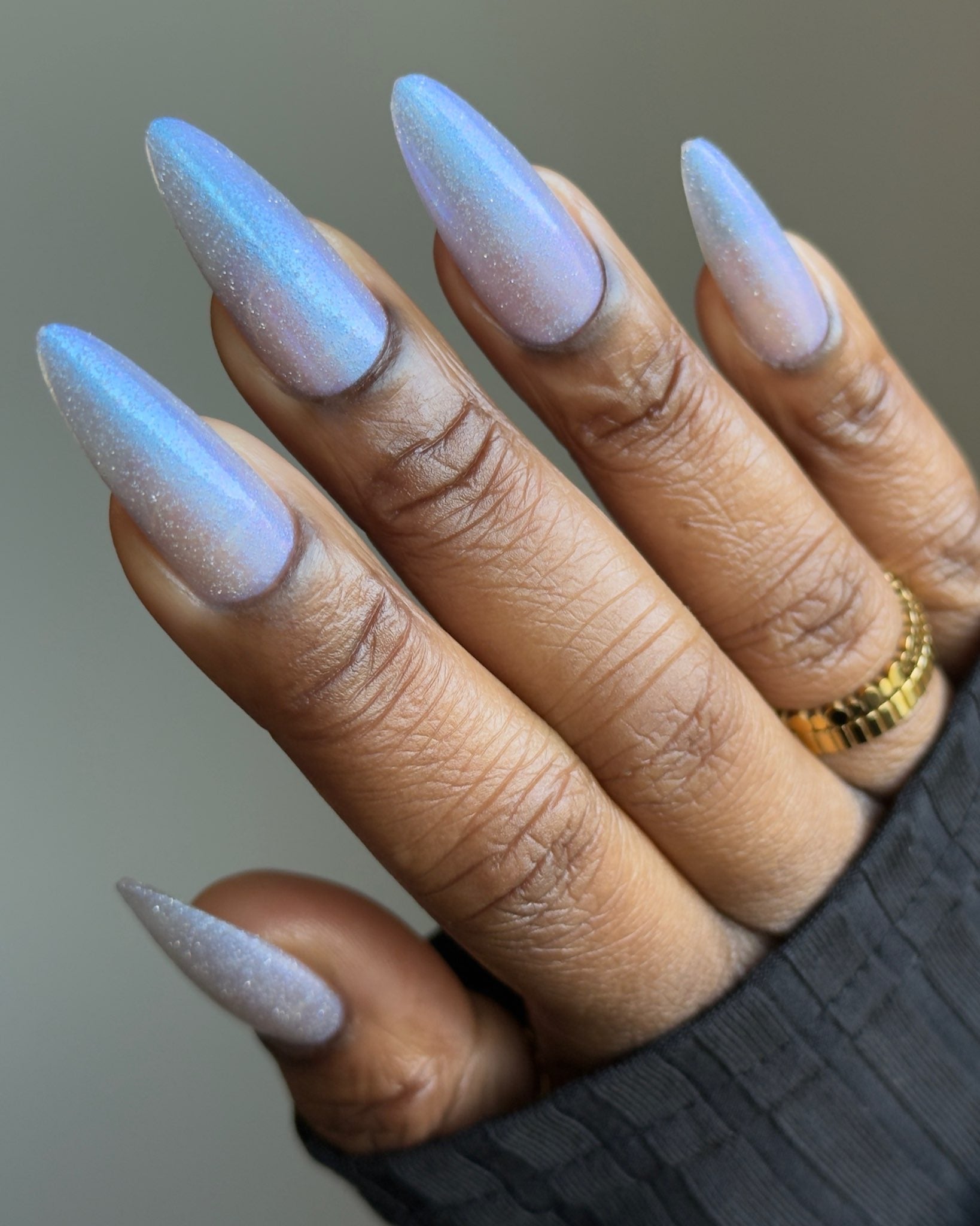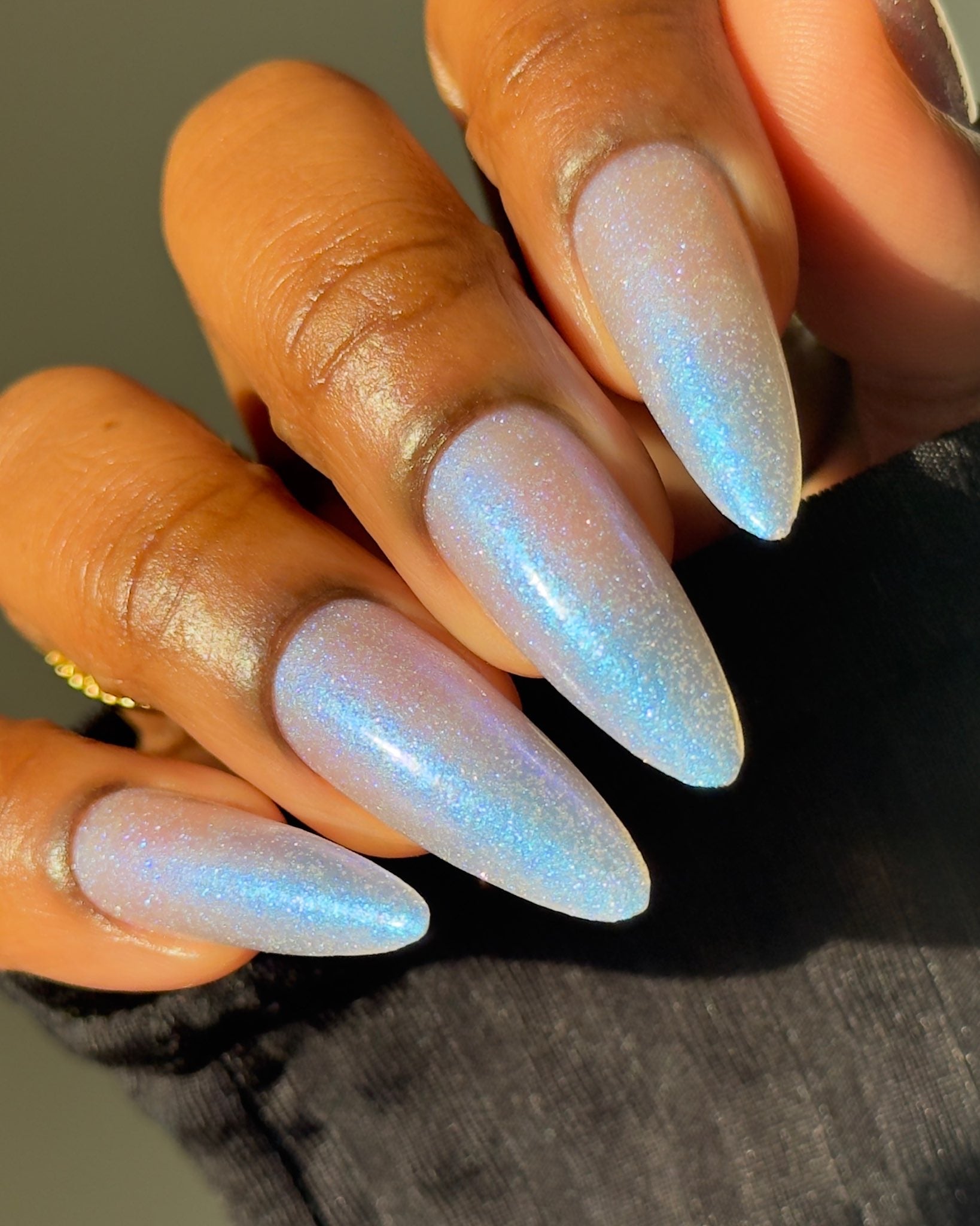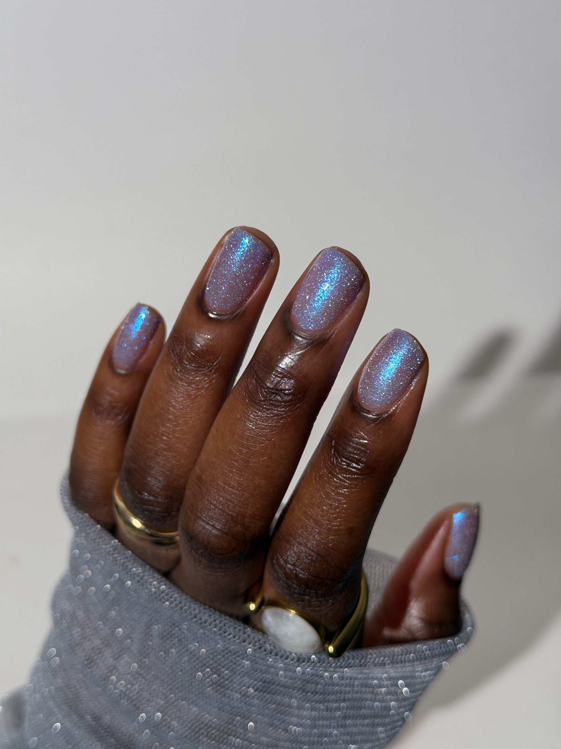 Mind Like A Diamond is going to be a fan favorite. Something about a blue shimmer, the cronies just love! It is a sheer blue with blue shimmers with silver reflective glitters. A mind like a diamond is sharp, resilient, and strong. Unbreakable in strength.
