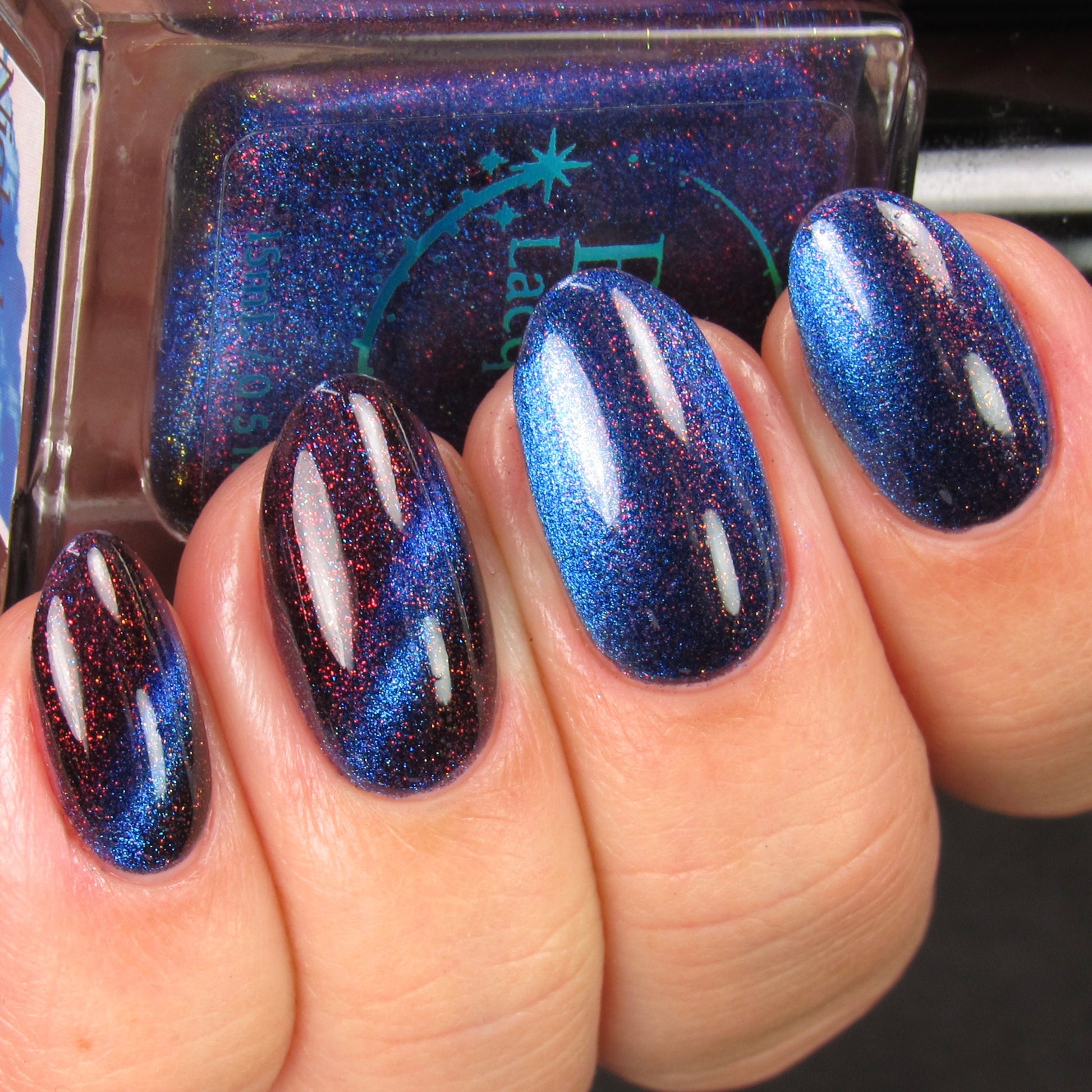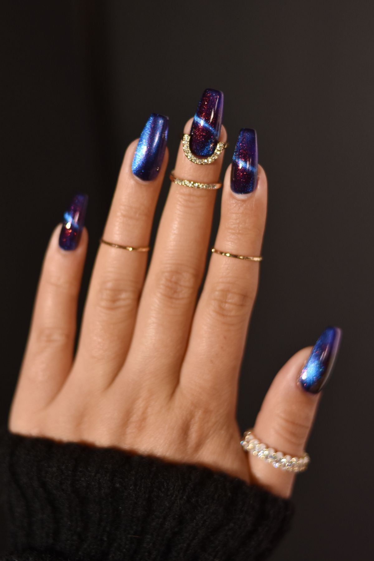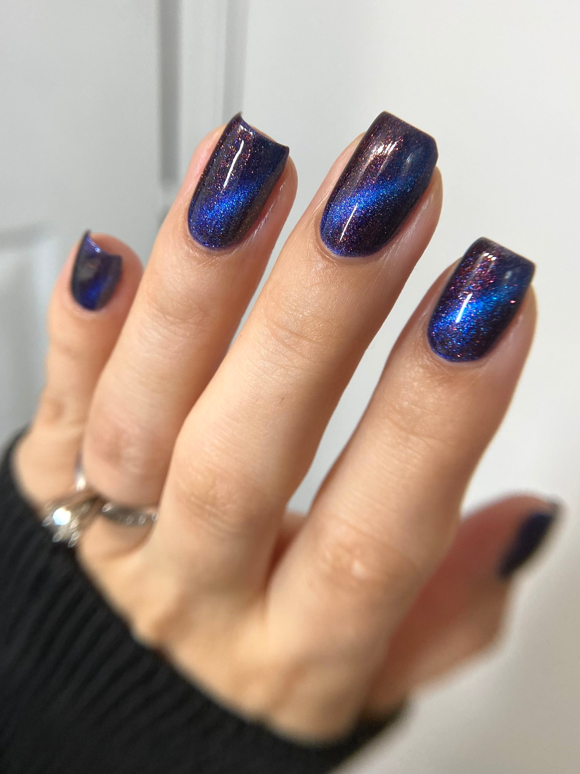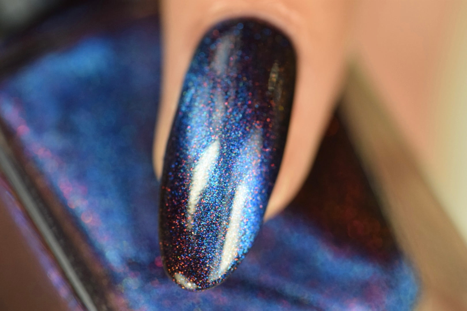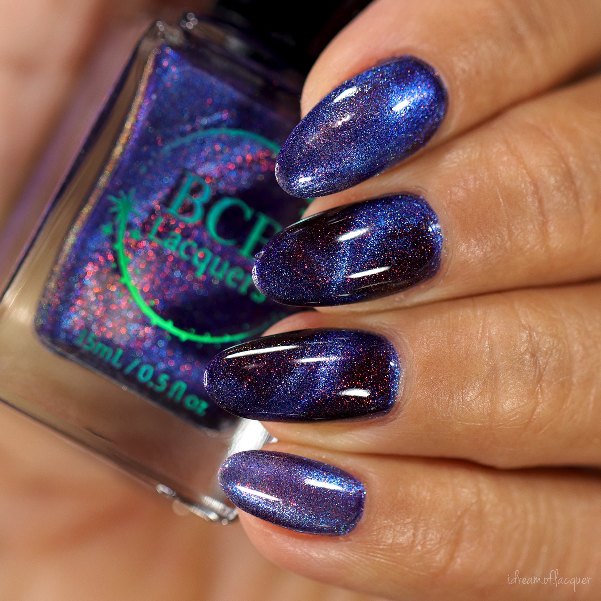 Nightshade by BCB Lacquer is a spellbinding addition to The Coven Trio, brewed for those who prefer their magic a little darker. A deep purple base sets the stage while a blue to purple multichrome magnetic pull shifts and bends with the light, creating a hypnotic, otherworldly effect. Threads of red, orange, gold, and green shifting shimmer weave through the shade, giving it an unmistakable spooky Halloween undertone.