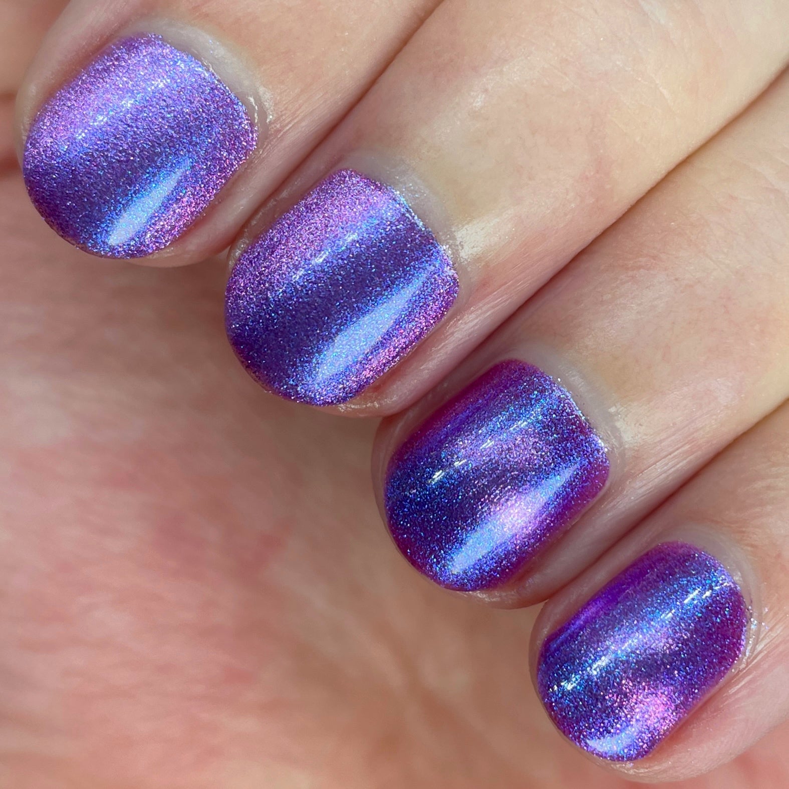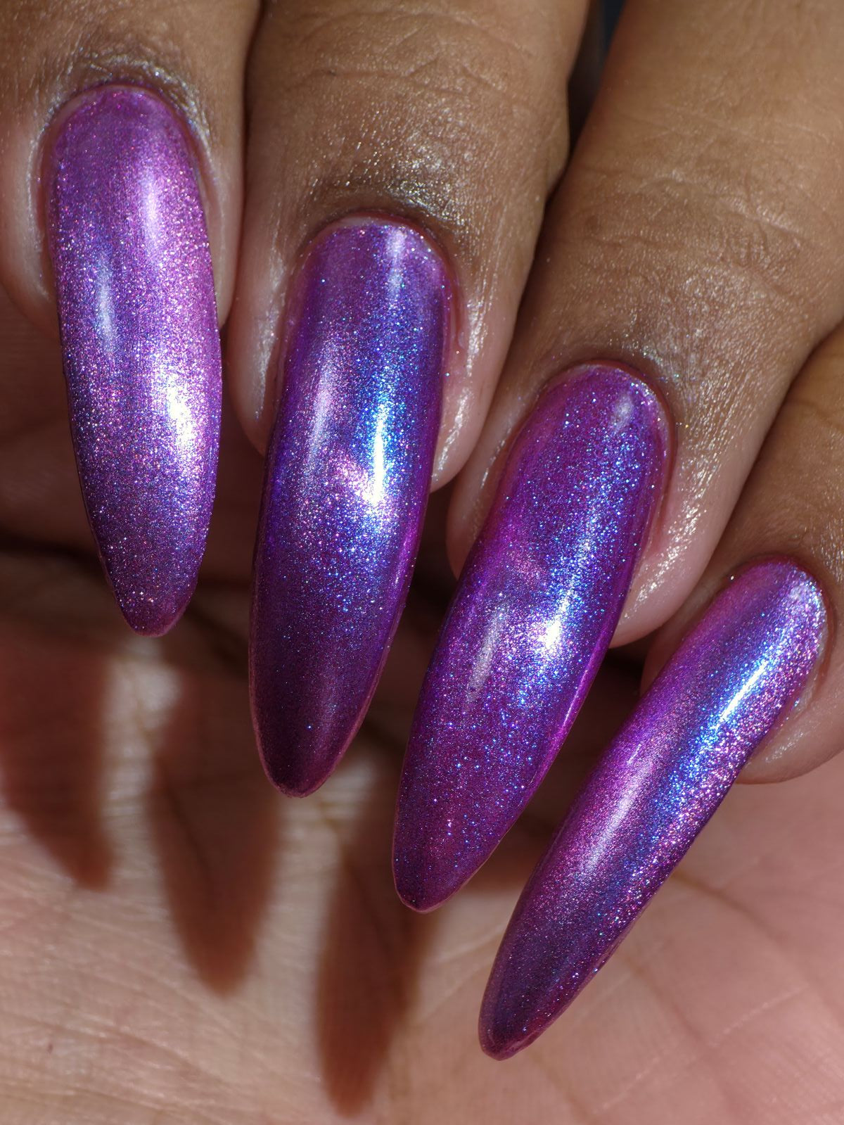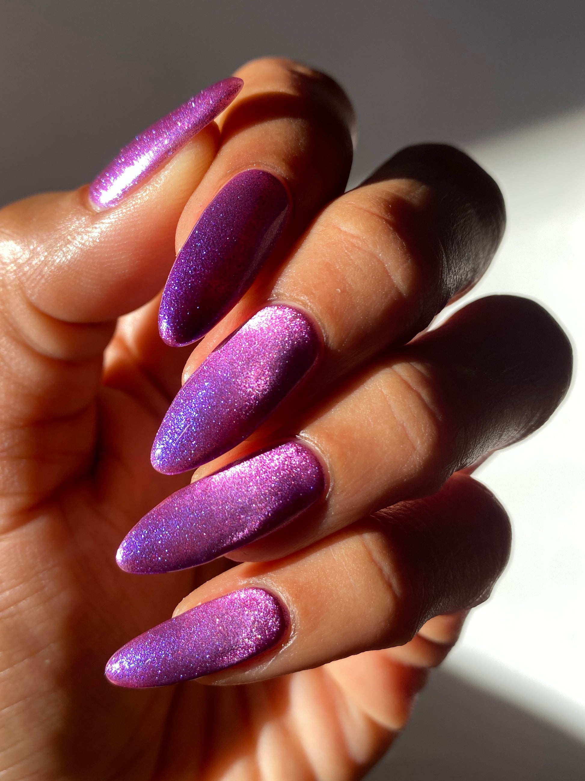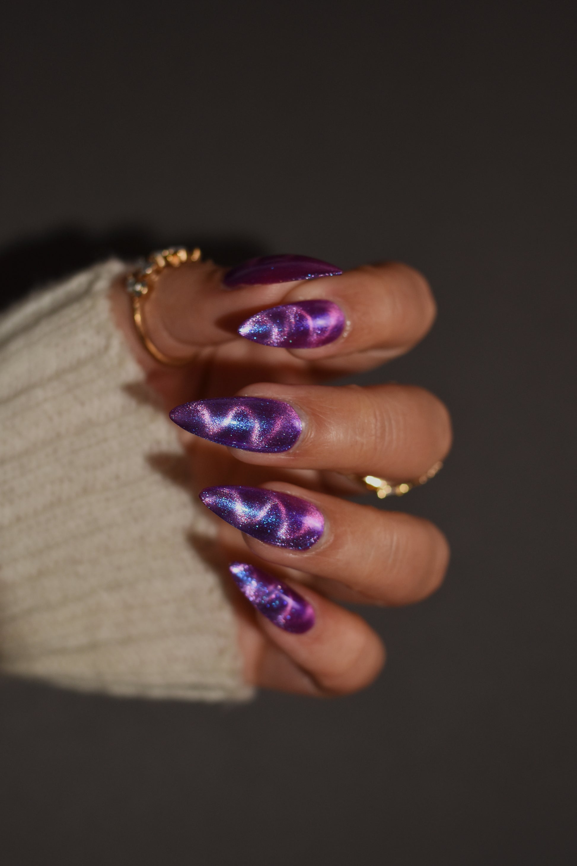No Reservations is a blurple base lit up with glowing blue aurora shimmers and soft pink magnetic pigments that shift and flirt with the light. Inspired by that all-too-familiar moment of walking into a restaurant starving, only to find it completely jam packed. This shade is a little chaotic, a little dramatic, and totally relatable. The cool blue glow and warm pink pull create a push-and-pull effect on the nails that feels spontaneous and unplanned, but somehow still works beautifully. A reminder that even when you should’ve planned better, things can still turn out pretty great.