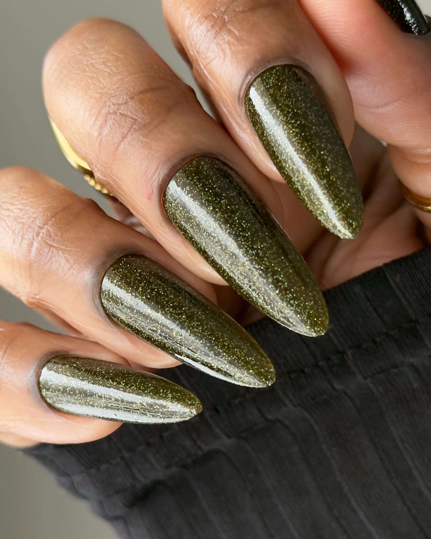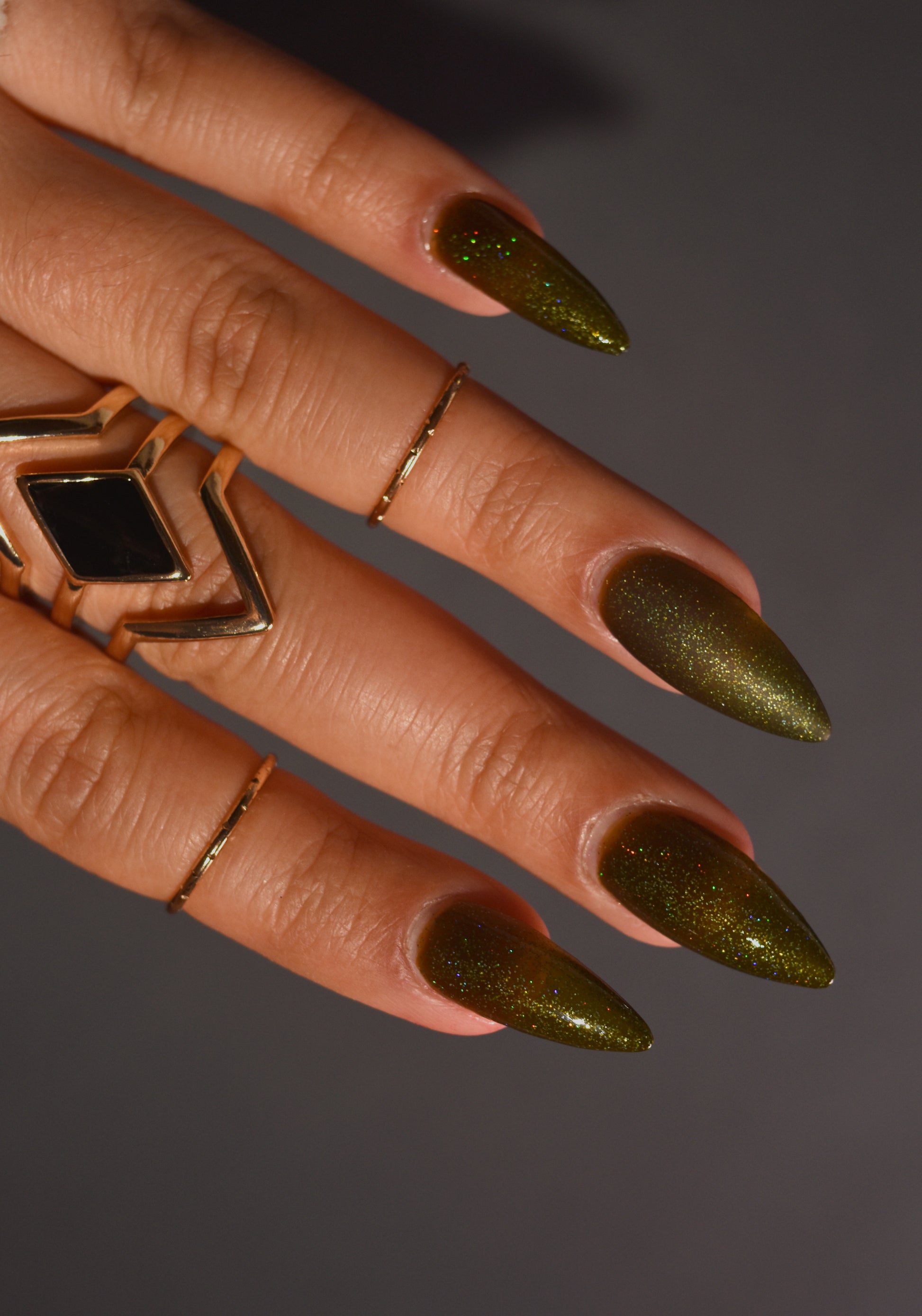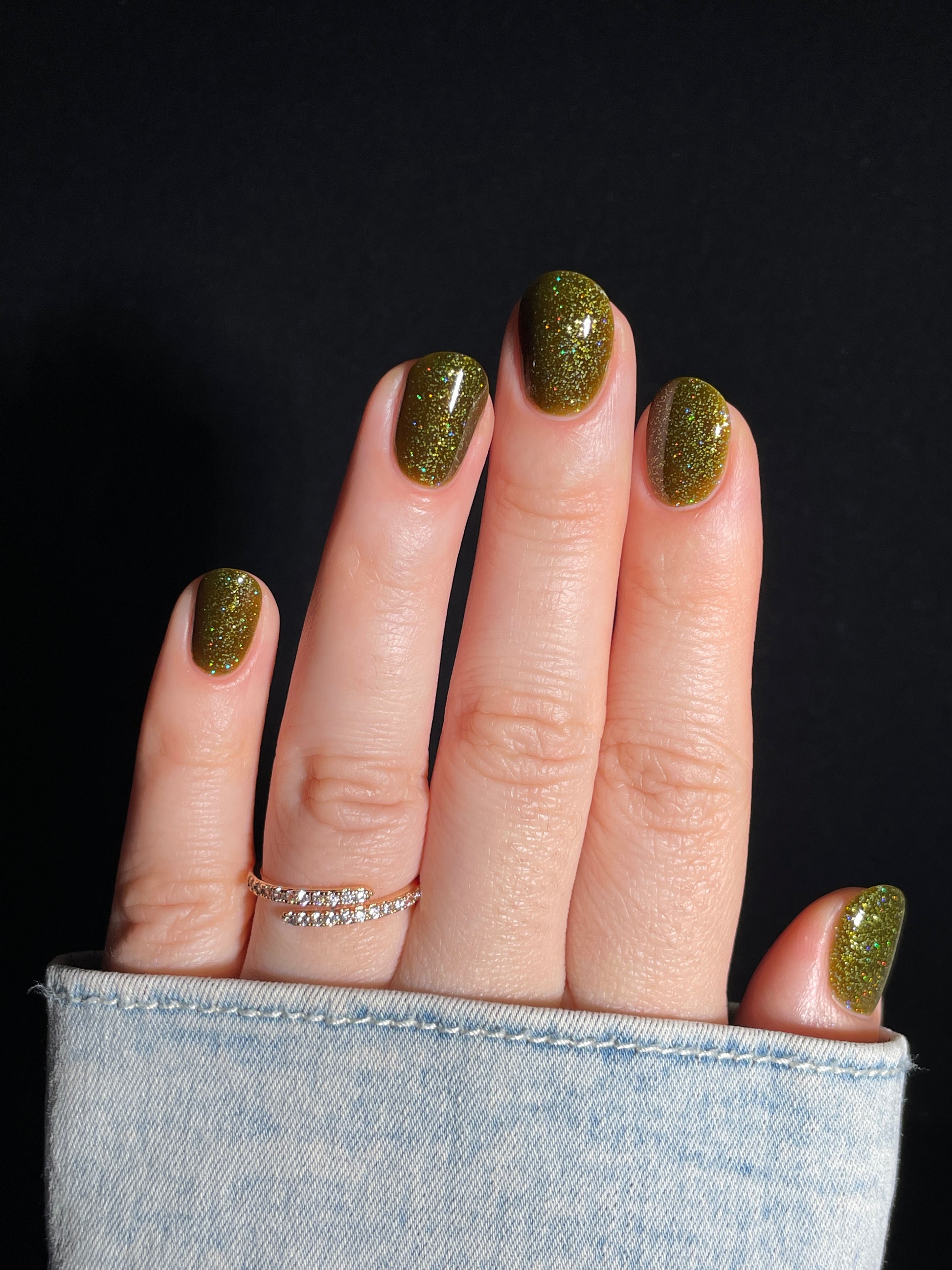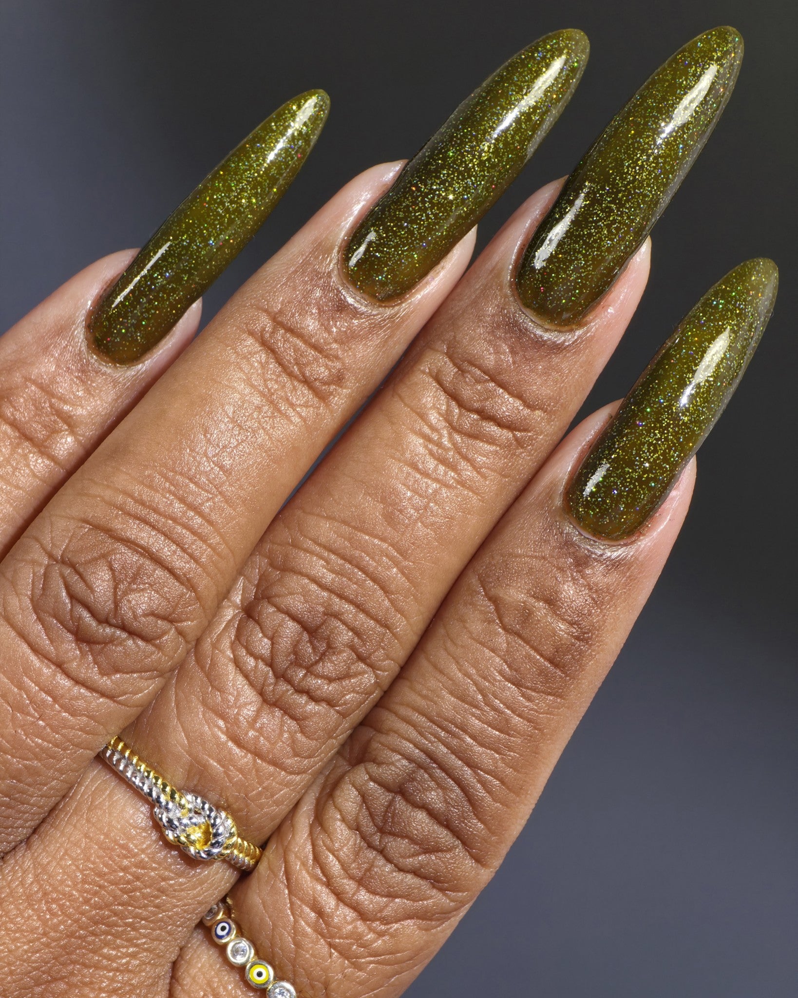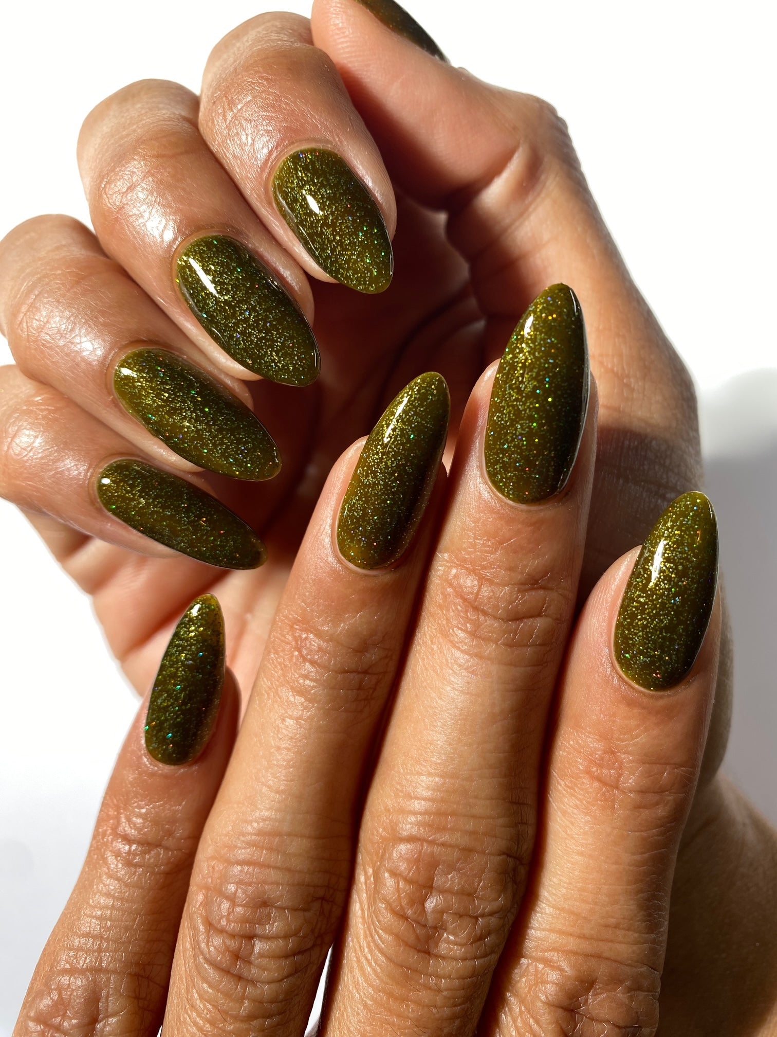 That one song you just can't get out of your head and play On Repeat again and again. This olive green jelly pulls you in the same way, layered with green holographic dancing glitters like a chorus you can’t shake. Our jelly glitters are a little addictive, and endlessly wearable, especially if green is your comfort color like it is our founders. This is the kind of shade you reach for without thinking, because it just feels right every single time.