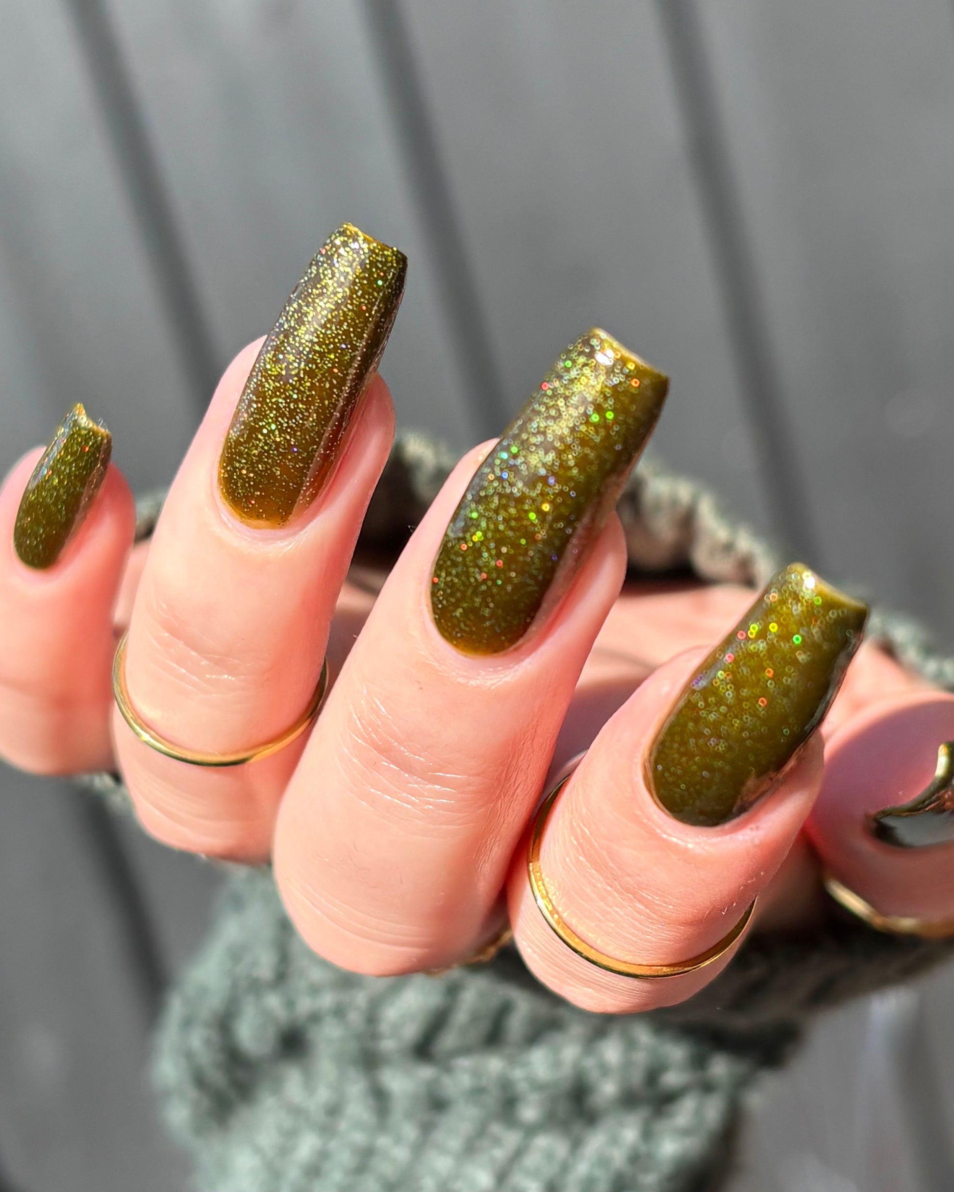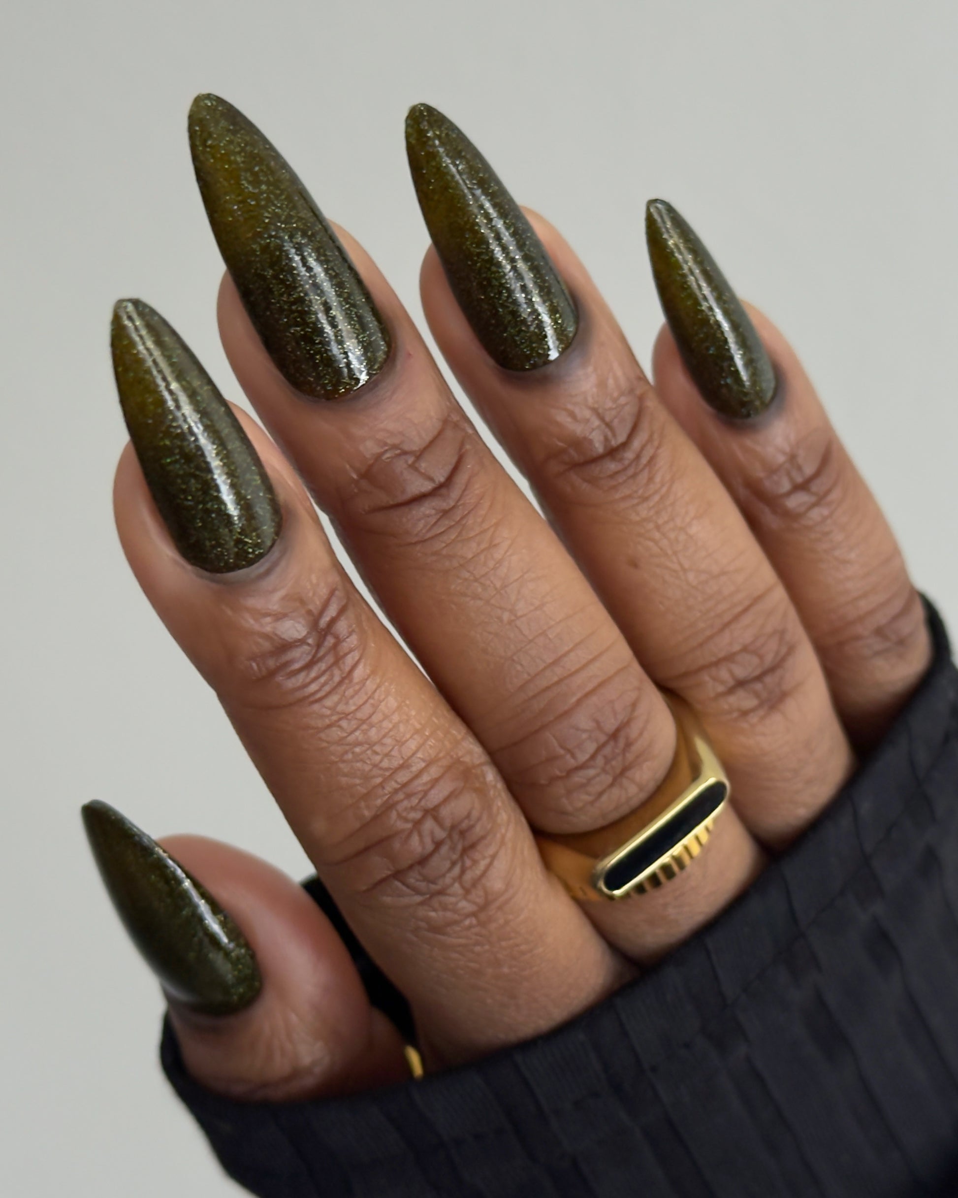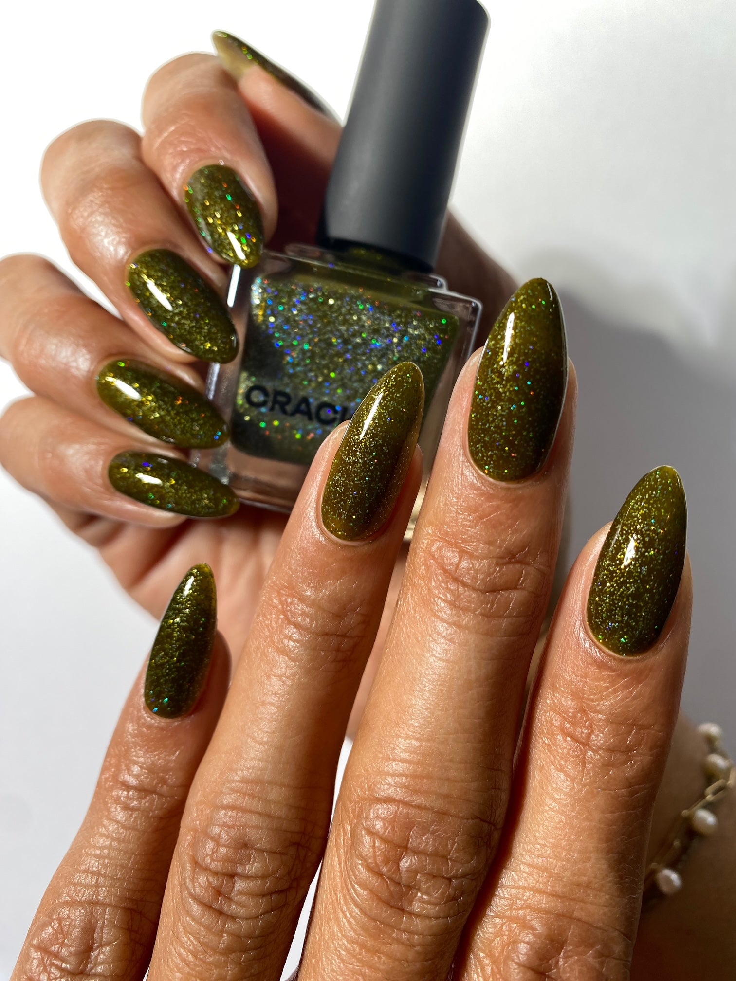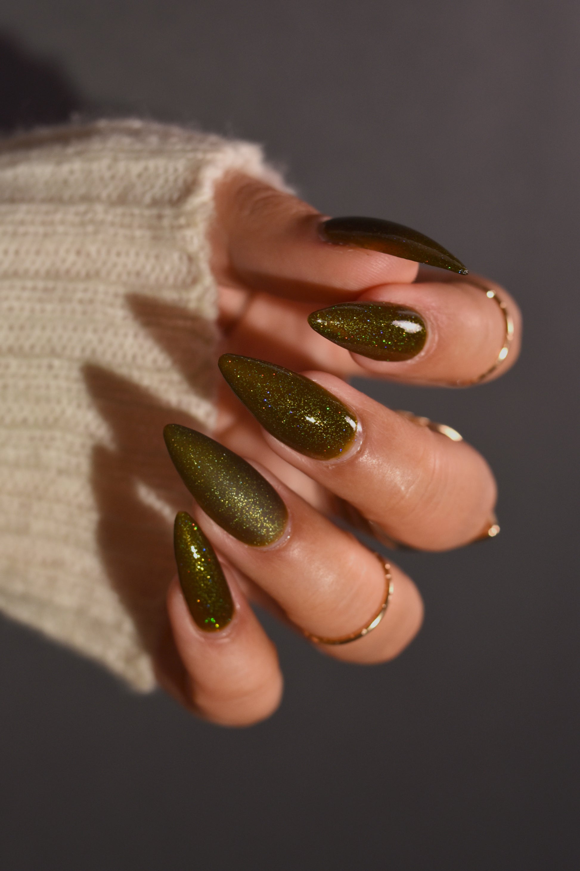 That one song you just can't get out of your head and play On Repeat again and again. This olive green jelly pulls you in the same way, layered with green holographic dancing glitters like a chorus you can’t shake. Our jelly glitters are a little addictive, and endlessly wearable, especially if green is your comfort color like it is our founders. This is the kind of shade you reach for without thinking, because it just feels right every single time.