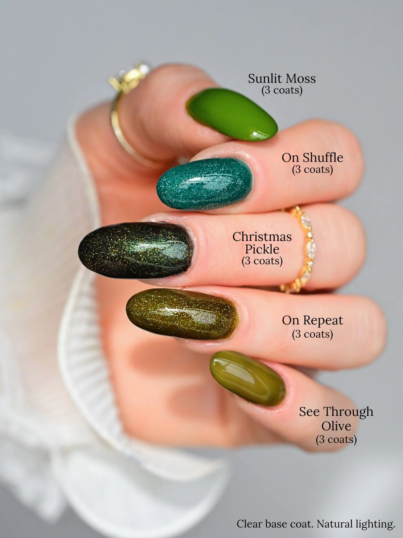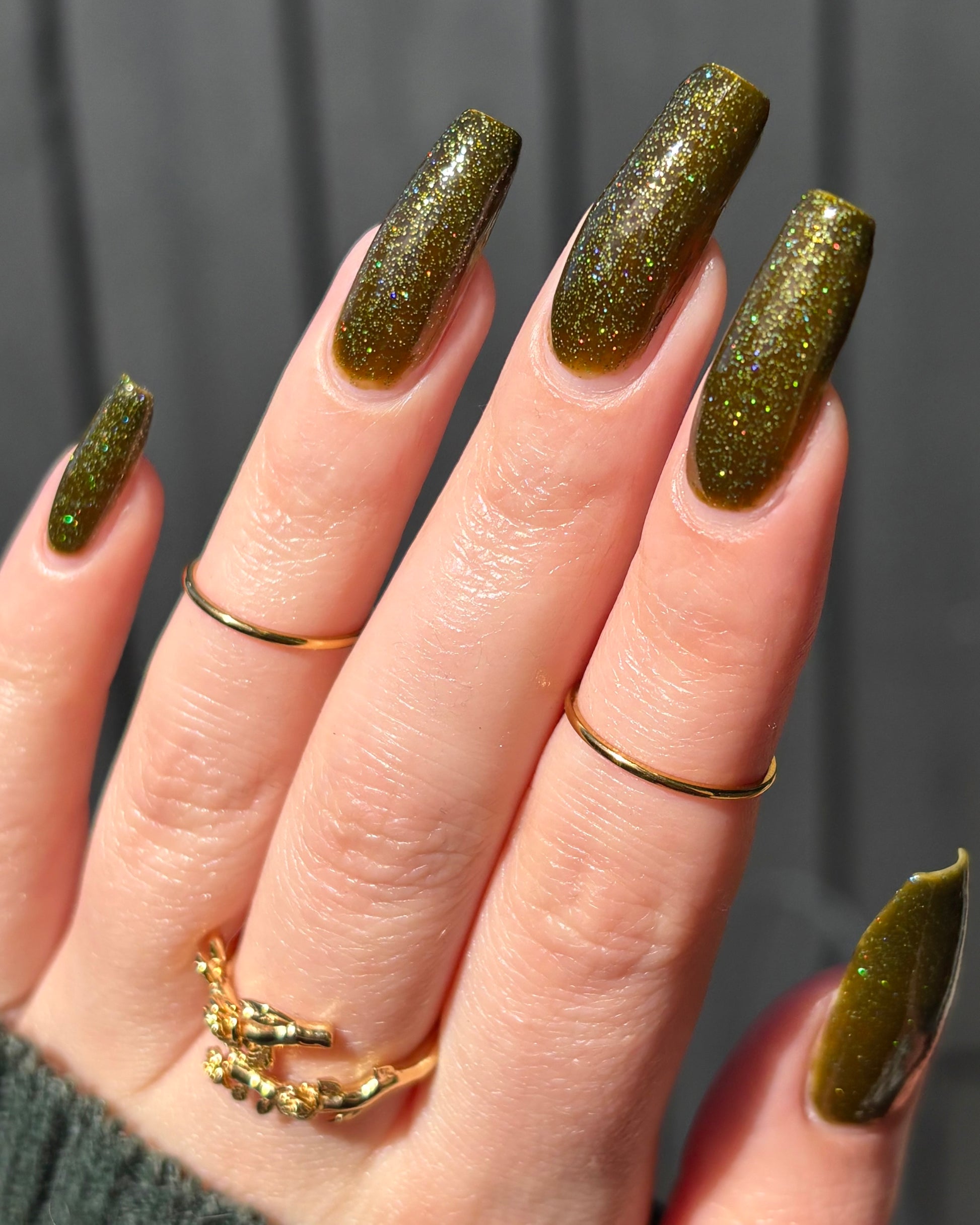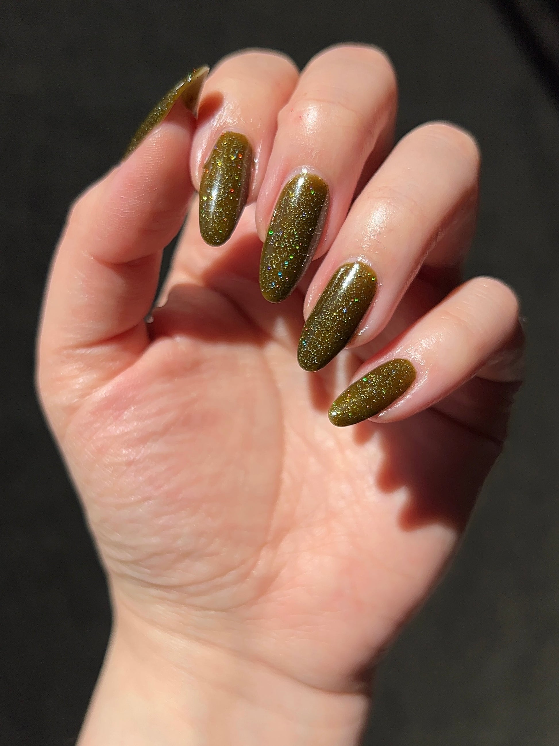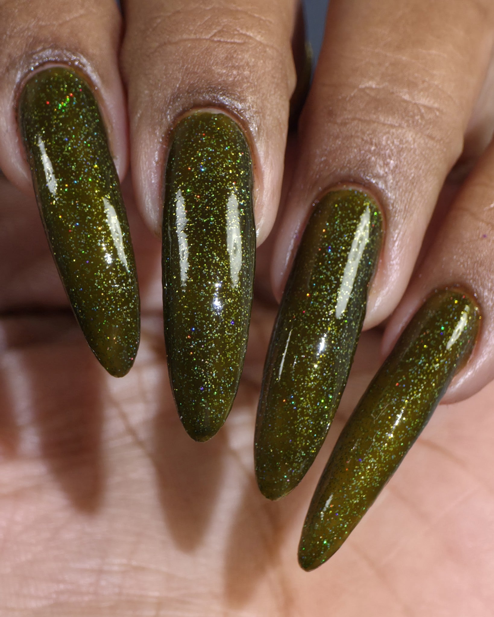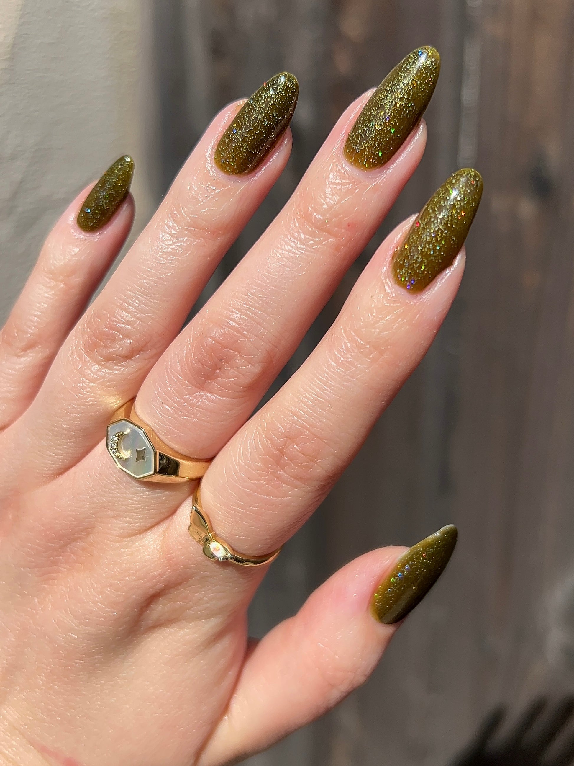 That one song you just can't get out of your head and play On Repeat again and again. This olive green jelly pulls you in the same way, layered with green holographic dancing glitters like a chorus you can’t shake. Our jelly glitters are a little addictive, and endlessly wearable, especially if green is your comfort color like it is our founders. This is the kind of shade you reach for without thinking, because it just feels right every single time.