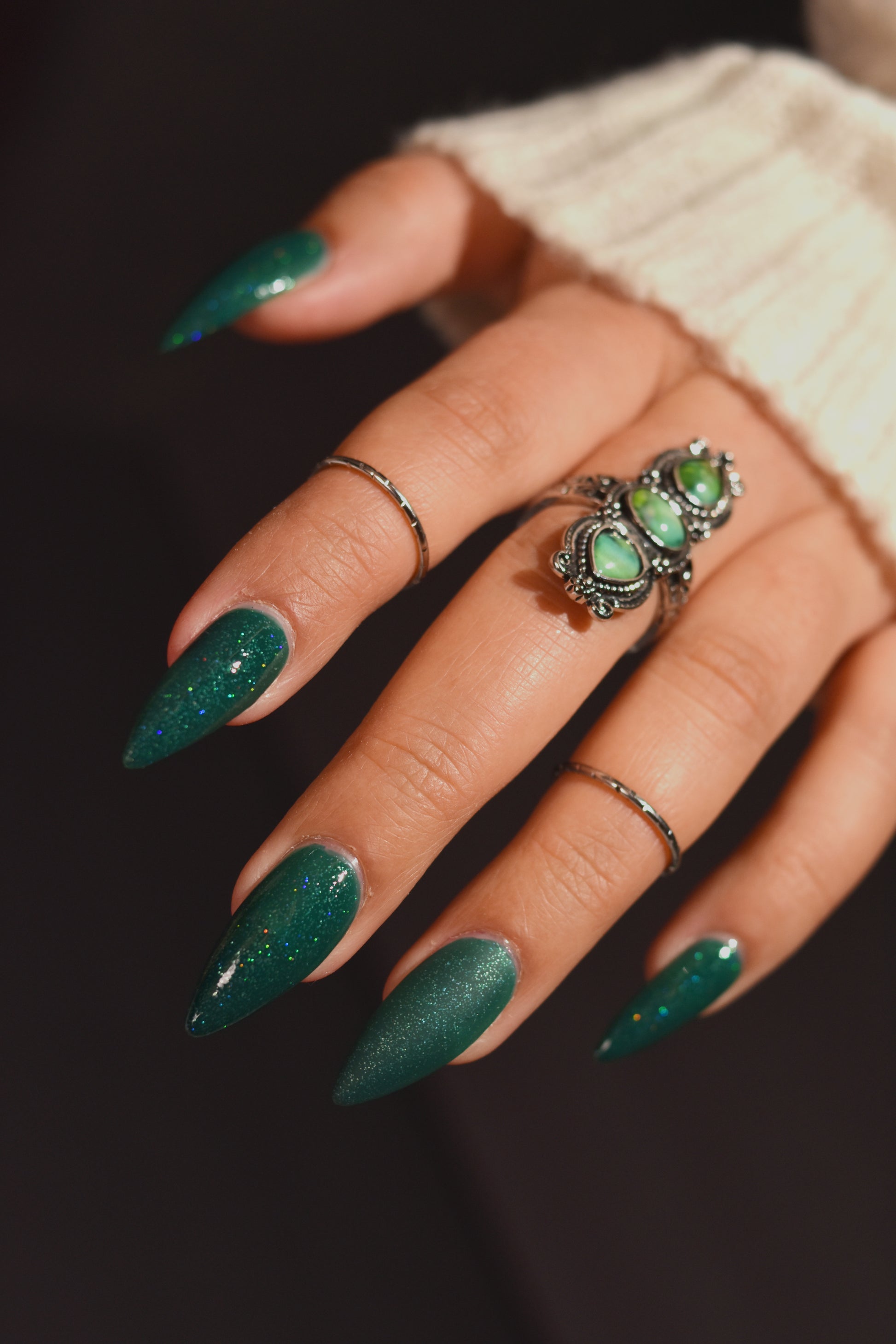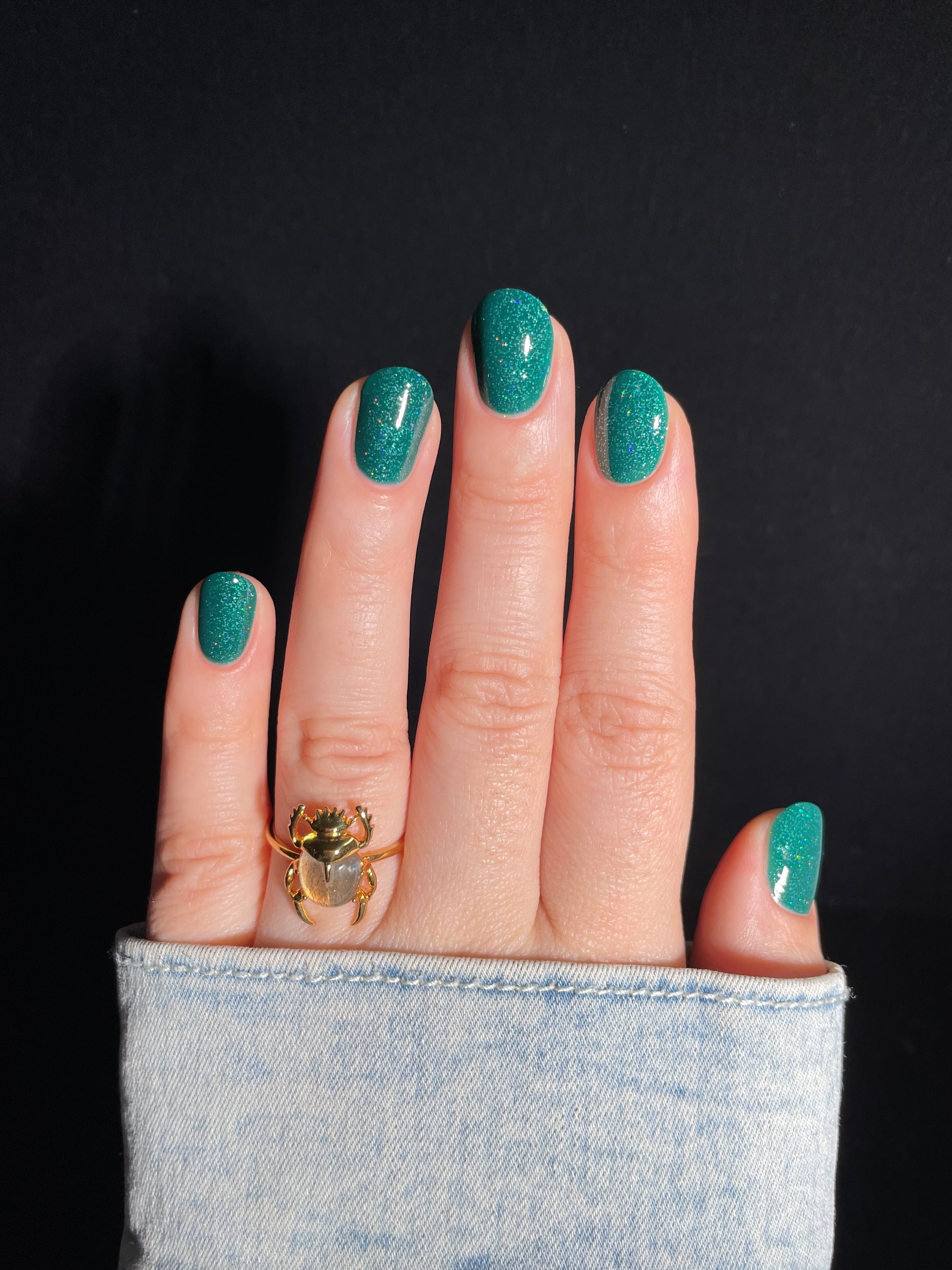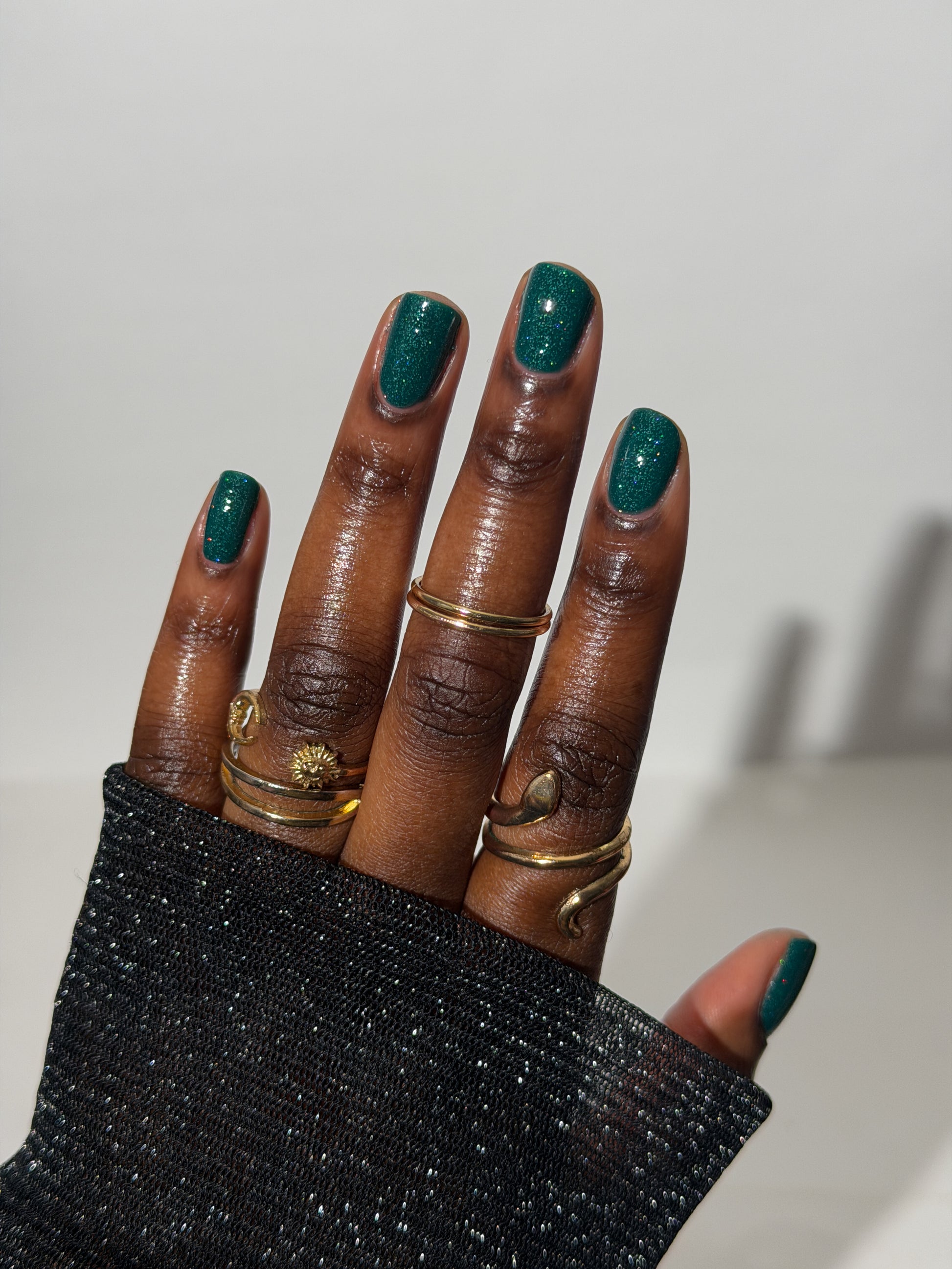 On Shuffle is a teal jelly packed with teal holographic glitters. It's pure playlist chaos in the best way. On Shuffle is inspired by those moments when your music is all over the place but somehow every song hits and you’re loving every minute of it. Fun, unpredictable, and full of sparkle, this shade keeps things interesting from start to finish.