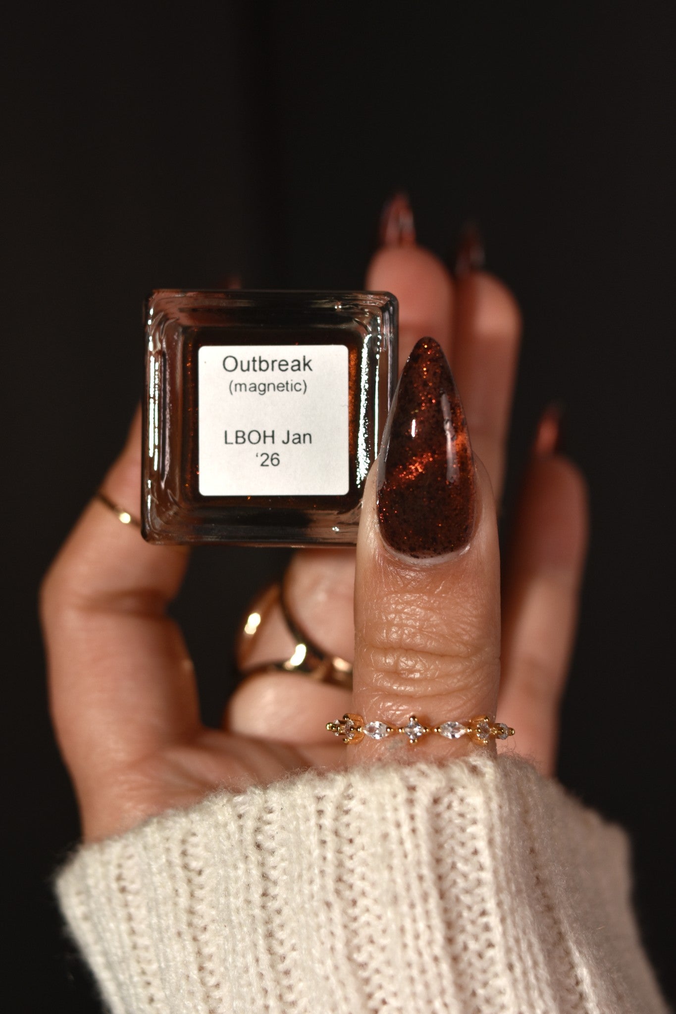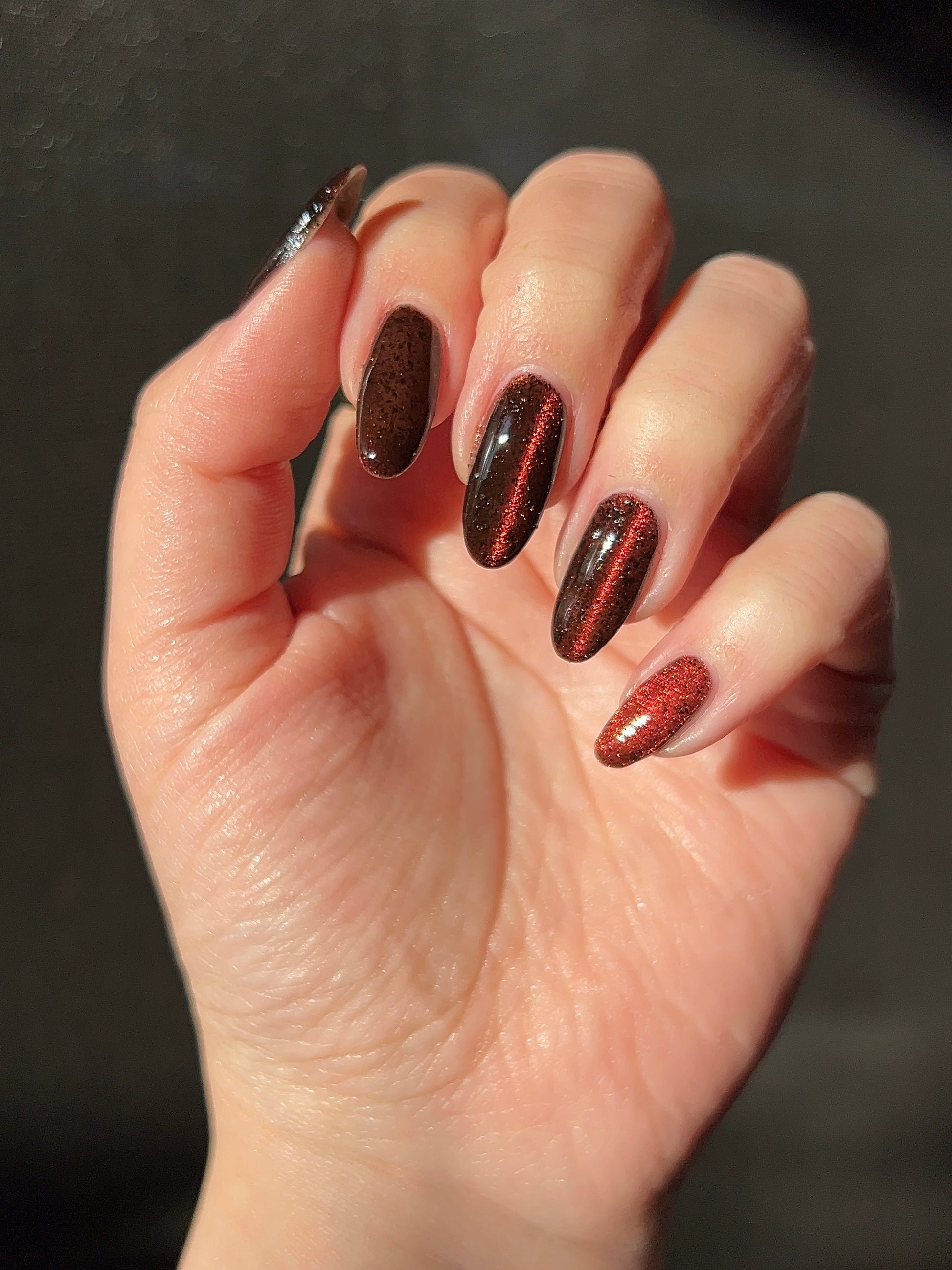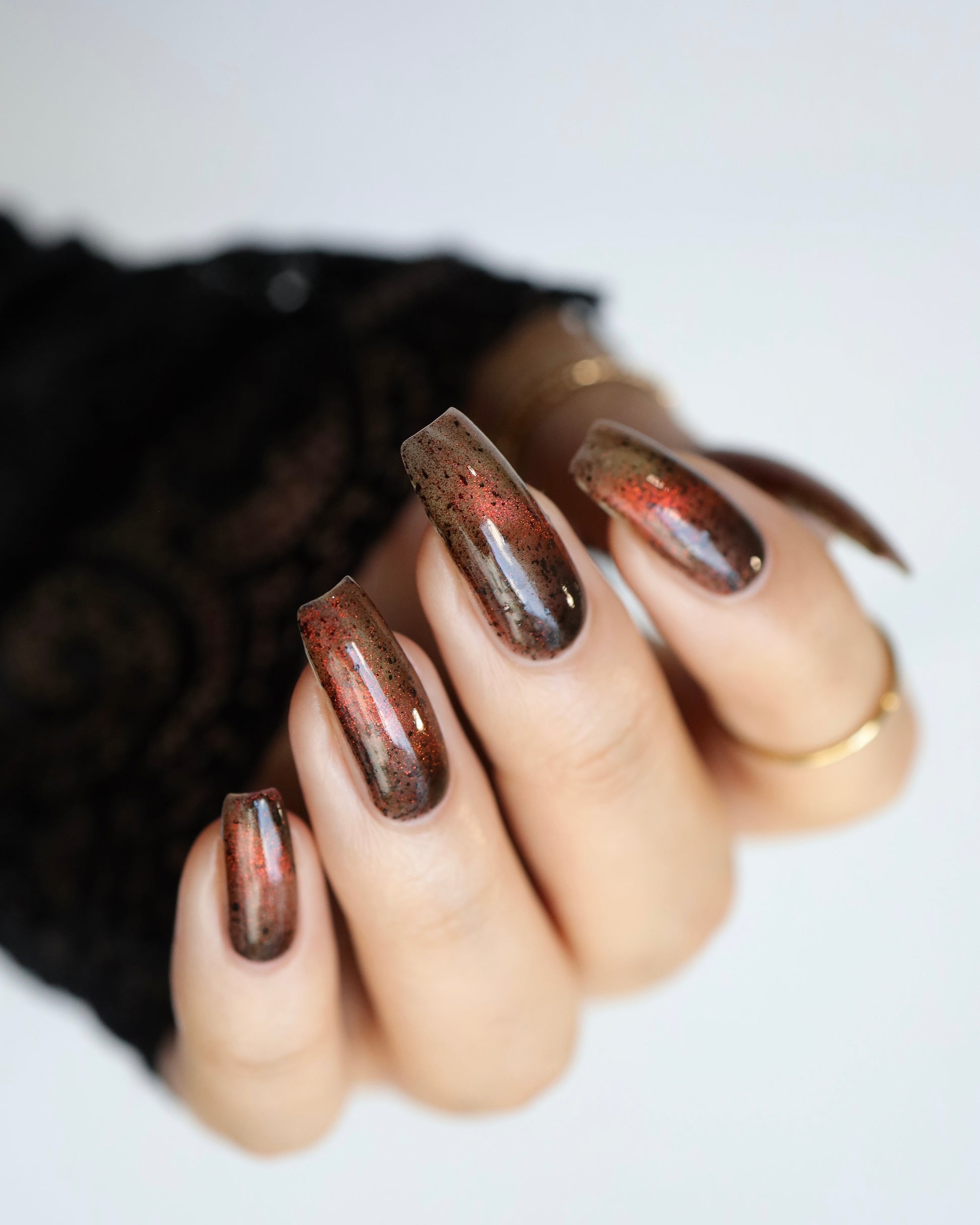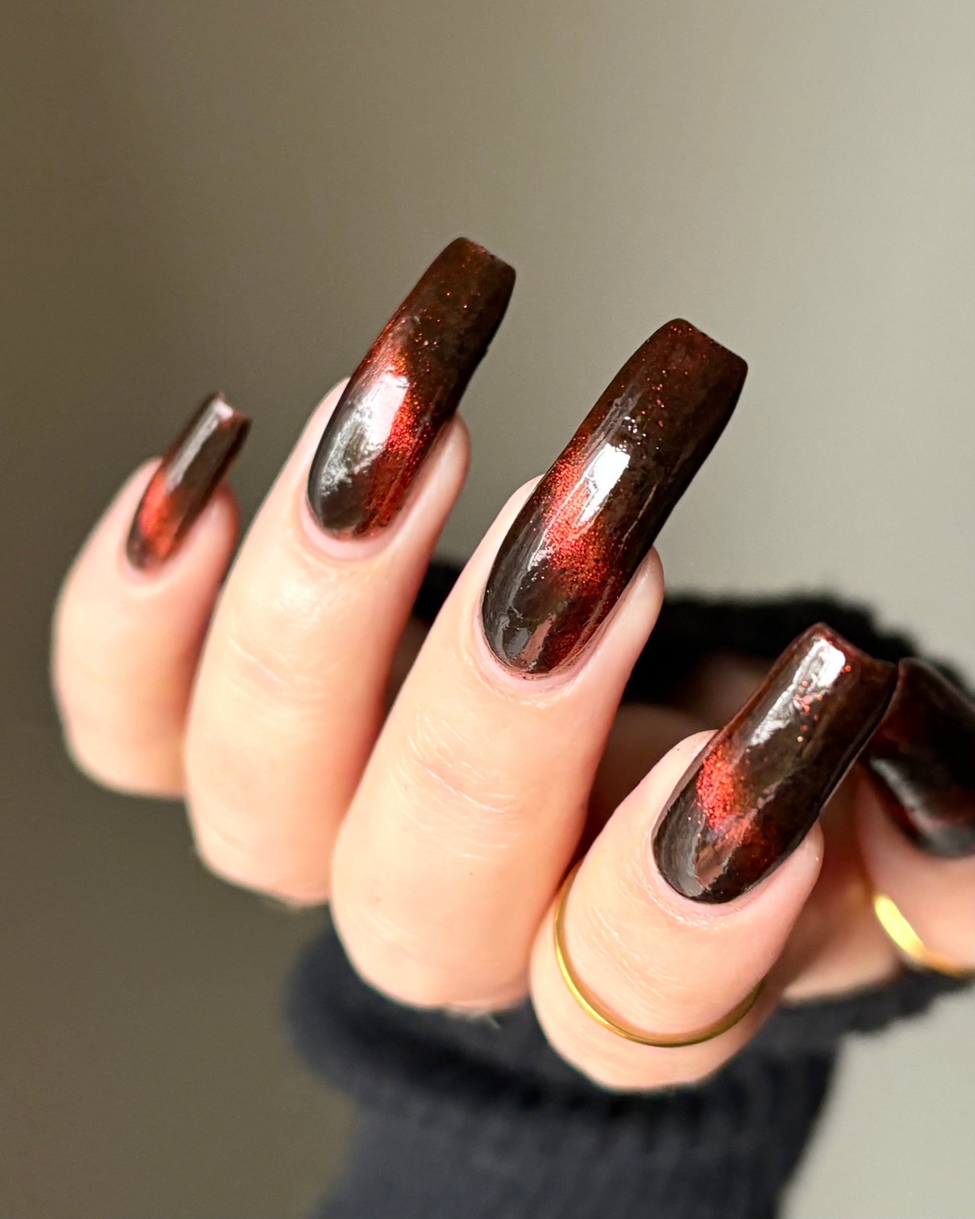 Outbreak is where the infection begins. Inspired by the Resident Evil films, this black jelly base is ominous, scattered with black flakies that drift like debris in the dark. Red to orange magnetic pigments surge beneath the surface, glowing like a warning signal as you pull them into motion. Haunting, dangerous, and impossible to ignore, Outbreak is a slow-burn polish that feels alive on the nail. This shade is made exclusively for Little Box of Horrors, and once it takes hold, there’s no turning back