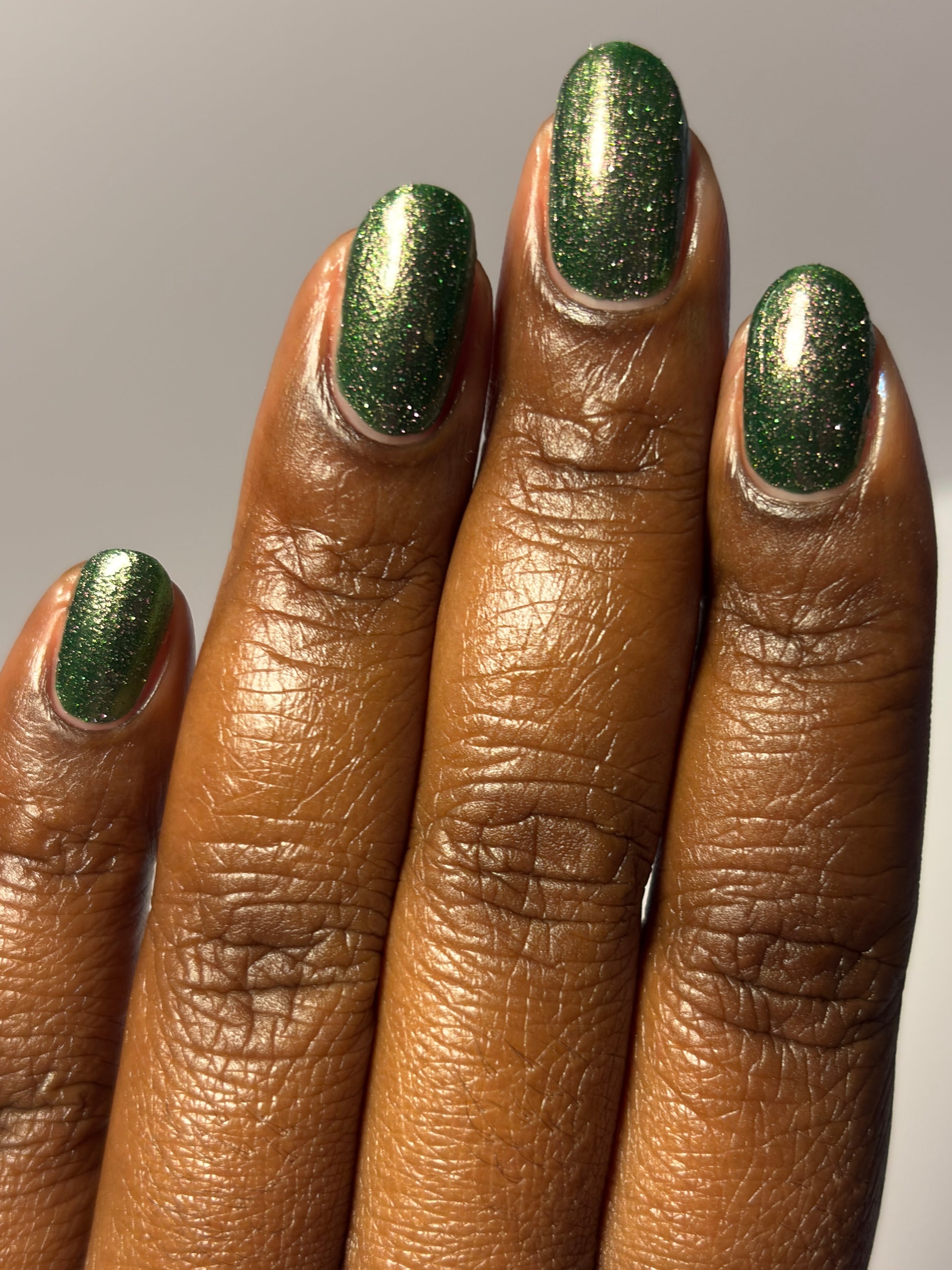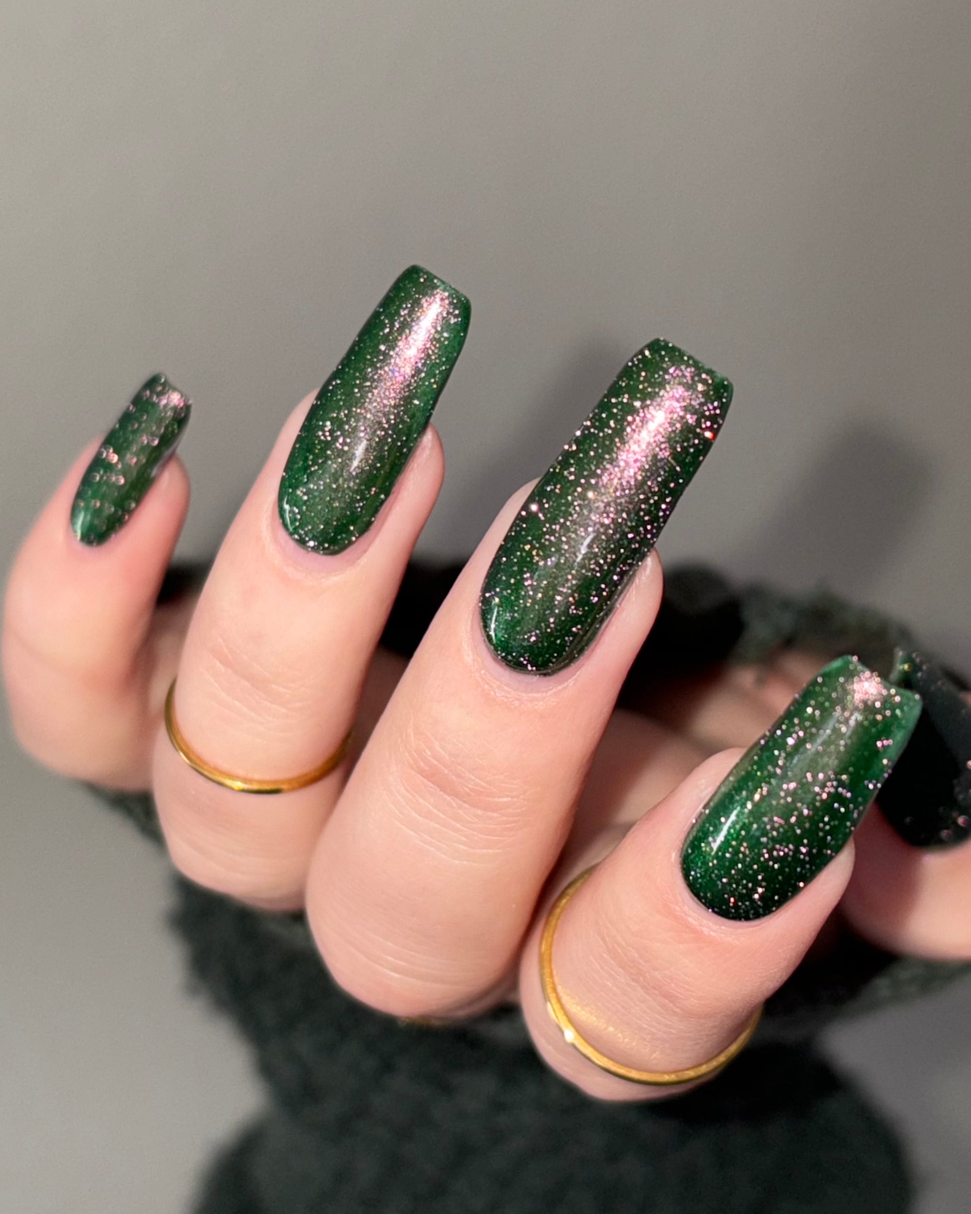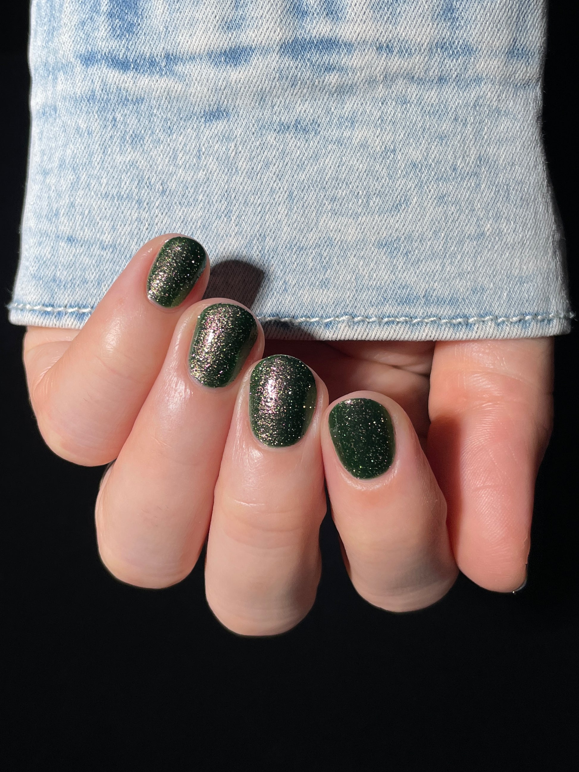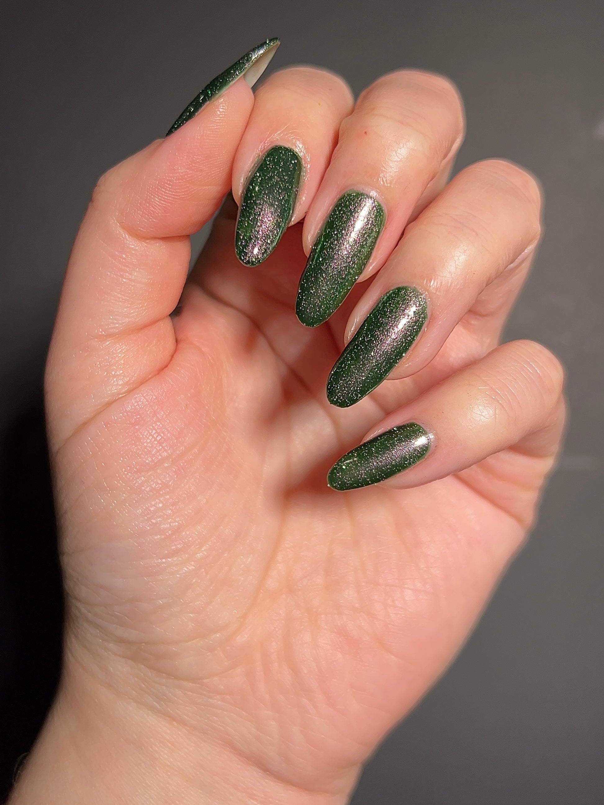 I see the shade Past, Present, Future making its way into your life. These months theme is Tarot and I instantly wanted to do a witchy vibe. This shade is a mysterious gray-green base with silver reflective glitters. Wear it, and you’ll swear you can hear the shuffle of fate… the past creeping behind you, the present tightening its grip, and the future waiting, patient and hungry, just beyond the next draw.