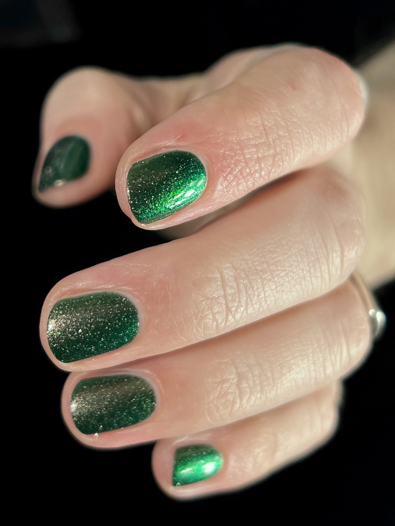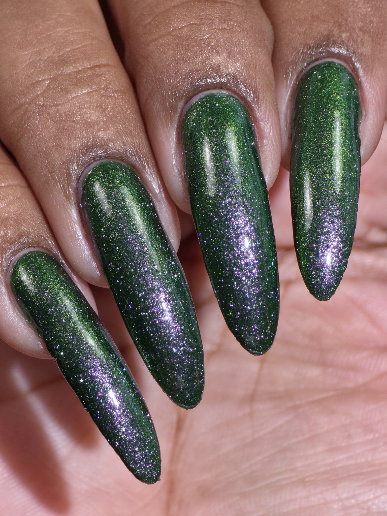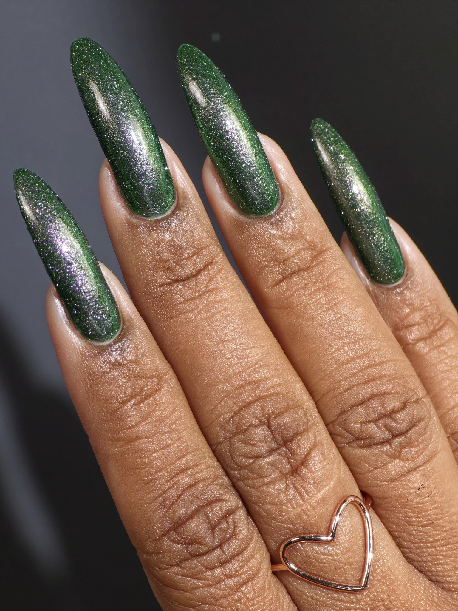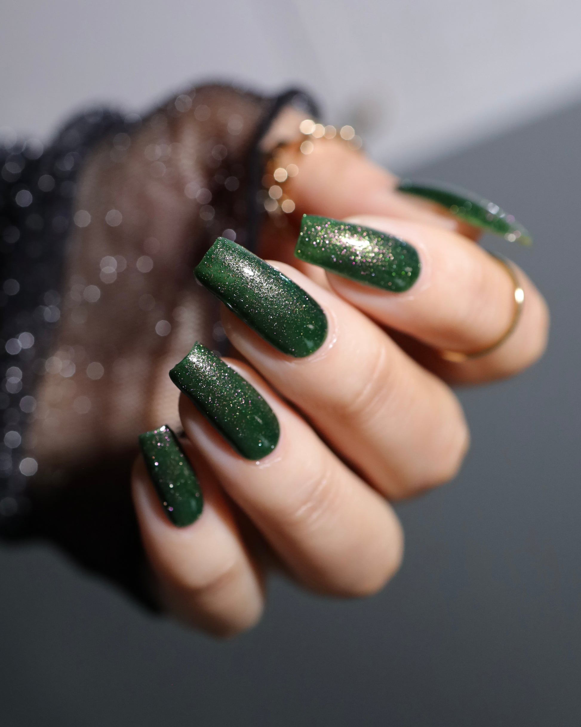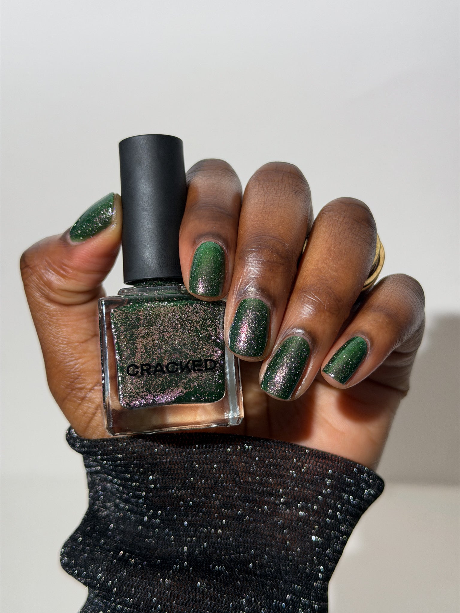 I see the shade Past, Present, Future making its way into your life. These months theme is Tarot and I instantly wanted to do a witchy vibe. This shade is a mysterious gray-green base with silver reflective glitters. Wear it, and you’ll swear you can hear the shuffle of fate… the past creeping behind you, the present tightening its grip, and the future waiting, patient and hungry, just beyond the next draw.