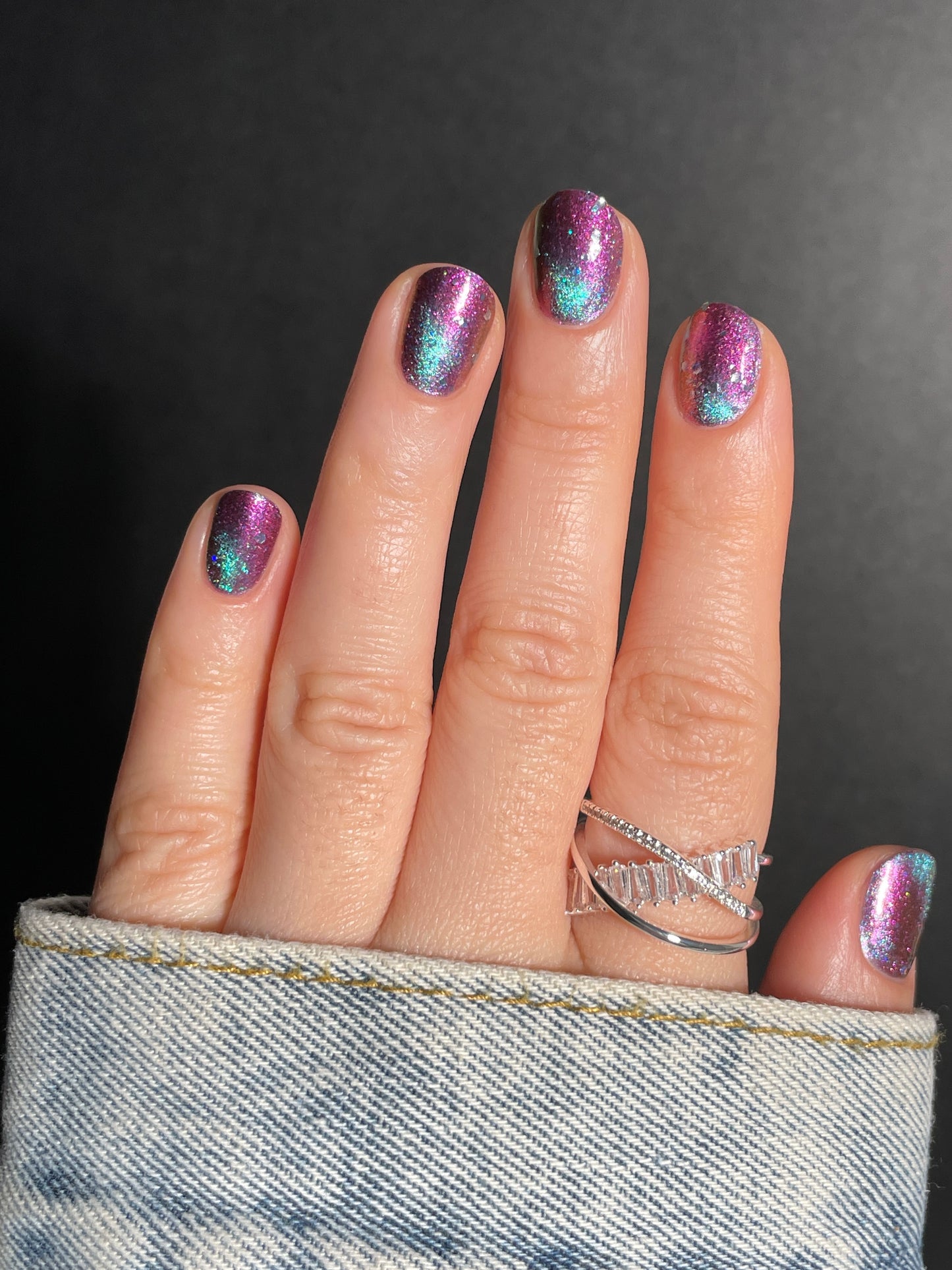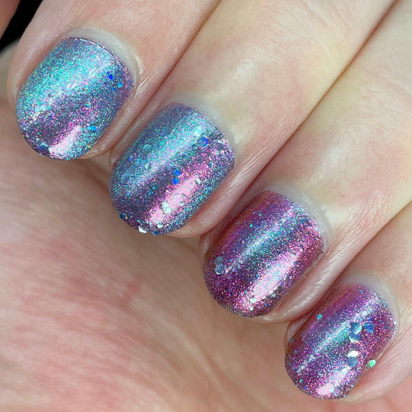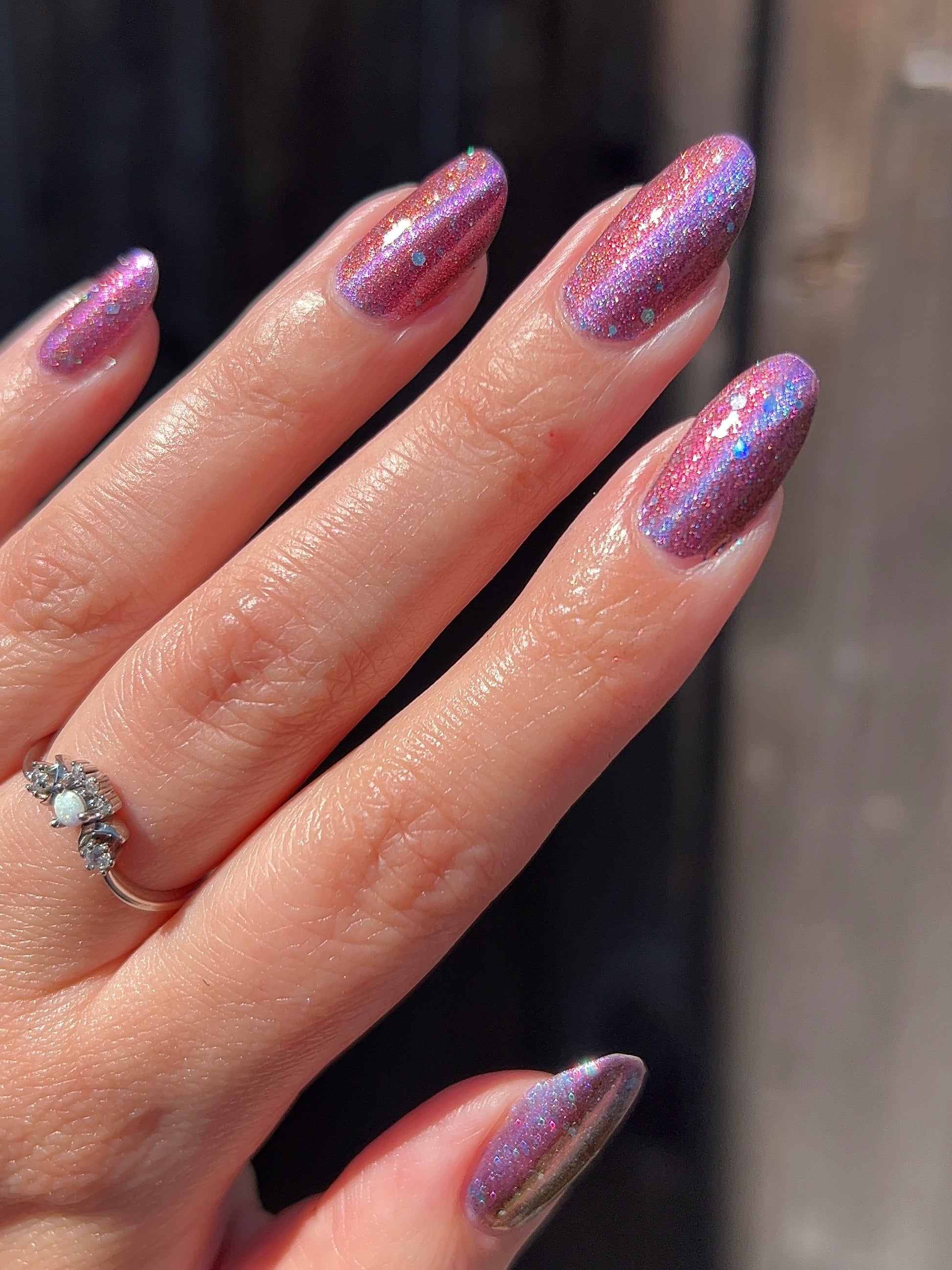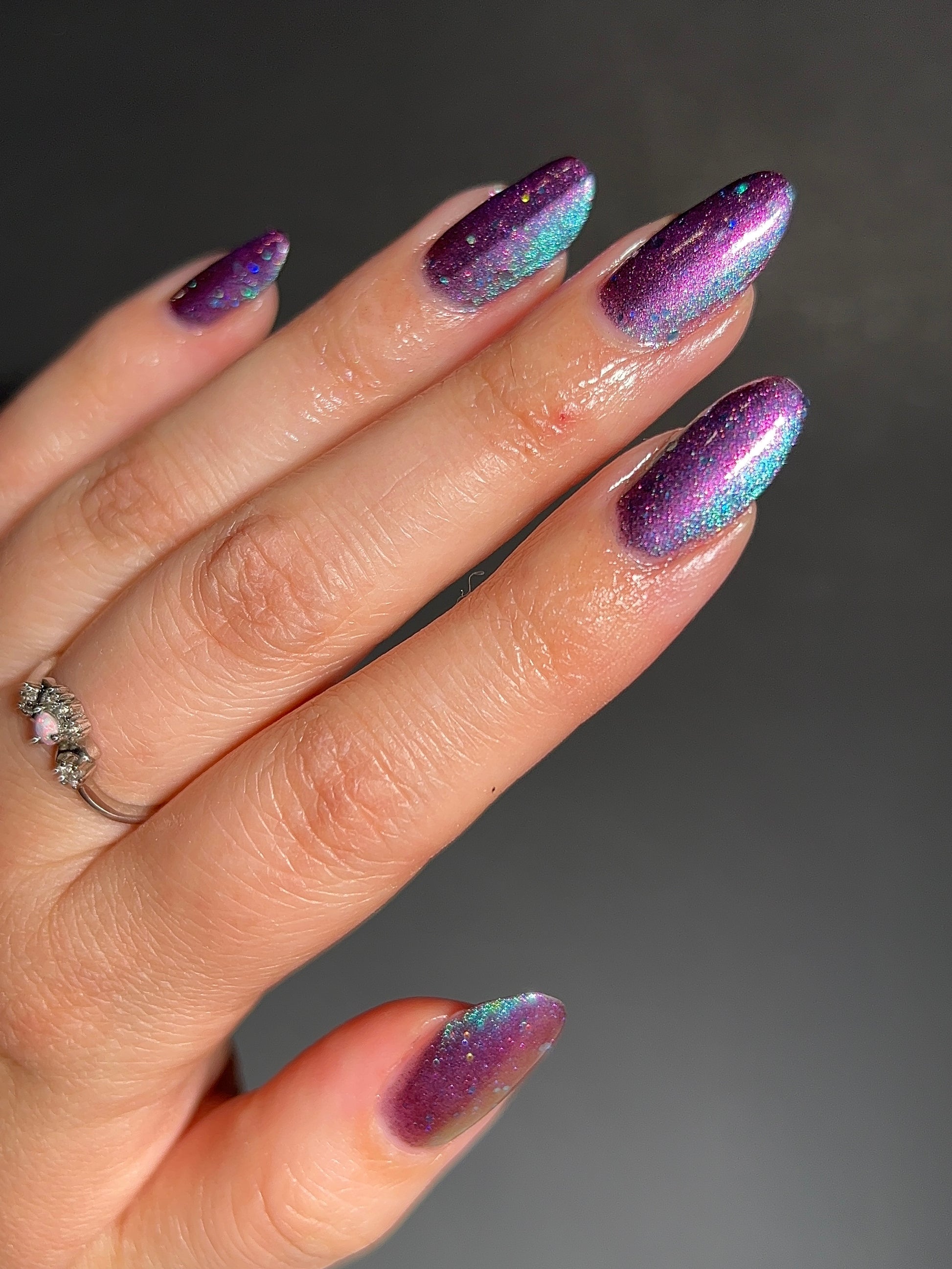 Purple Party Monster is the life of the nail party. This rich purple shade is packed with blue magnetic pigments, bursts of holo and purple shimmer, and a playful scatter of blue different size hex glitters like confetti caught in a disco ball’s glow. Inspired by wild nights, too much sugar, and dancing like nobody’s watching, this polish is your ultimate throwback to carefree chaos and staying up way past your bedtime. Let your nails relive the party.