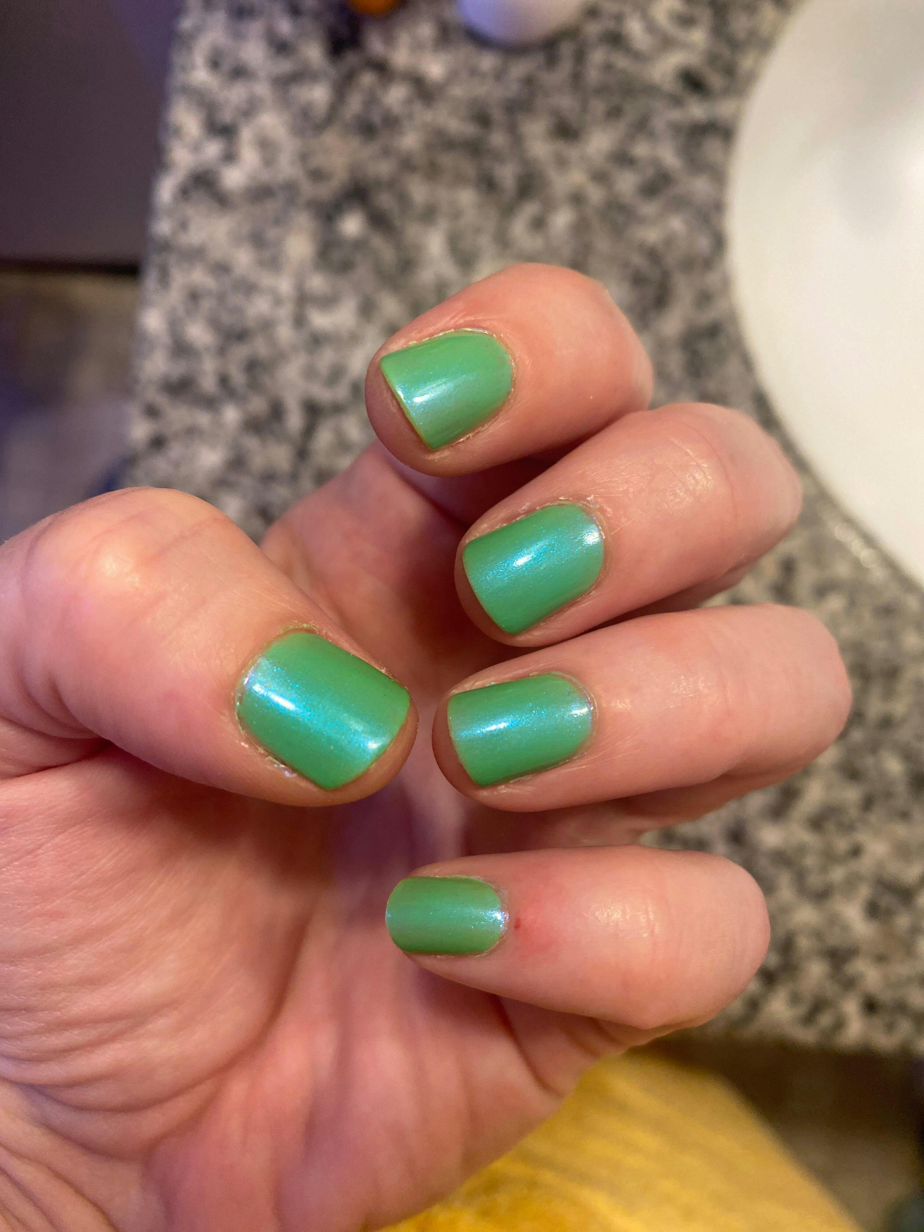 My new favorite green! So eye-catching. I love the blue shimmer and it self-leveled so nicely. I also appreciate the price point and the fact that the bottles are 15ml rather than 12ml like other brands!