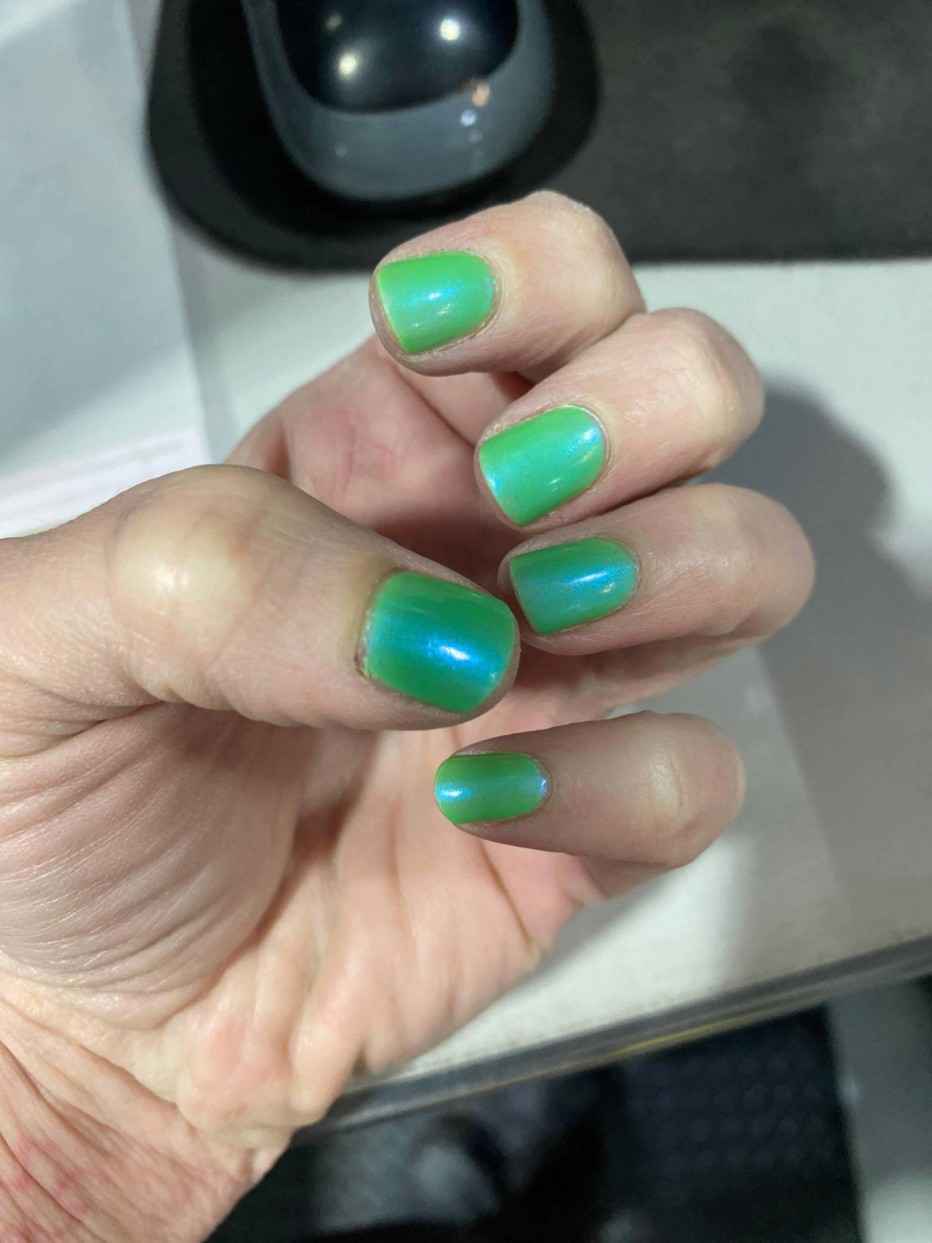 I got so many compliments wearing this color! I love a good green neon! Super bright and vivid, especially with the blue shimmer!