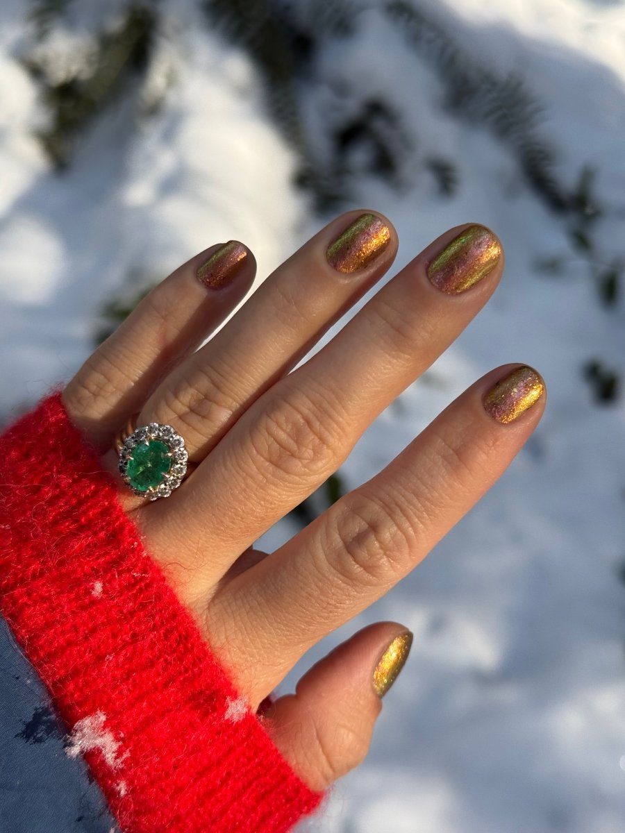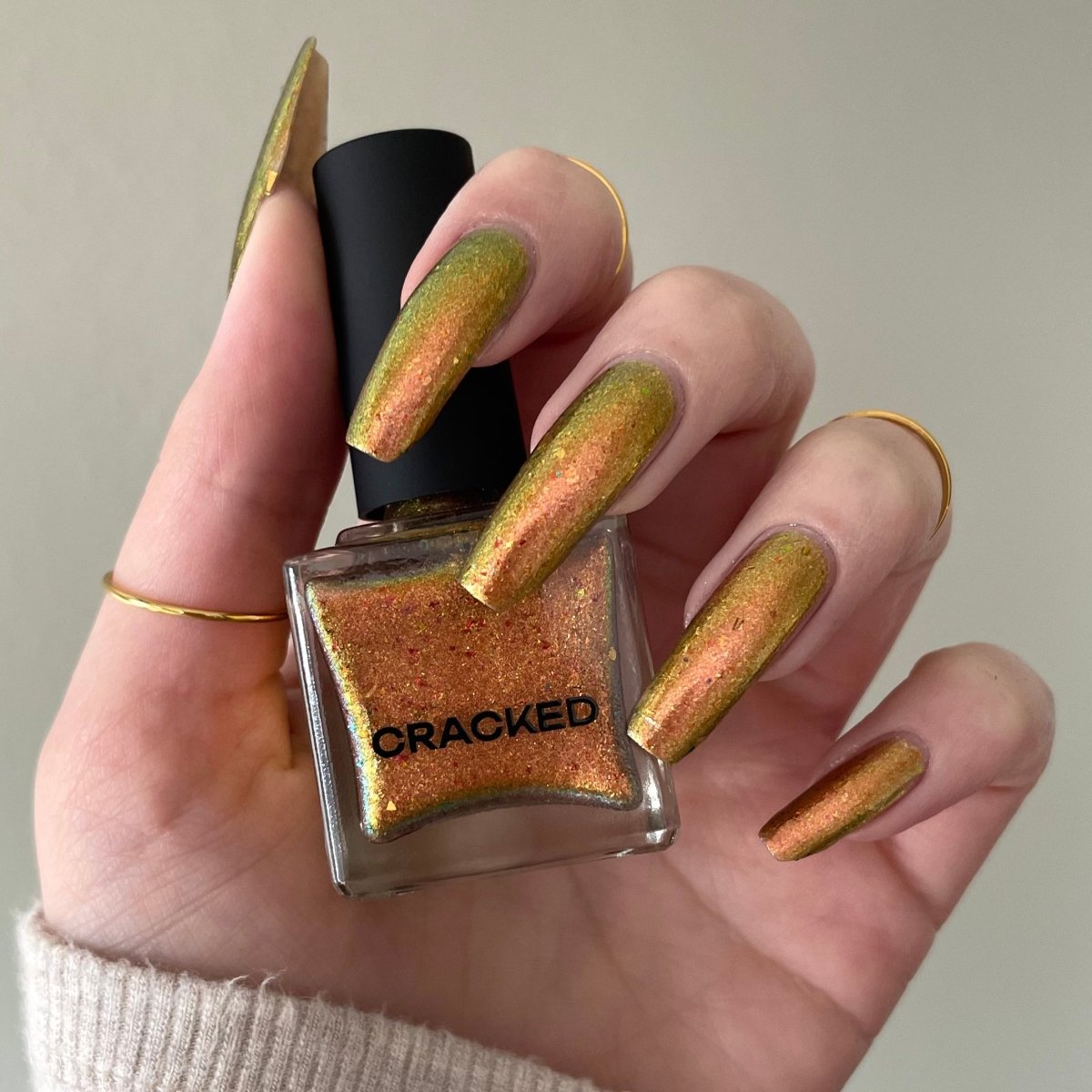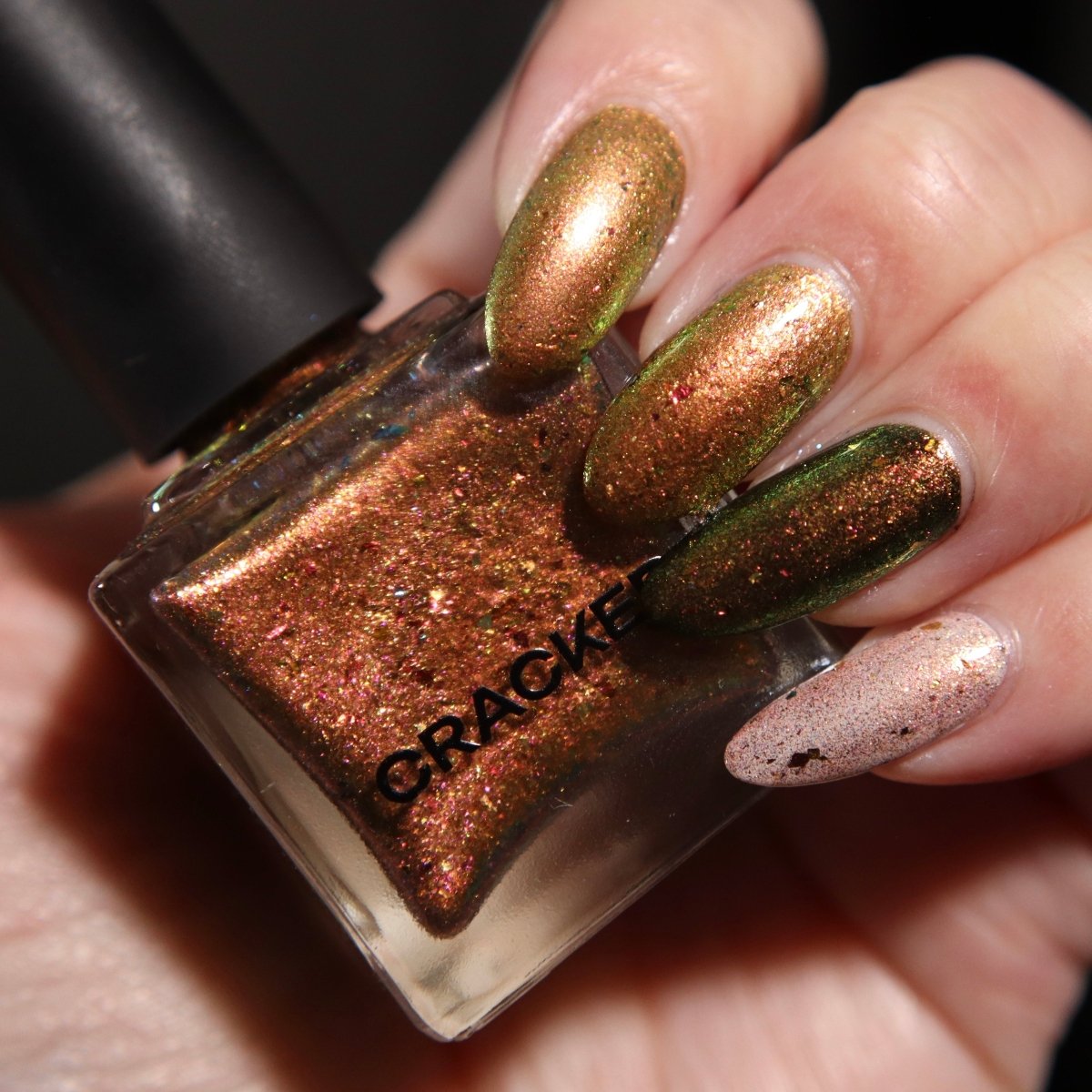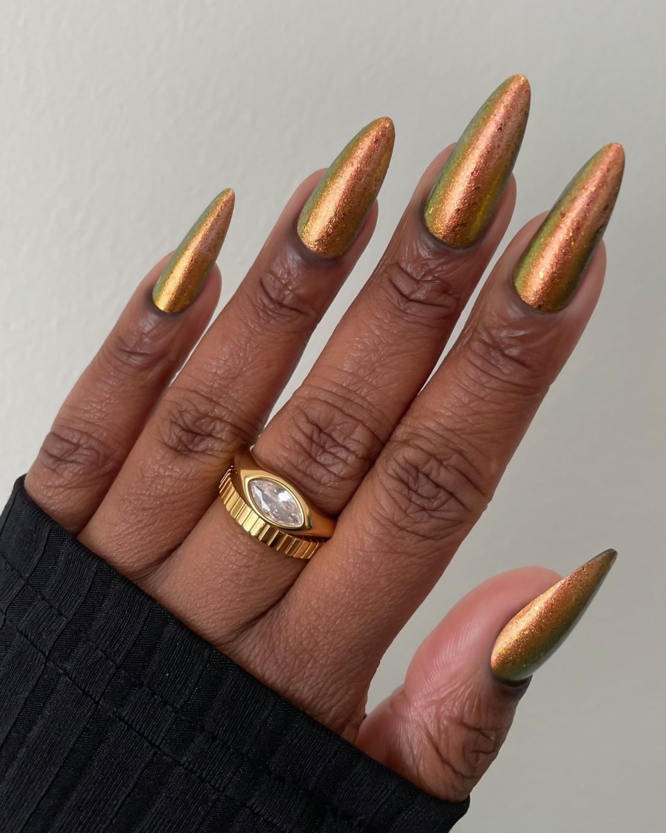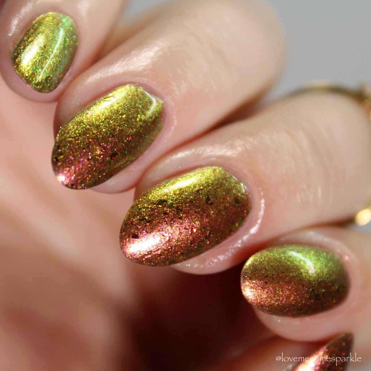 Rusty Microbe is a unique, metallic rusty copper shade that shifts from green to gold, accented with a delicate dusting of red/green/gold shifting flakes. This polish is a true chameleon, transforming dramatically from indoor to outdoor lighting. But when the sunlight hits it? Pure magic. This is unlike anything in our lineup, and stepping outside our comfort zone has paid off in the most spectacular way. Don’t miss your chance to grab this one-of-a-kind beauty