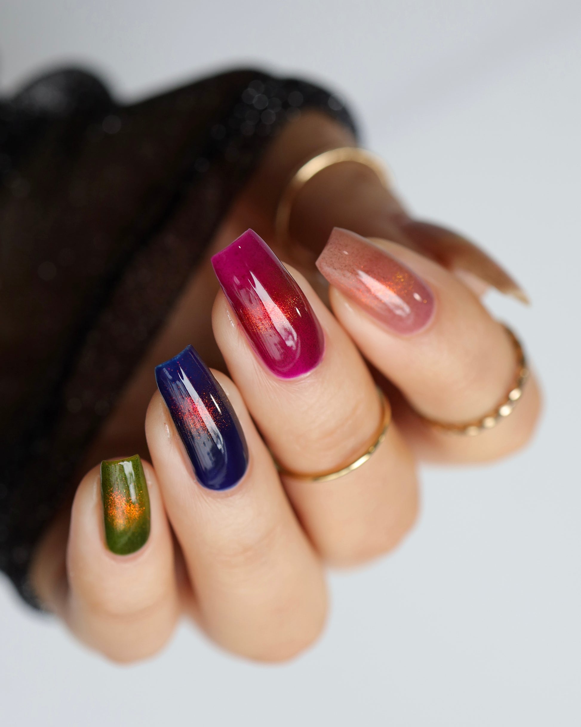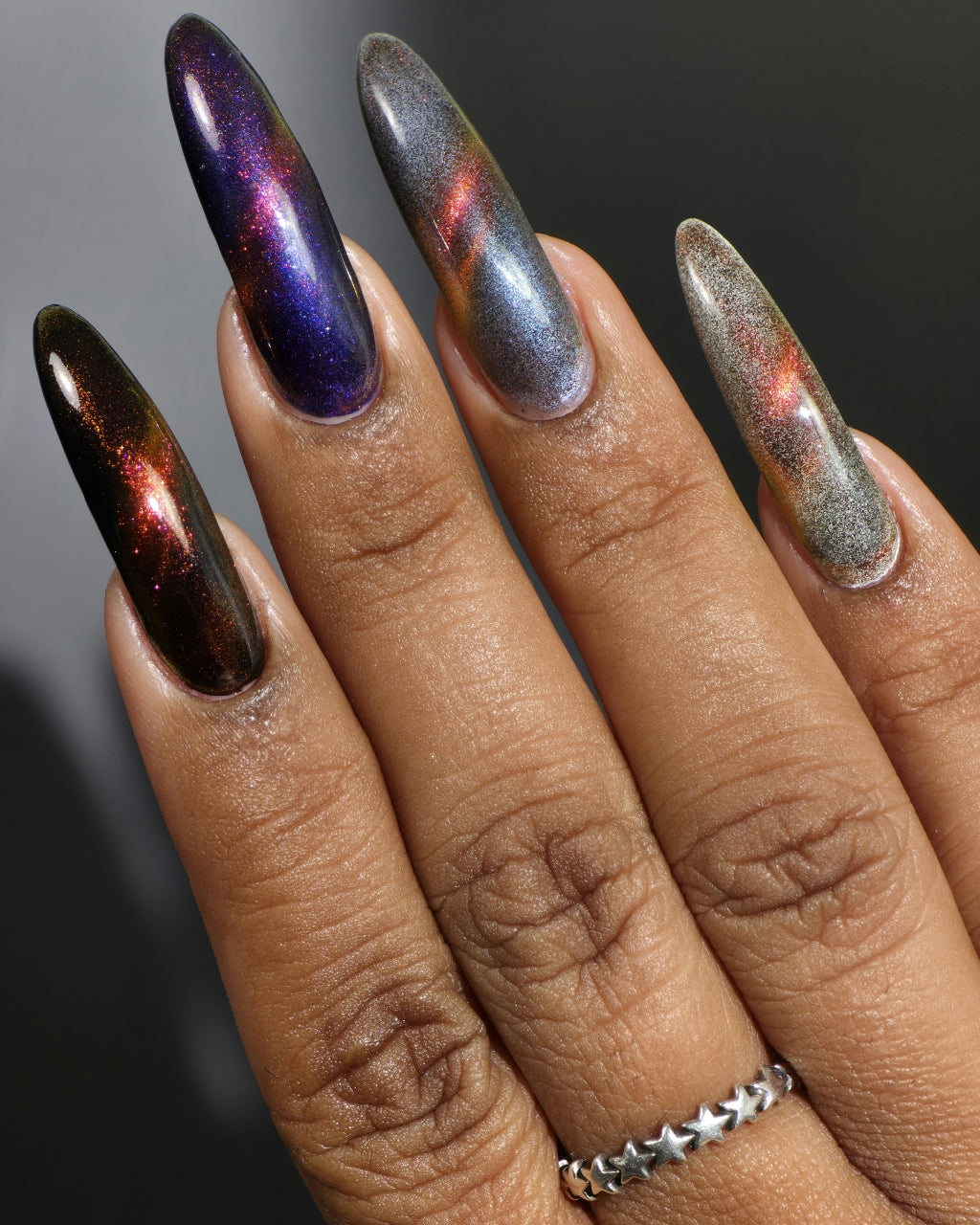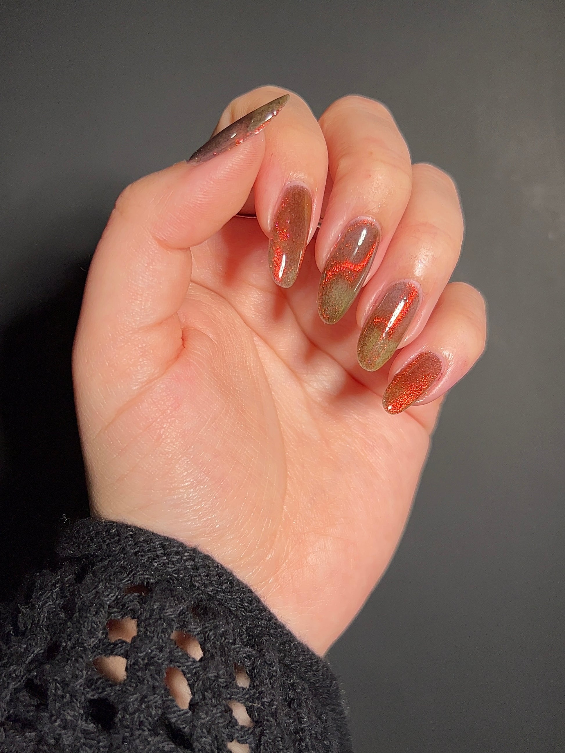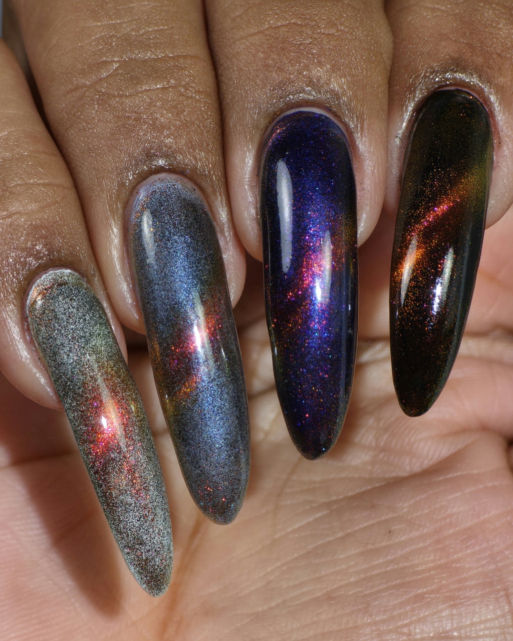 I LOVE this one so much. It’s so versatile, not just being able to magnetize multiple ways but it can also be used as a topper and completely change the look. So many combos can be made with this polish, It’s definitely a must buy. If you’re on the fence, get it!