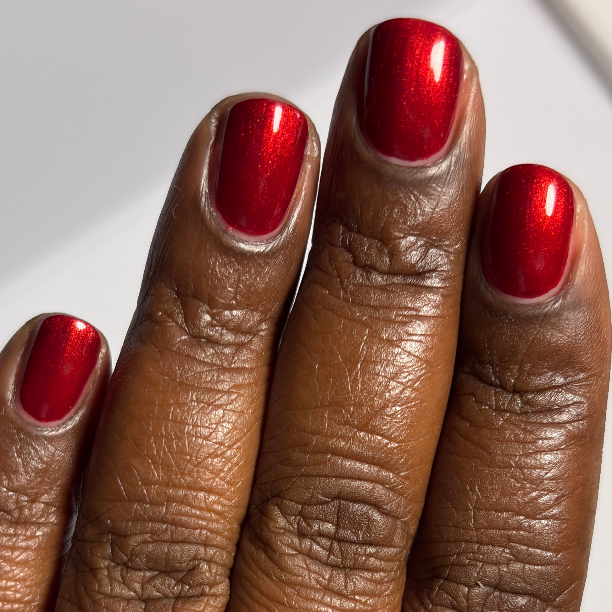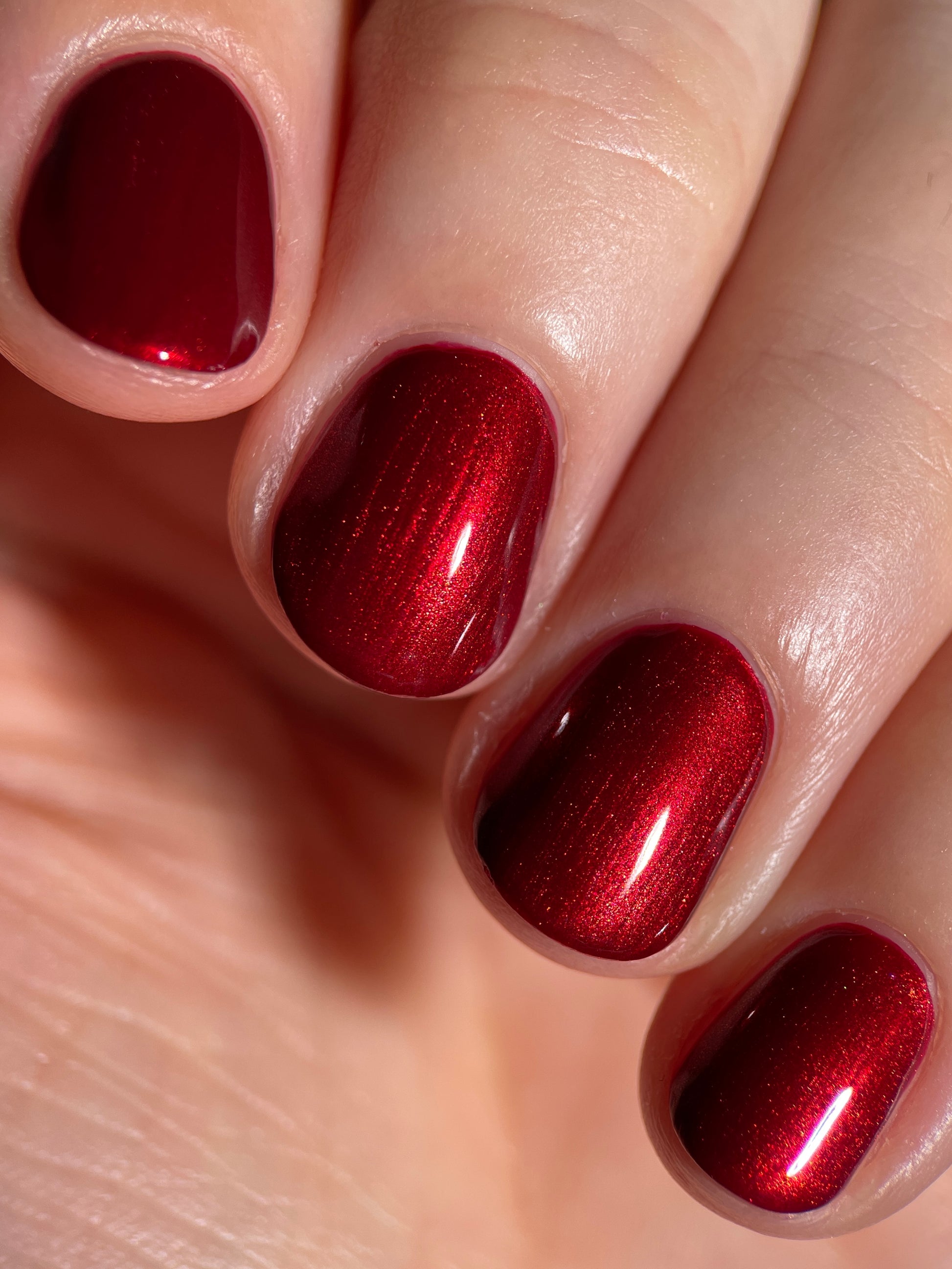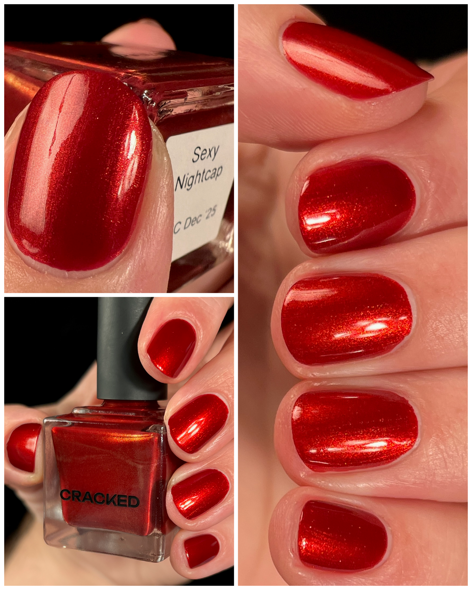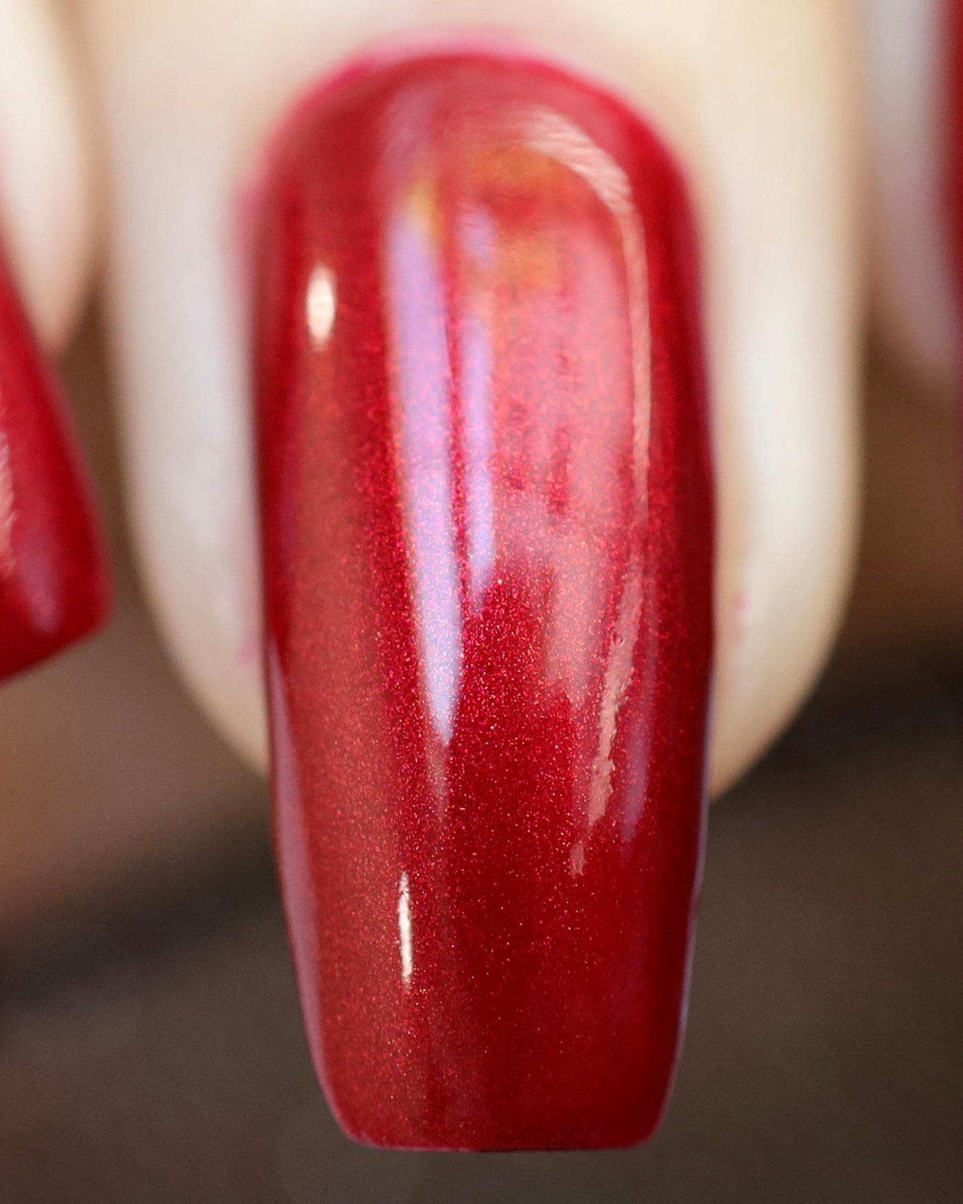 Something about a red instantly brings out your inner sexy. Sexy nightcap is a stunning warm red with a hint of gold shimmers.