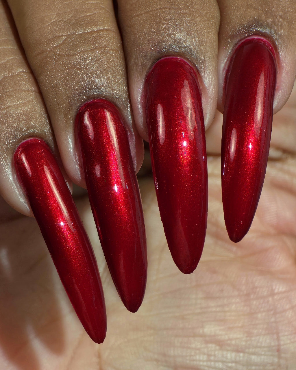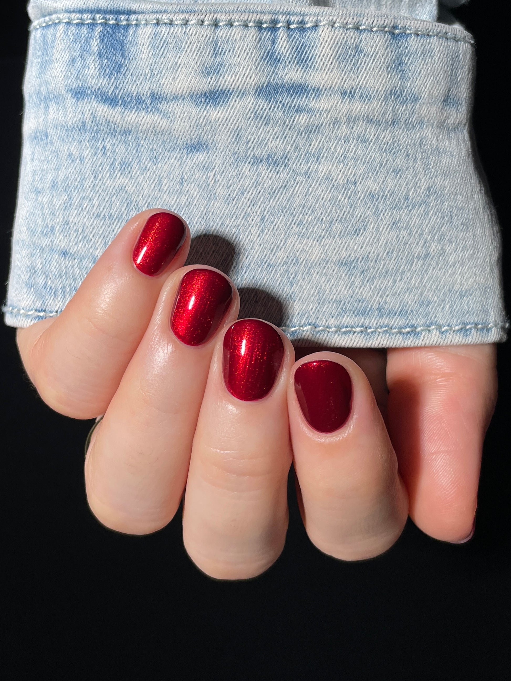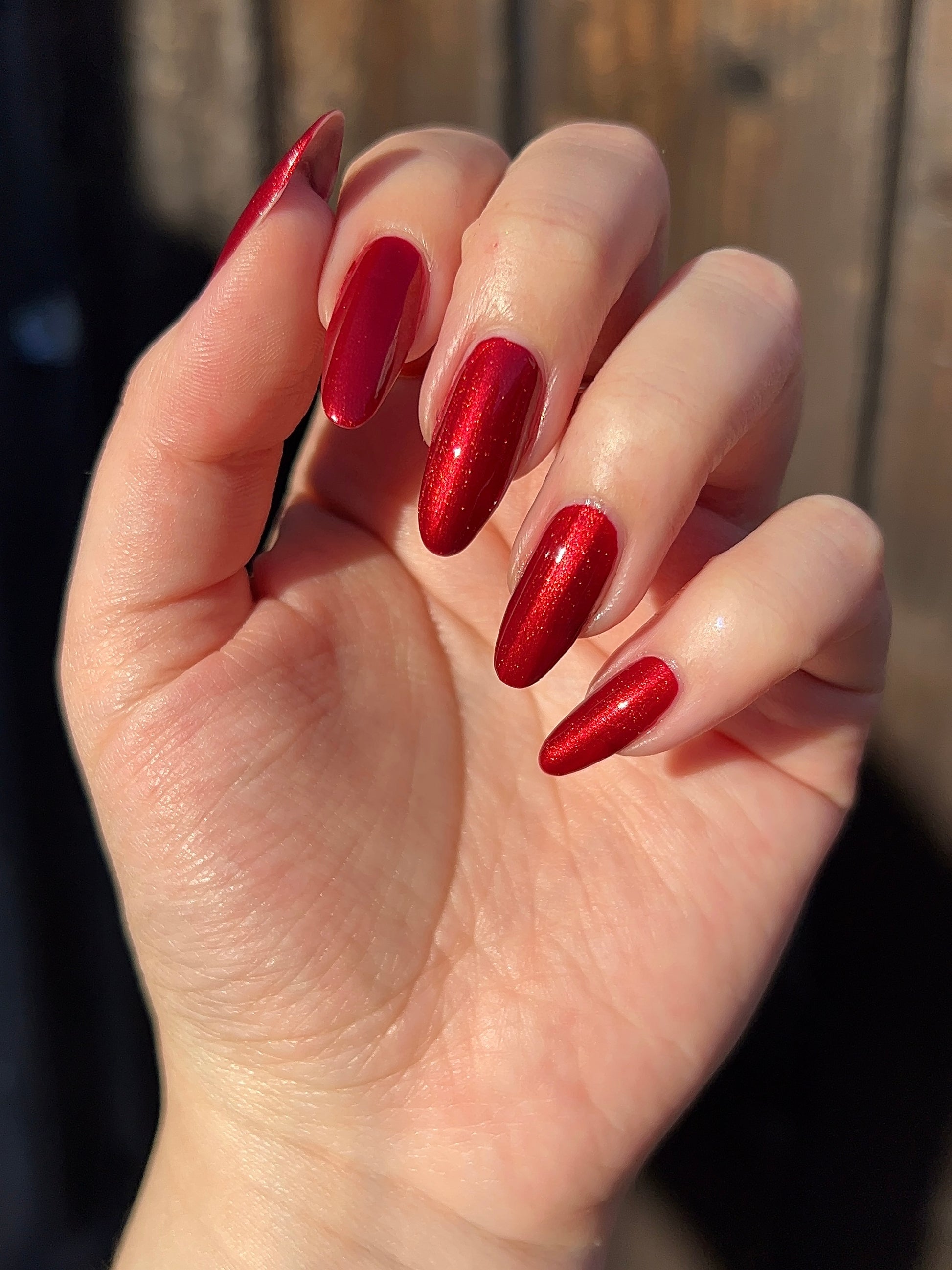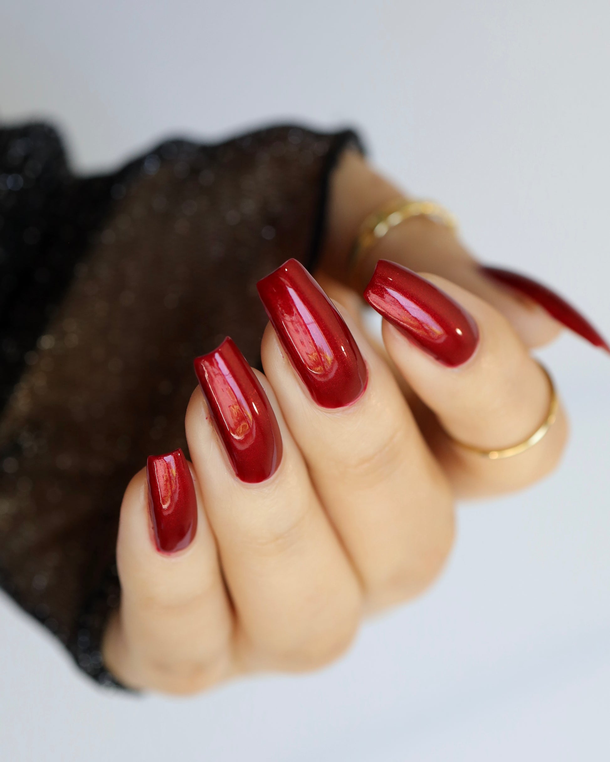 Something about a red instantly brings out your inner sexy. Sexy nightcap is a stunning warm red with a hint of gold shimmers.