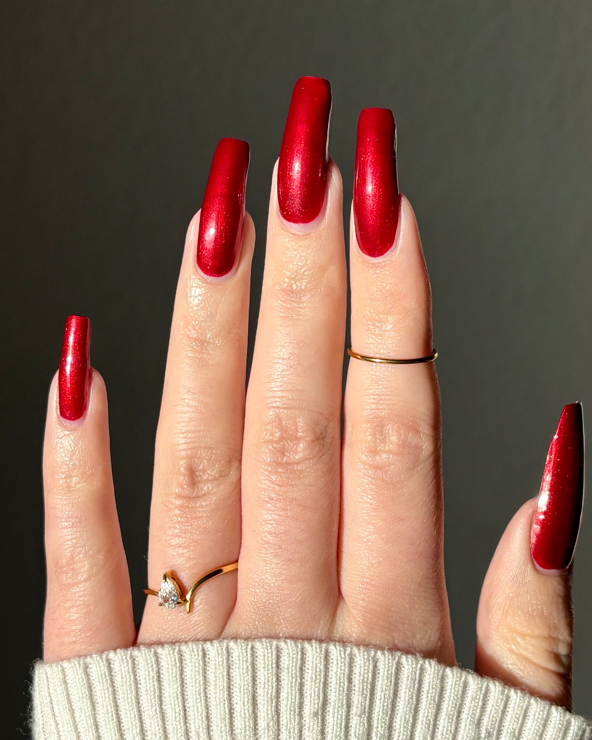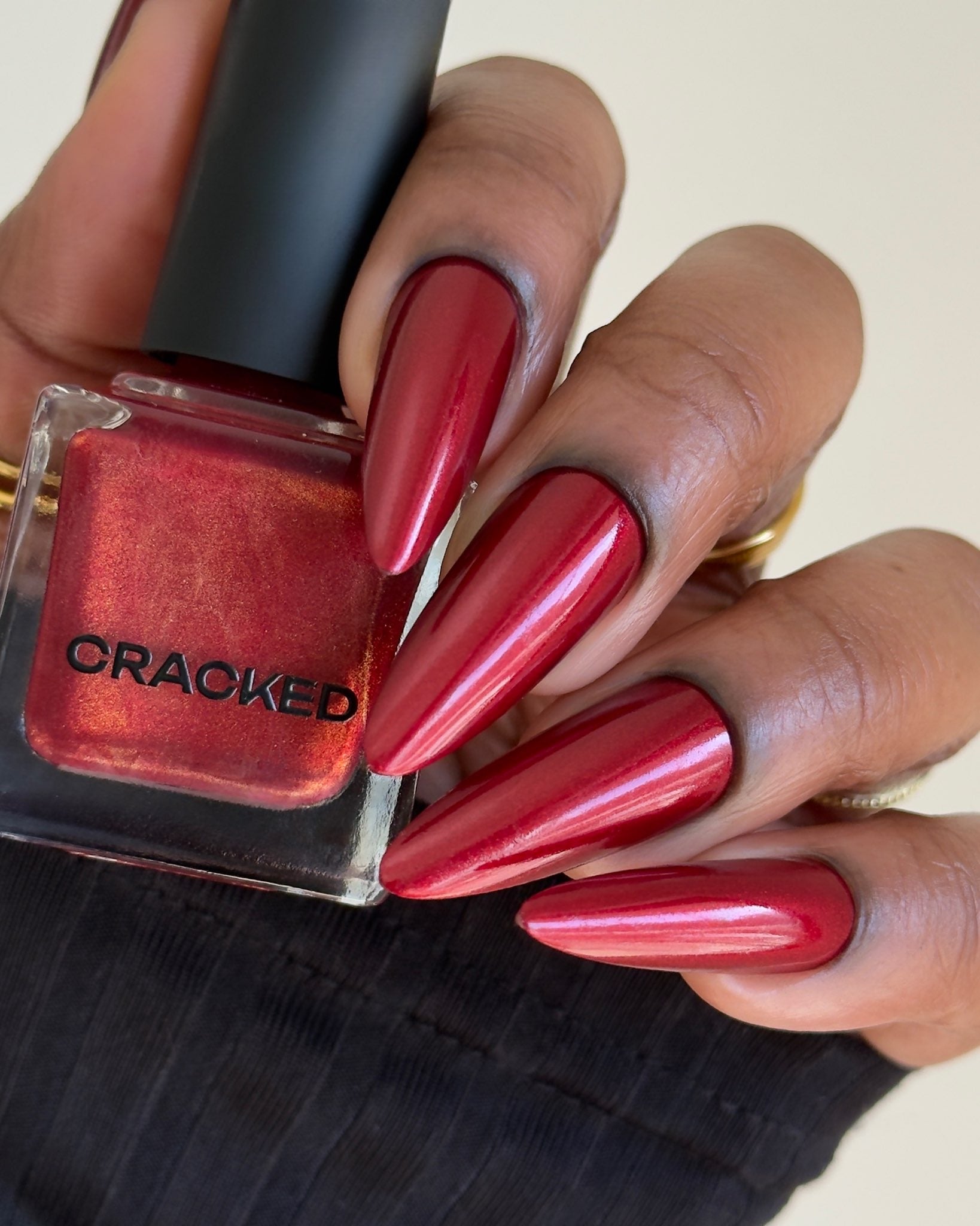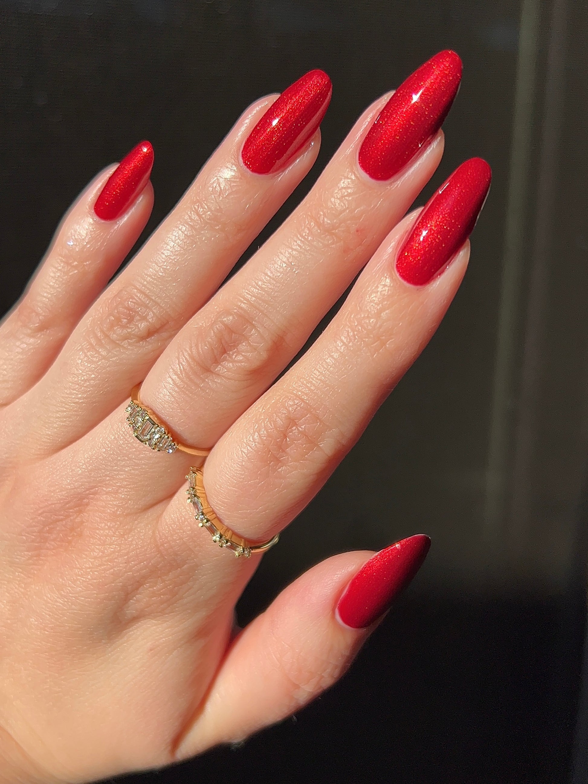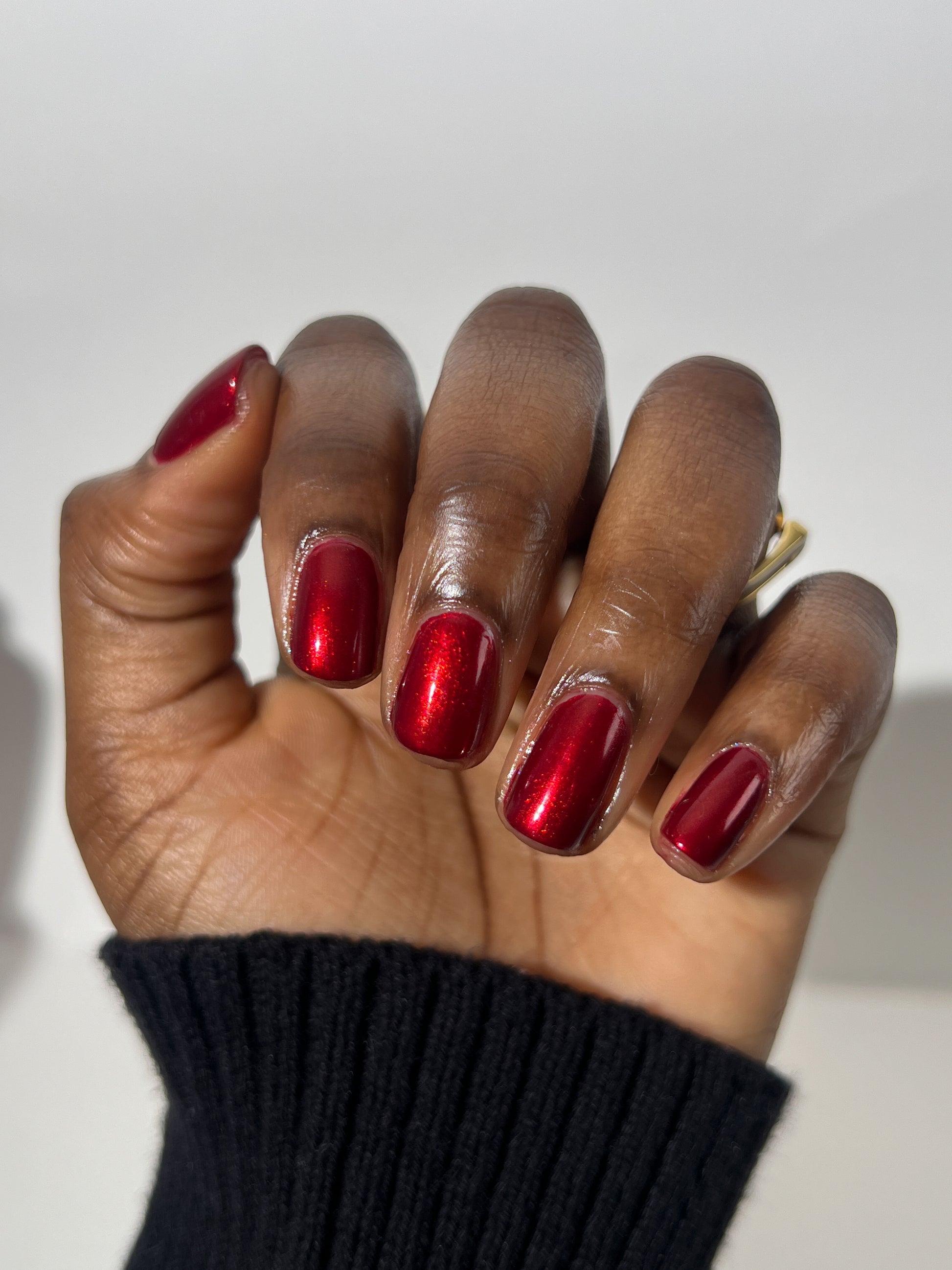 Something about a red instantly brings out your inner sexy. Sexy nightcap is a stunning warm red with a hint of gold shimmers.