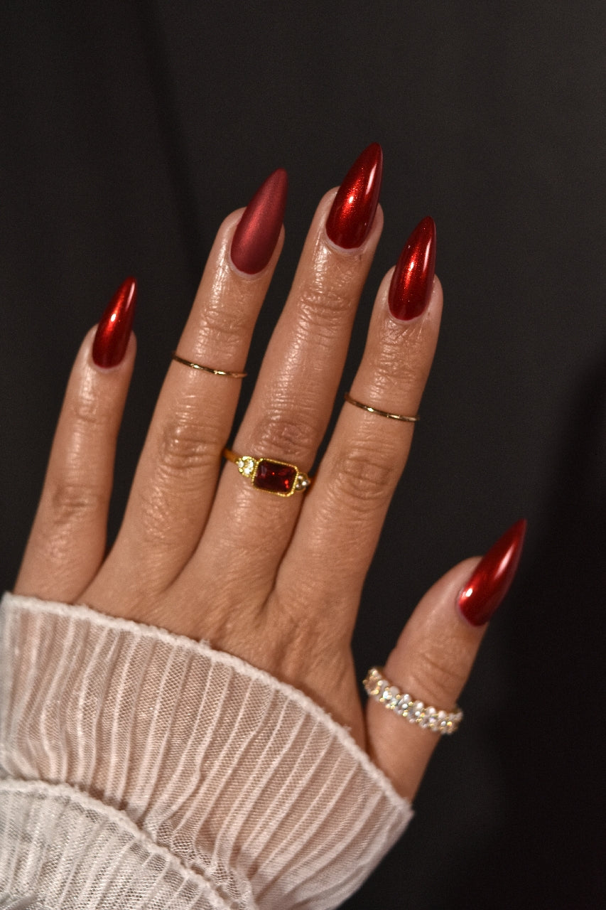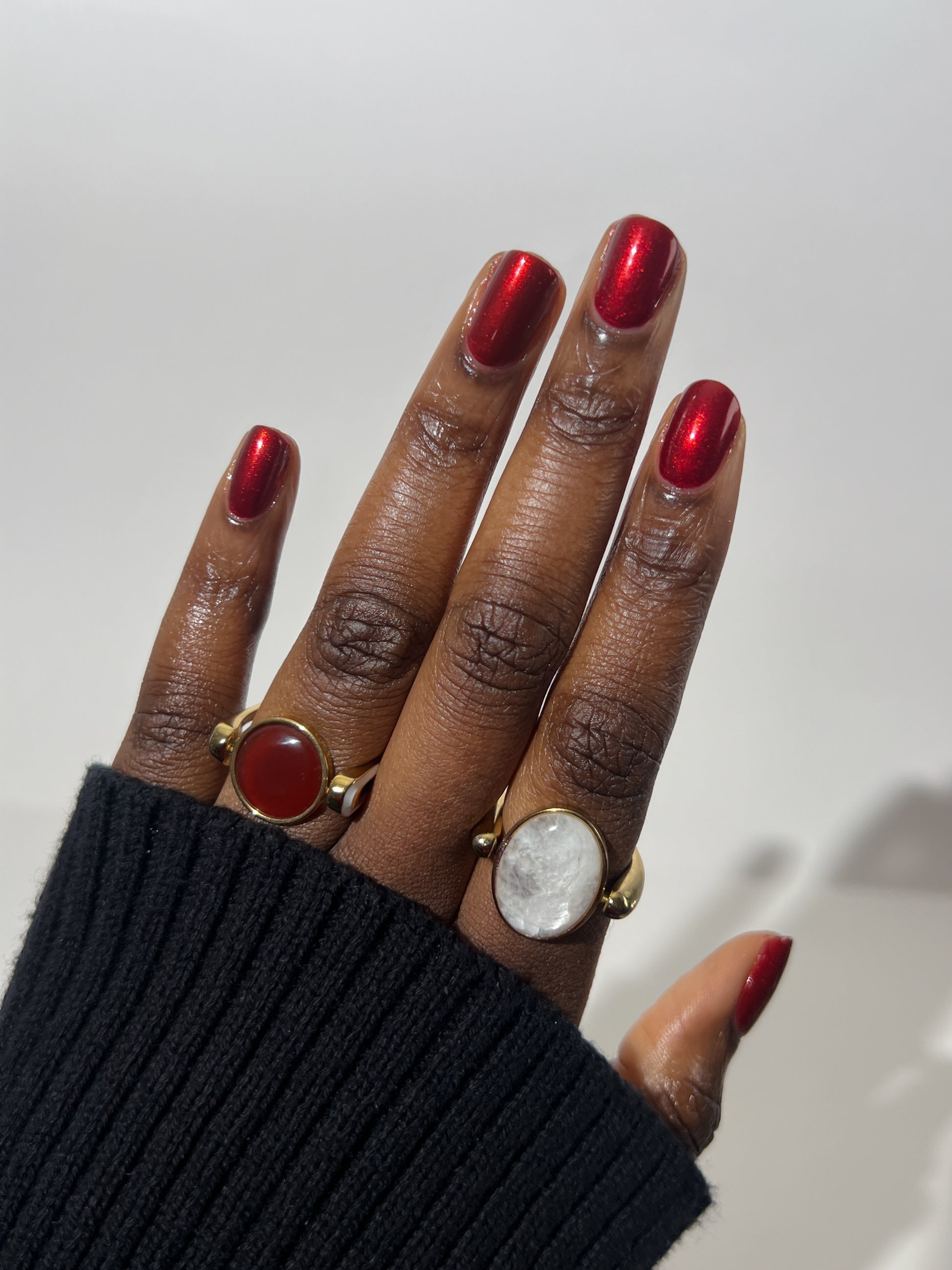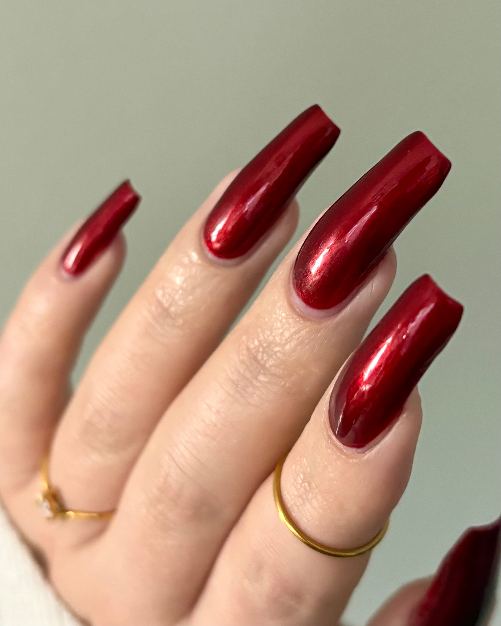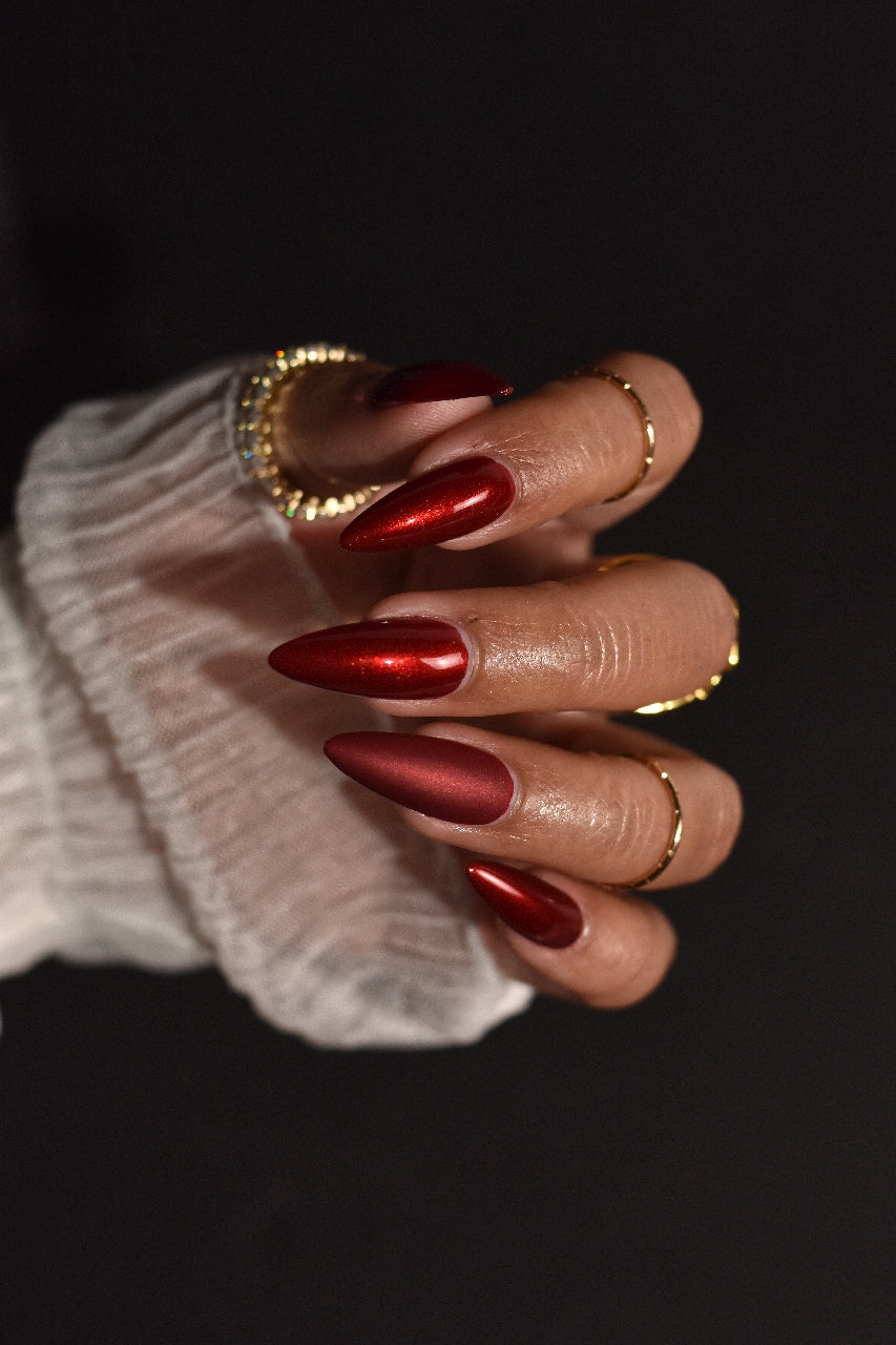 Something about a red instantly brings out your inner sexy. Sexy nightcap is a stunning warm red with a hint of gold shimmers.