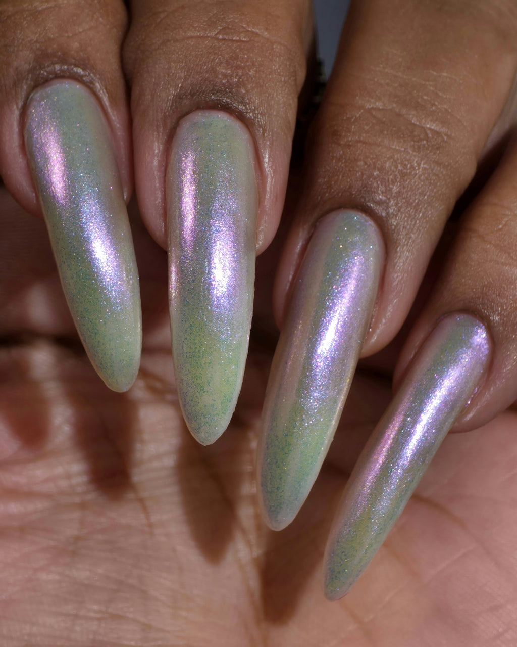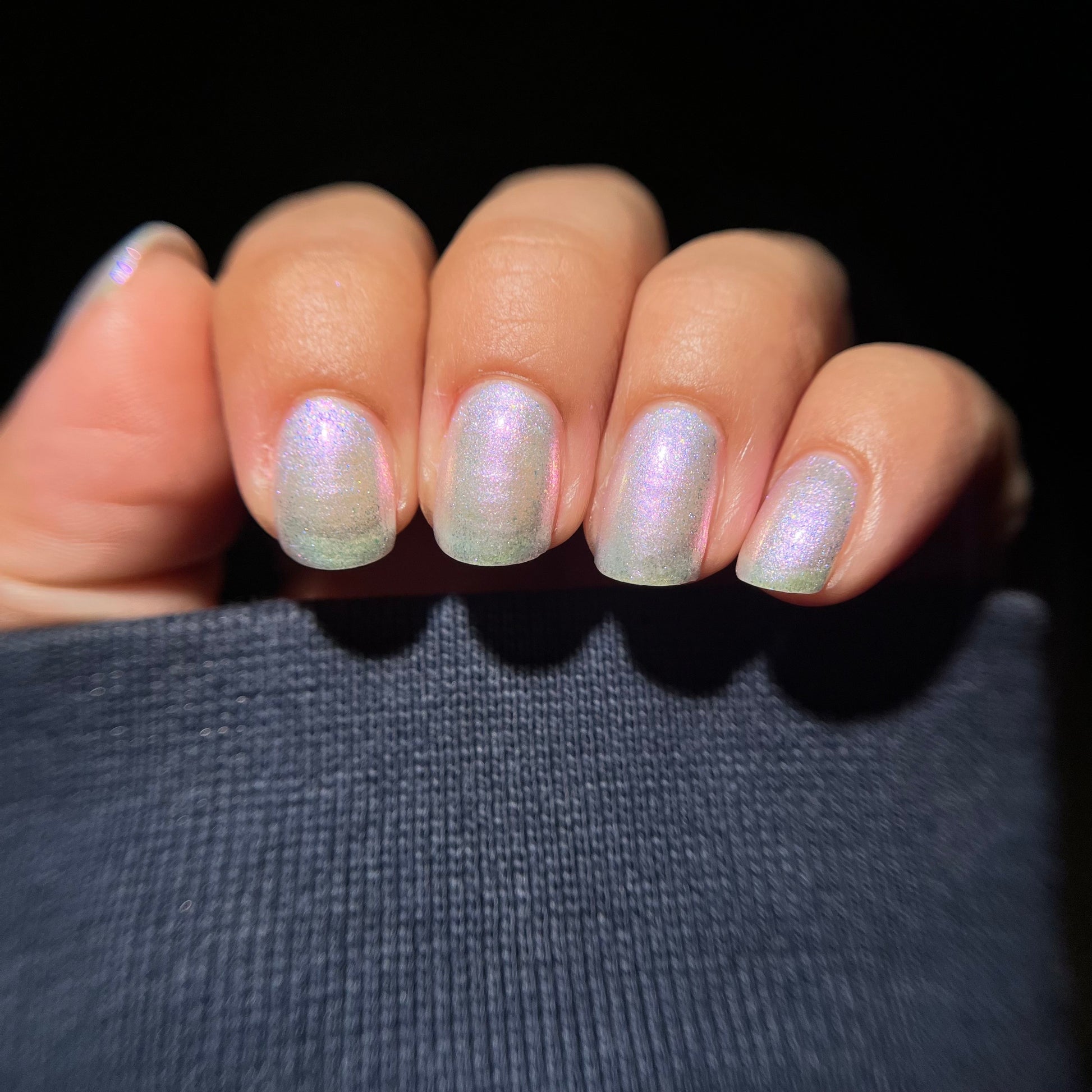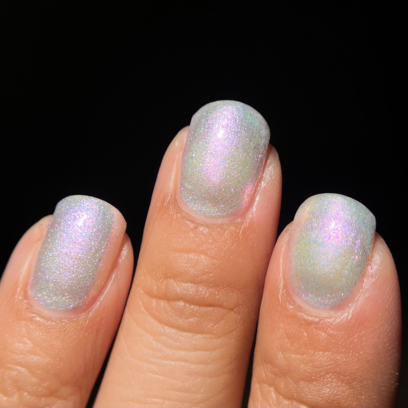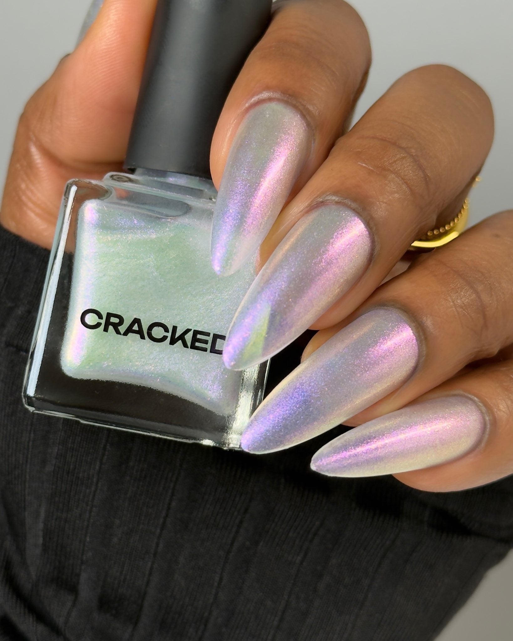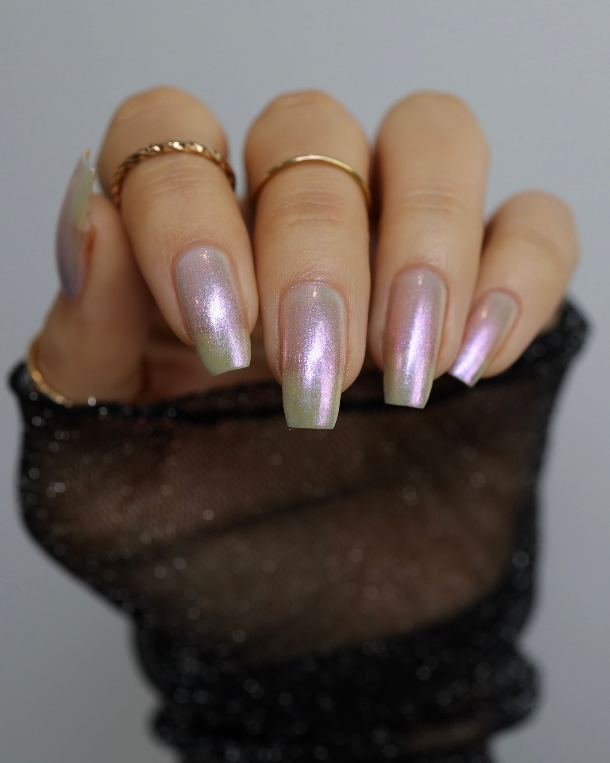 Skelly Bones is a sheer ghostly white brought back to life with glowing pink and purple shimmers. Pink Hair Strands has been resurrected from the dead. This shade carries a playful yet spooky energy that’s perfect for Halloween. Softly eerie and hauntingly beautiful, it layers like a spectral veil, giving your nails an otherworldly glow.