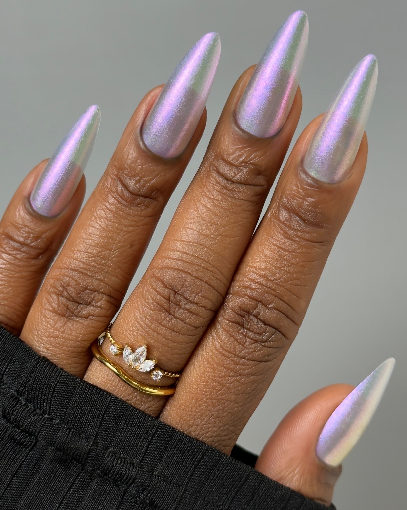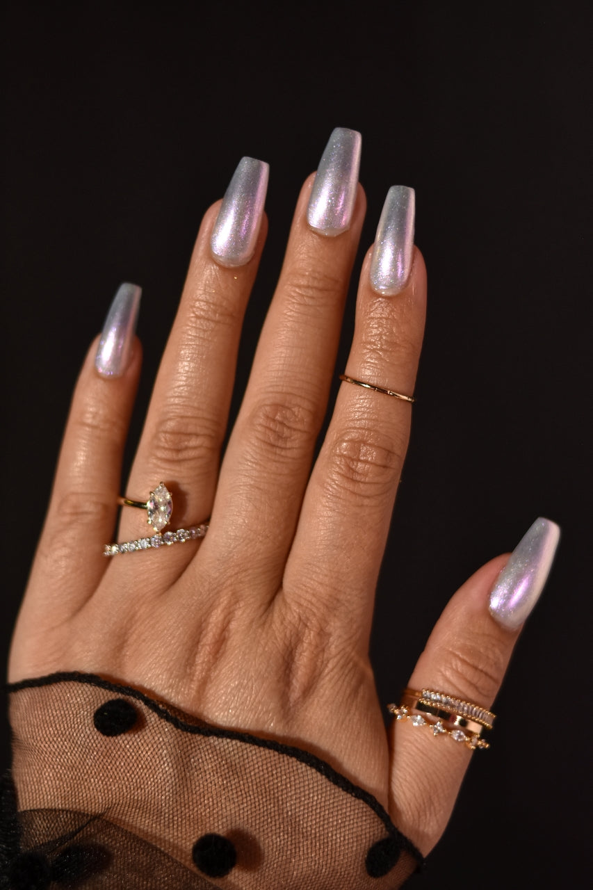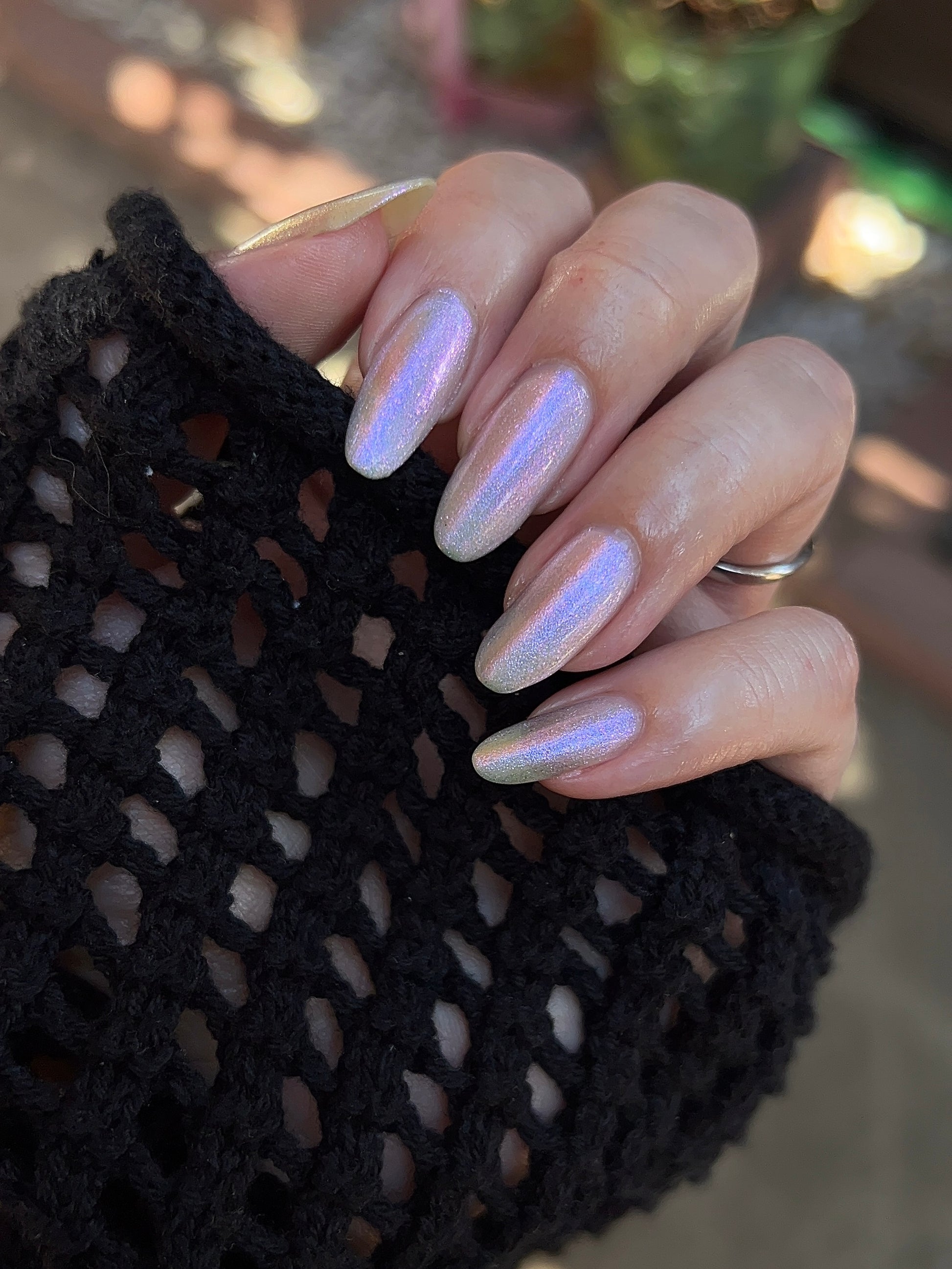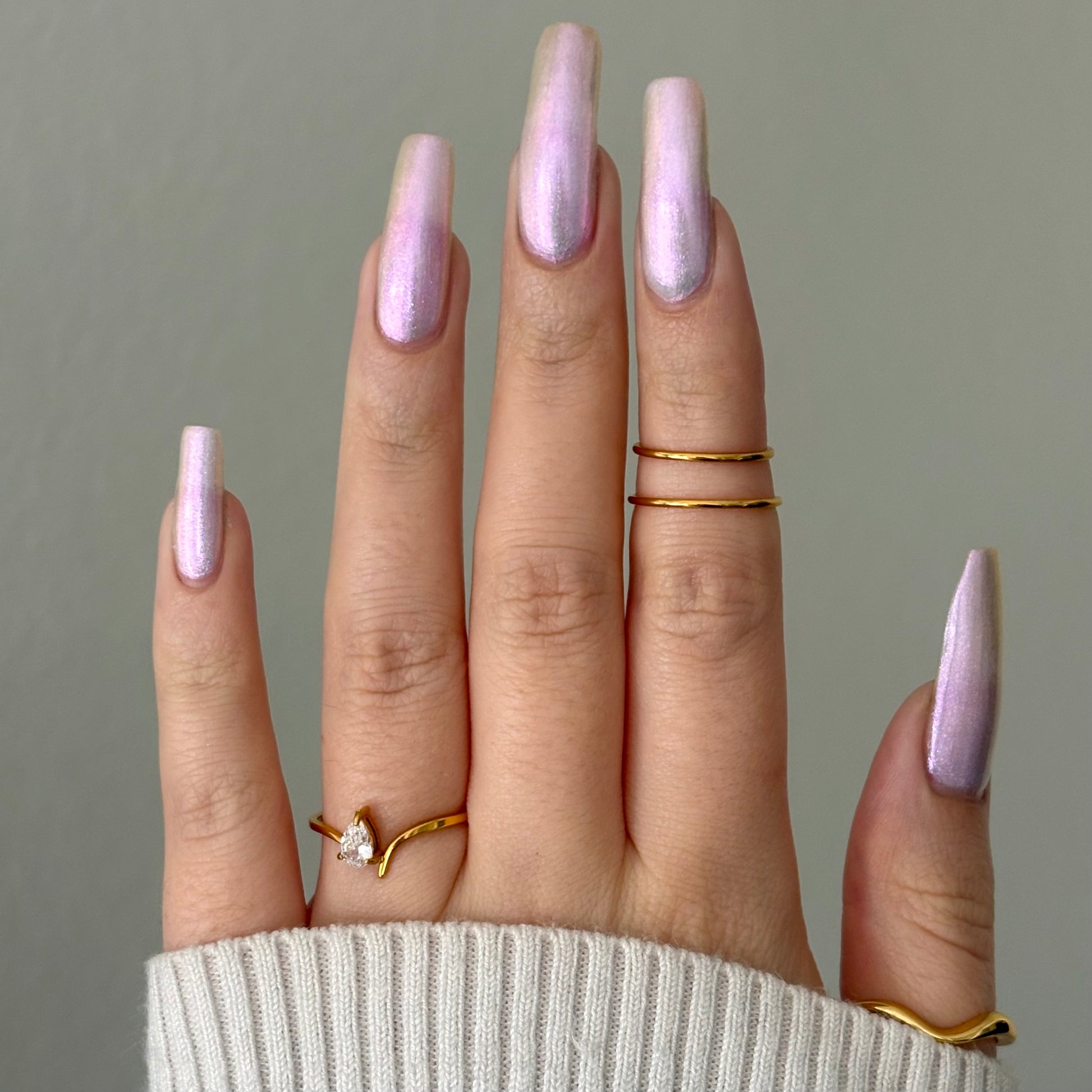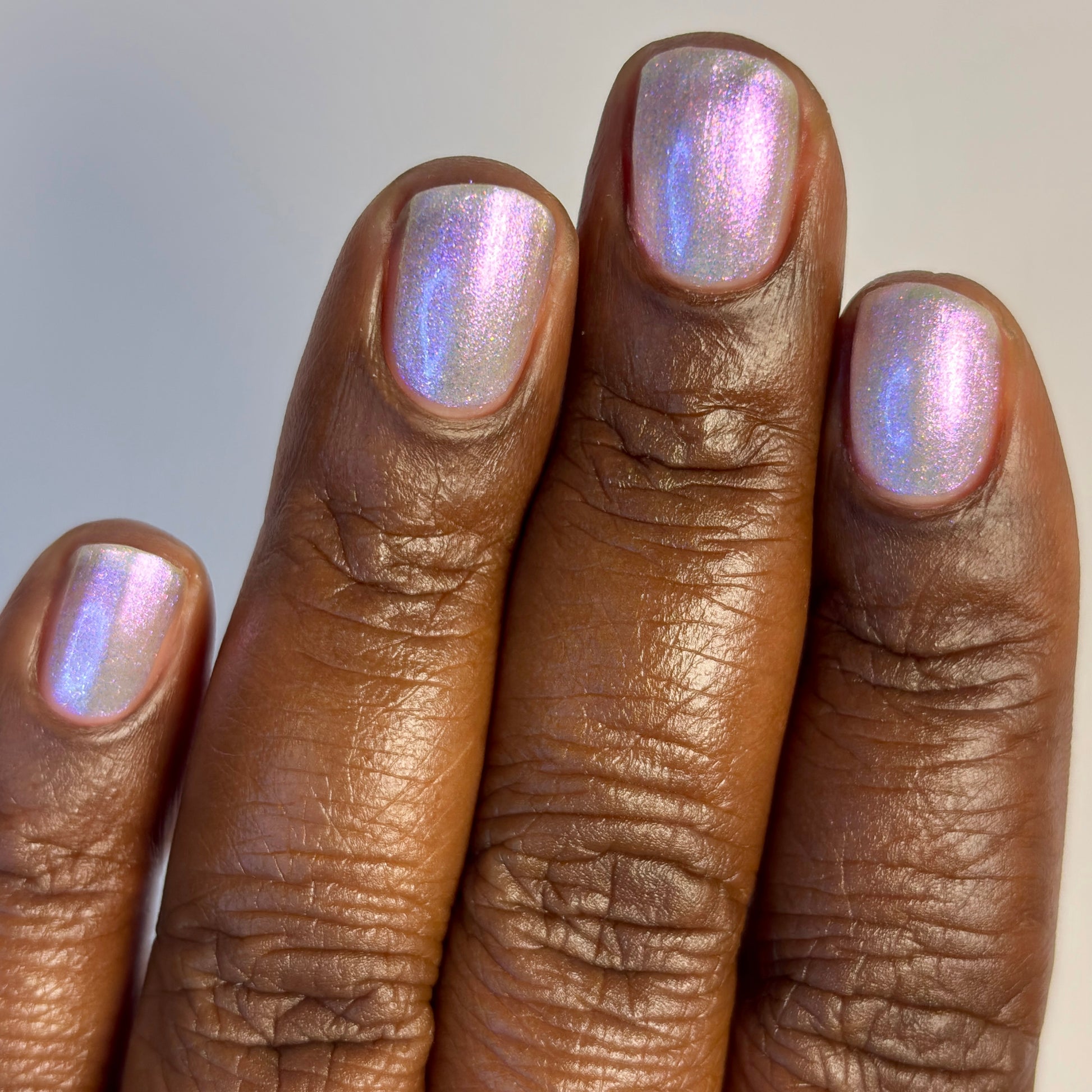 Skelly Bones is a sheer ghostly white brought back to life with glowing pink and purple shimmers. Pink Hair Strands has been resurrected from the dead. This shade carries a playful yet spooky energy that’s perfect for Halloween. Softly eerie and hauntingly beautiful, it layers like a spectral veil, giving your nails an otherworldly glow.