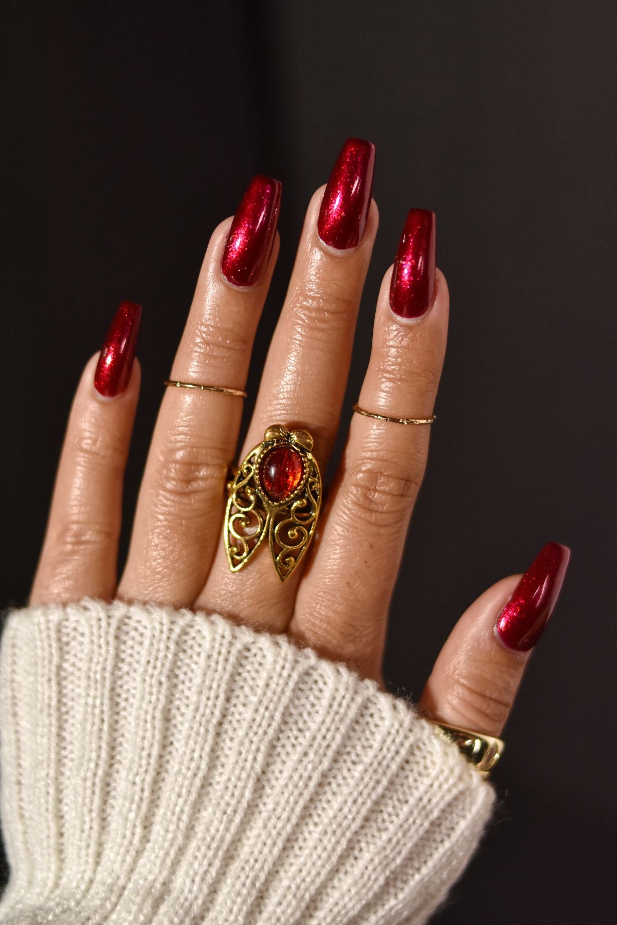 Slash and Dash is a captivating deep ruby red polish, packed with hypnotic red and gold shimmers that make every swipe a showstopper. Created as part of the Gore and More duo in collaboration with Zombie Claw, this intense shade is as striking as it is versatile. Whether you're in the mood for a daring look during spooky season or a bold yet sophisticated vibe all year round, Slash and Dash is the perfect companion. Cracked Polish has been on a red-hot streak, and this shade is no exception—it's designed to stand out in any season, making it a must-have for every collection!