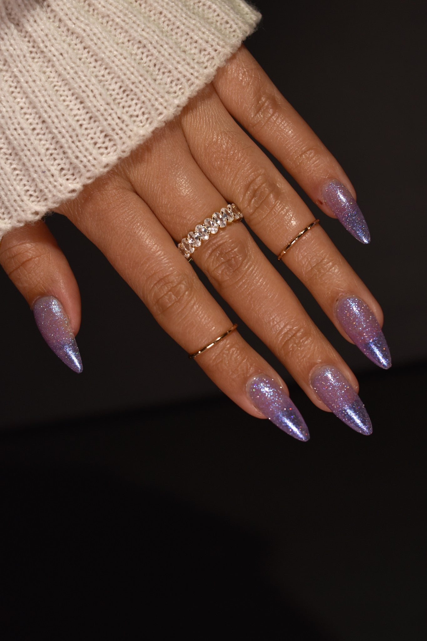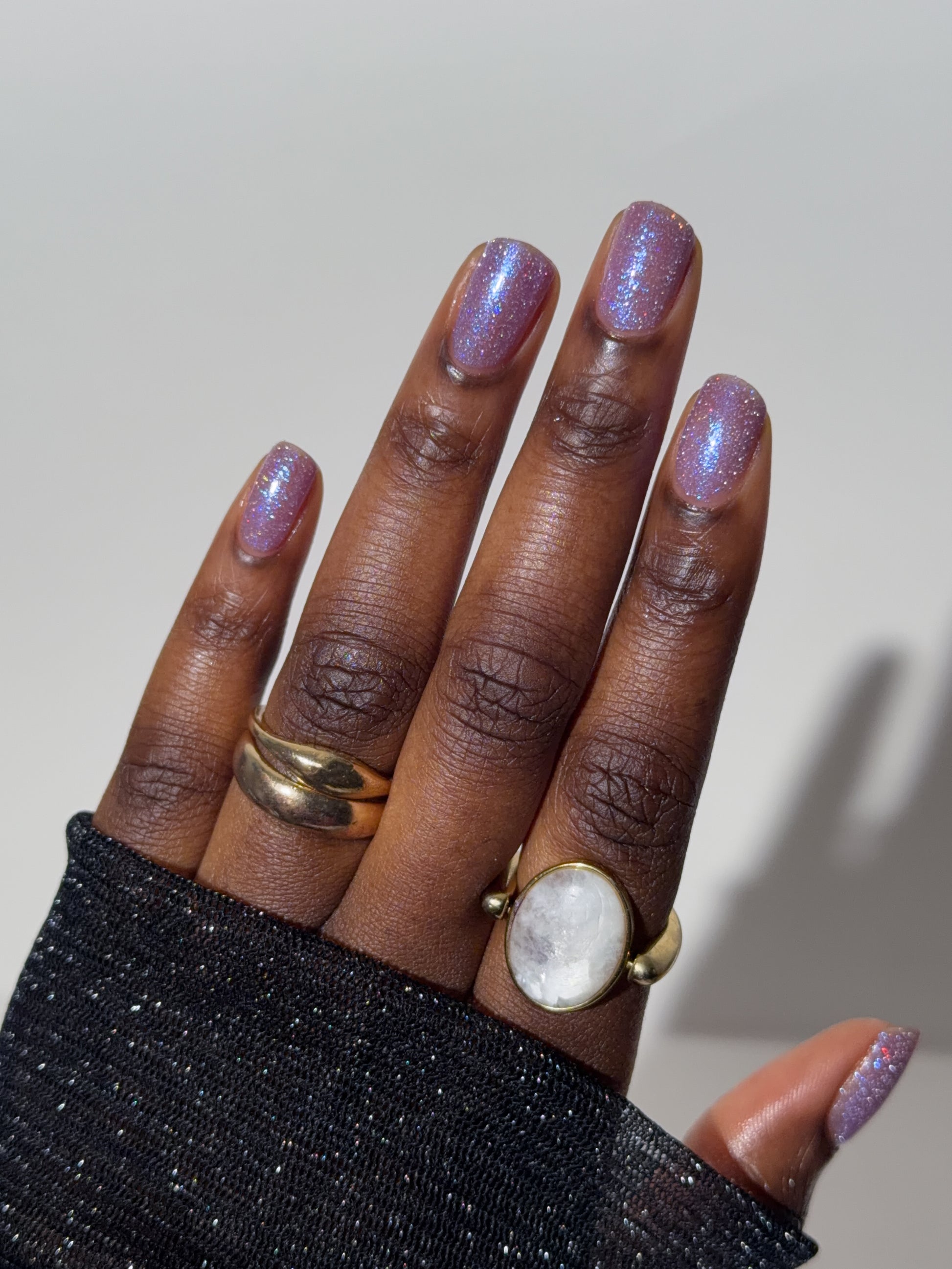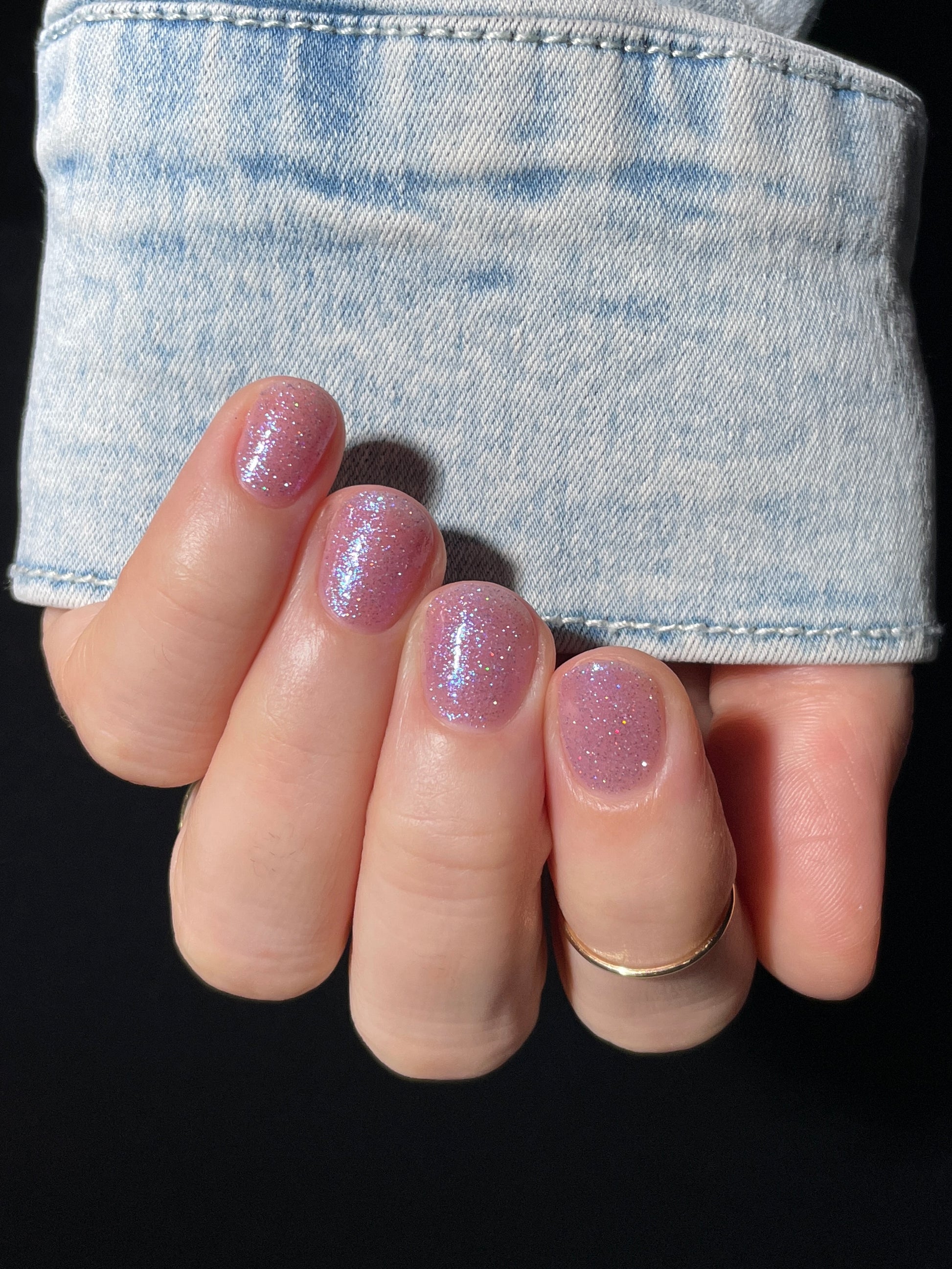 Sparkle Forward is a soft lavender with blue and pink shimmers and silver reflective glitters and it's leading with positivity. Choose to step into the future with confidence and vibrancy, letting your inner sparkle guide you!