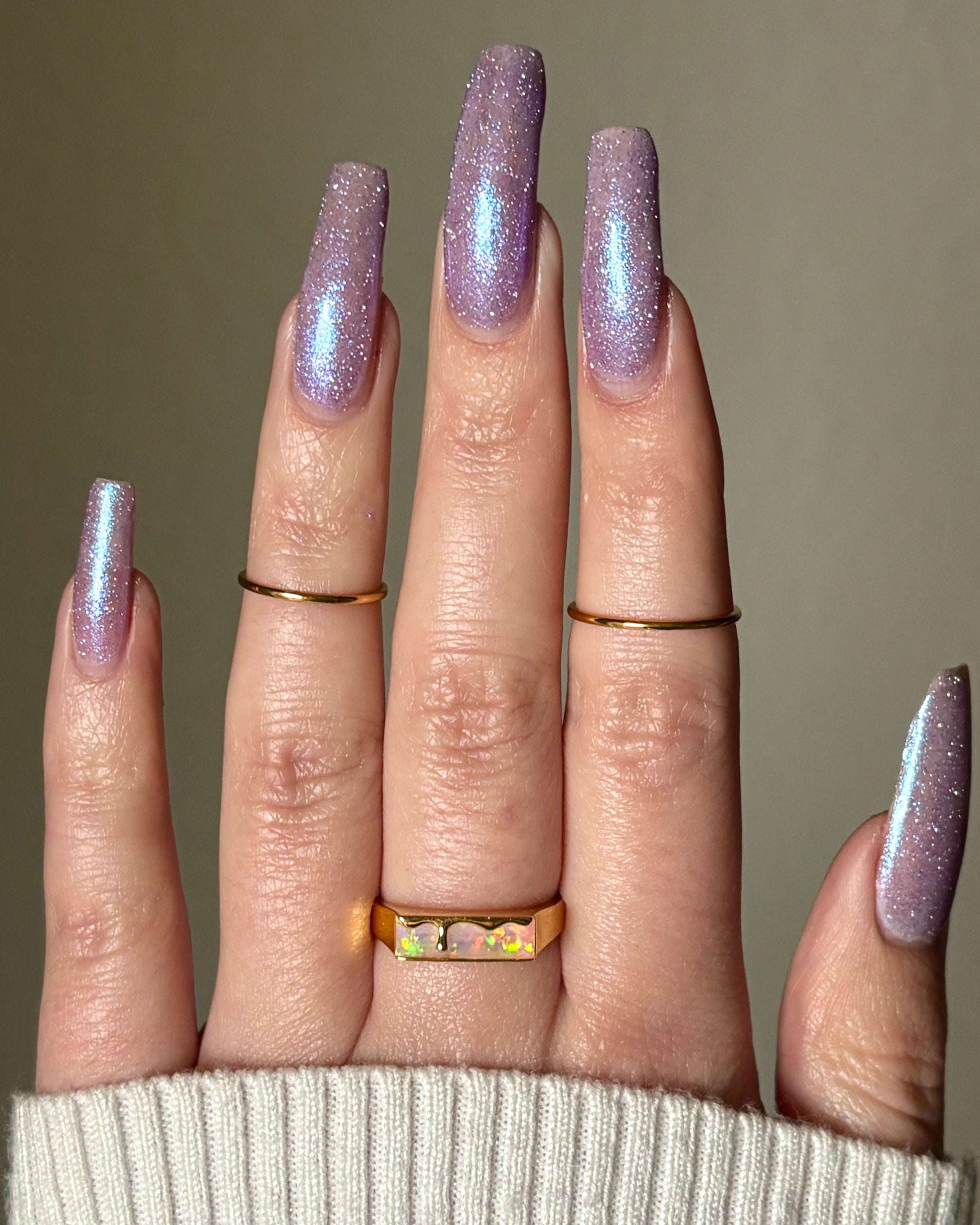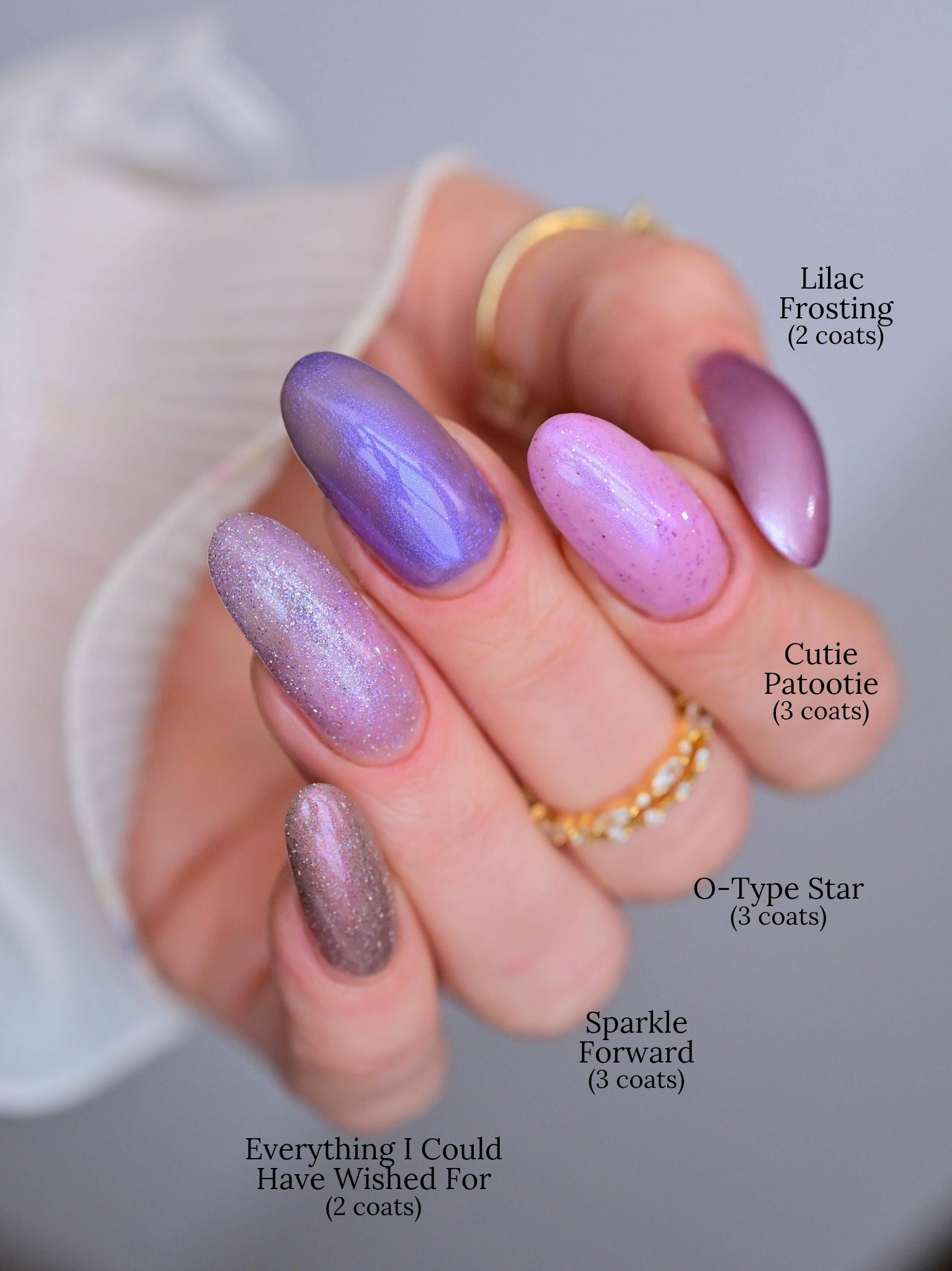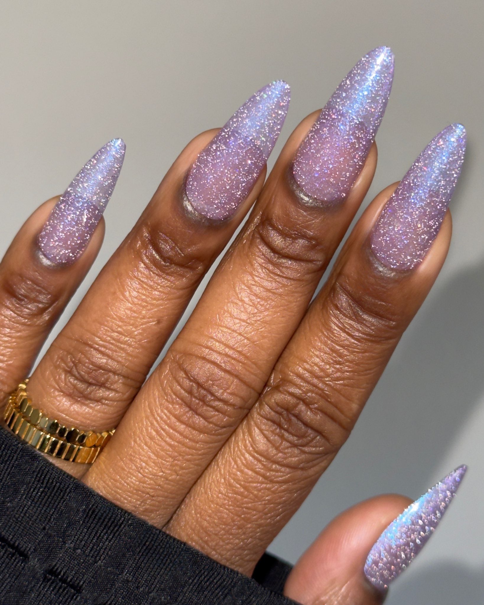 Sparkle Forward is a soft lavender with blue and pink shimmers and silver reflective glitters and it's leading with positivity. Choose to step into the future with confidence and vibrancy, letting your inner sparkle guide you!